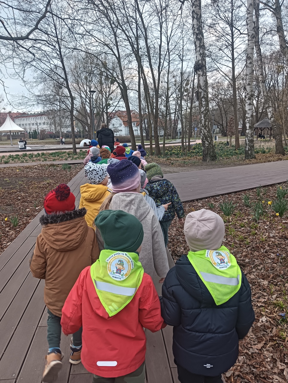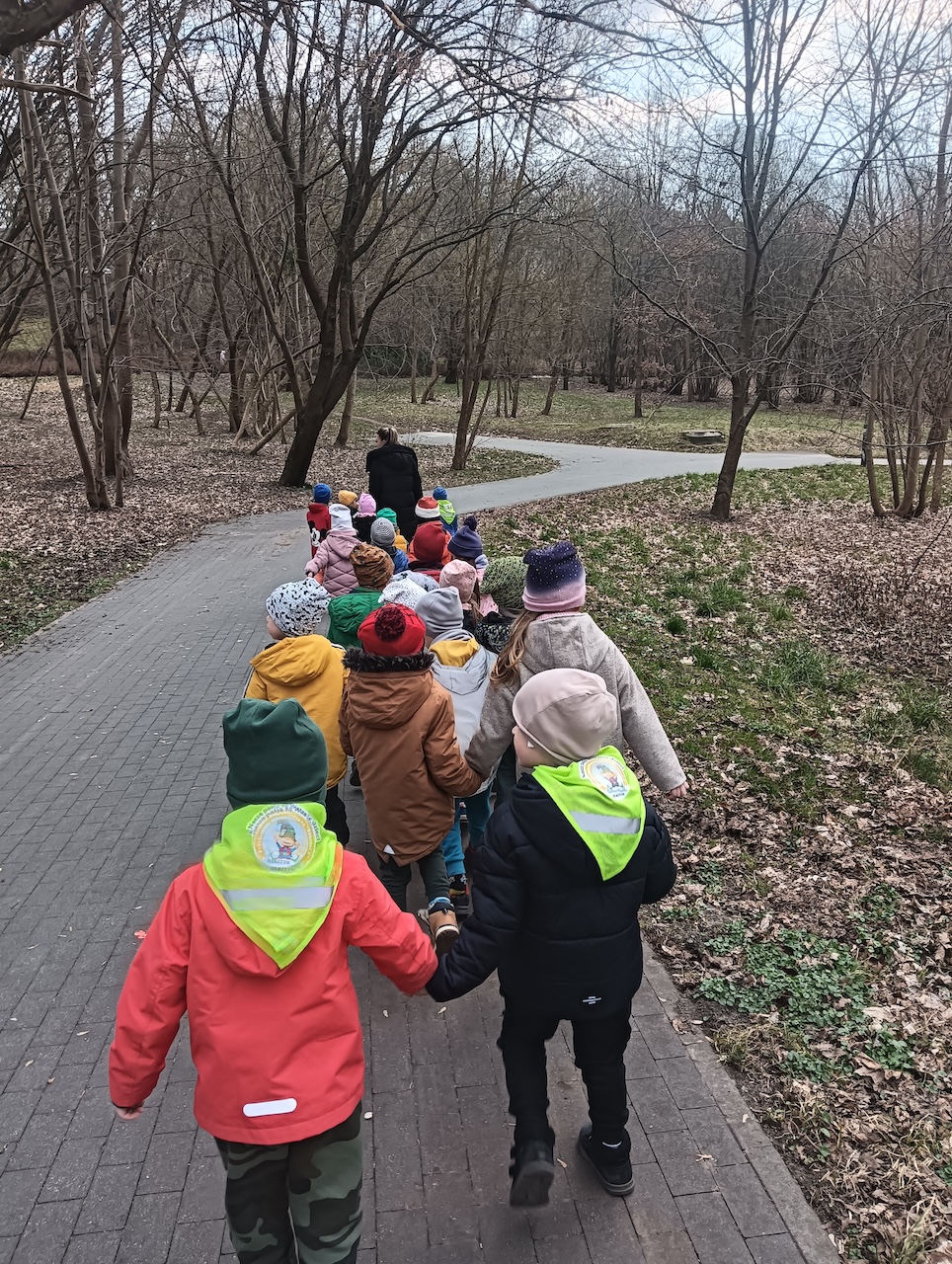 Dziś nasze przedszkolaki wyruszyły na radosny spacer do Parku Centralnego, aby poszukać pierwszych oznak wiosny! 🌱👀 Dzieci z wielkim zaangażowaniem wypatrywały pąków na drzewach, kwitnących kwiatów i śpiewających ptaków. 🌷🐦☀️
