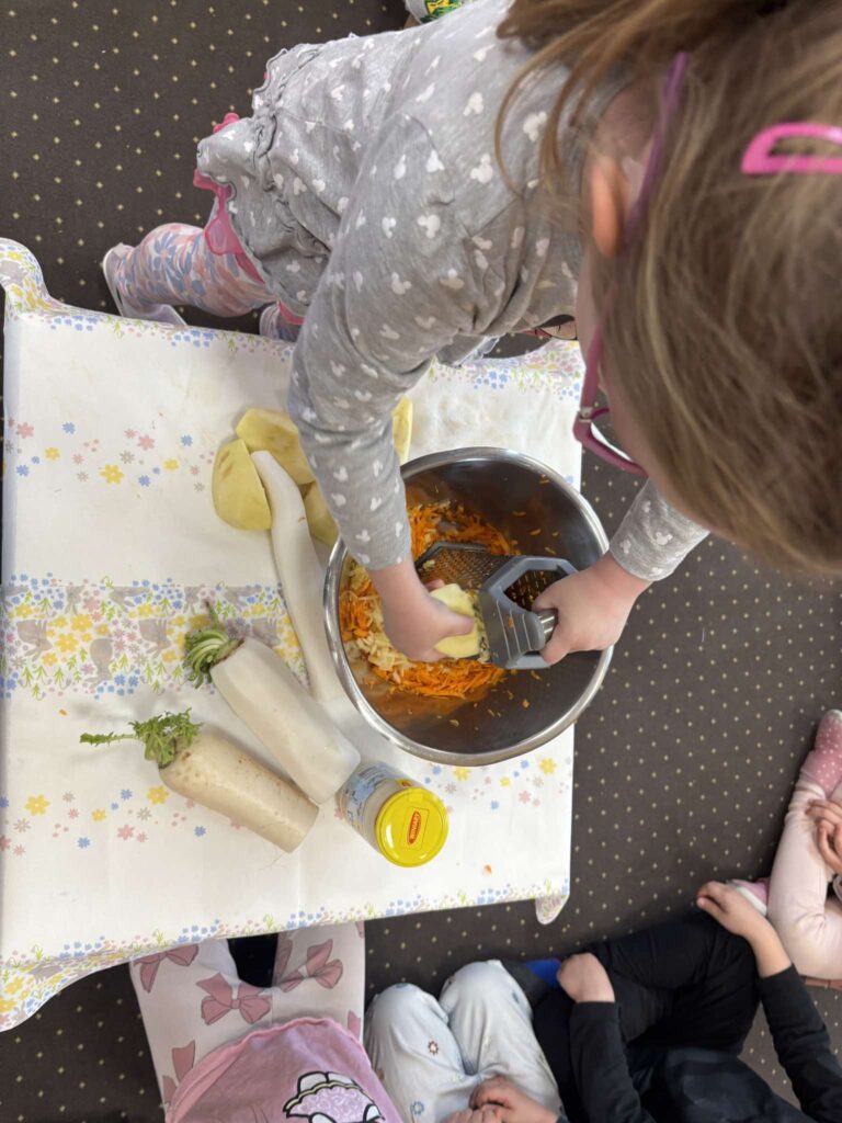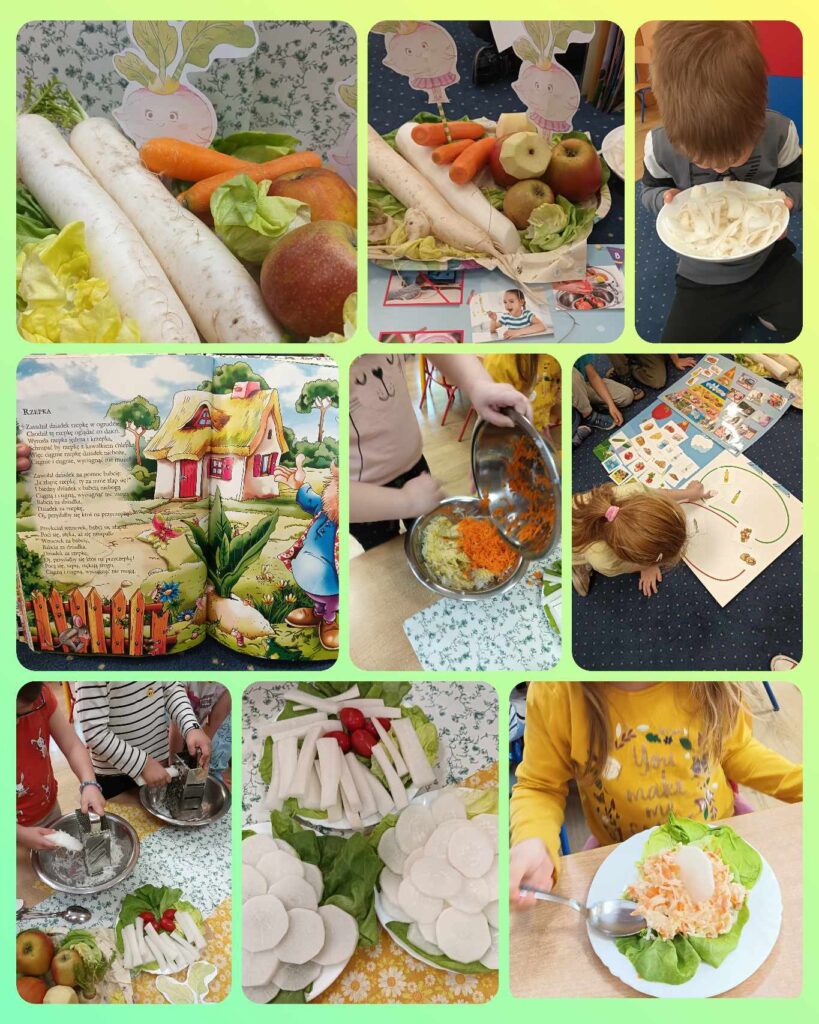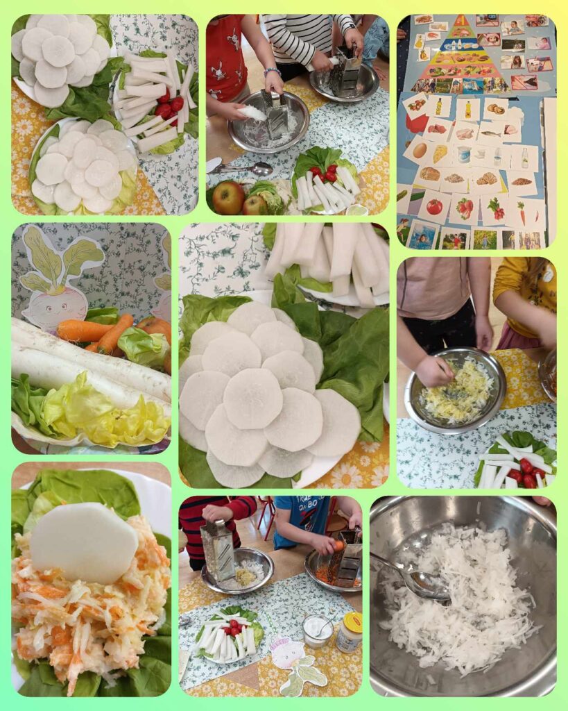 🍽️ Grupa Krasnale Wesołki bawiła się w smakowite i edukacyjne zabawy. Dzieci odkryły walory smakowe białej rzodkwi, a uśmiech nie schodził im z twarzy!