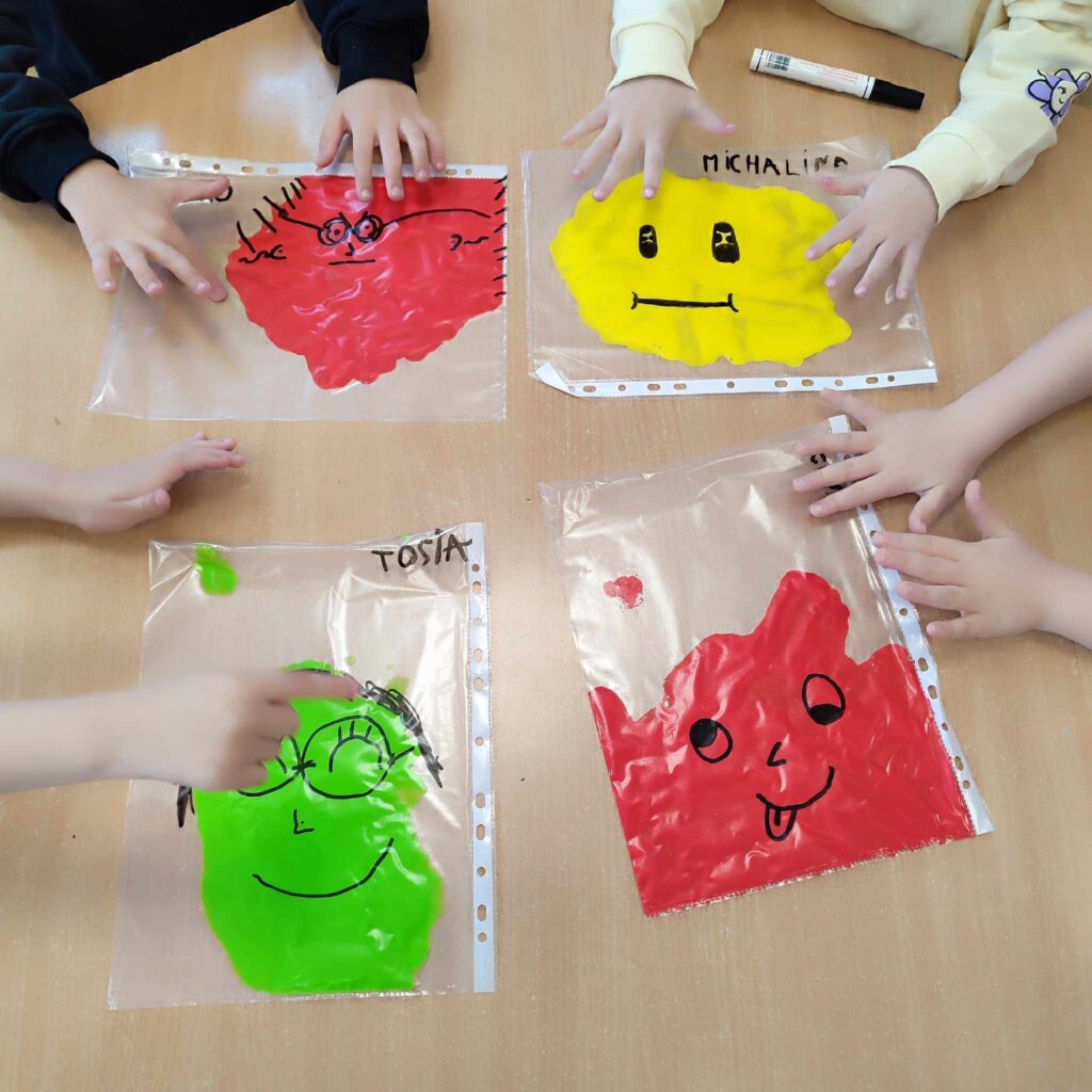 Krasnale Mądraczki podczas zajęć sensoryczno-plastycznych wyrażały swoje emocje…