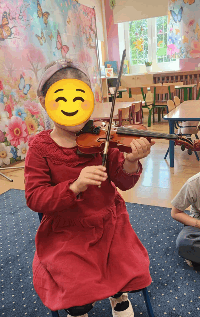 Po powrocie do przedszkola czekała nas kolejna niespodzianka – Zuzia zaprosiła koleżanki i kolegów na mini koncert skrzypcowy!🎻