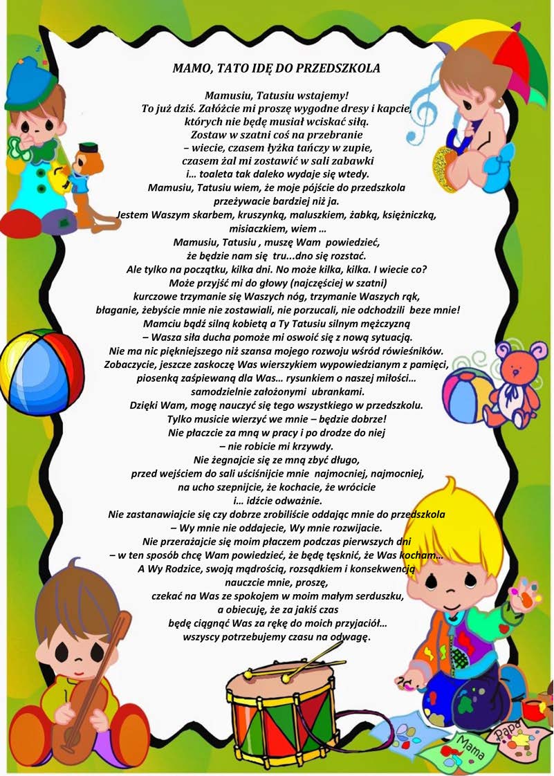Szanowni Rodzice naszych najmłodszych Krasnali. Dziś Wasze dzieci zrobiły pierwszy, najważniejszy krok. To był fantastyczny czas. Macie mądre i dzielne dzieciaczki. Możecie być z nich dumni. My natomiast jesteśmy również dumni z Was. Daliście Państwo radę. Brawa dla Was i Waszych dzieci. Życzymy spokojnego weekendu, a w poniedziałek spotykamy się z uśmiechami na buźkach. Wszyscy potrzebujemy czasu na odwagę