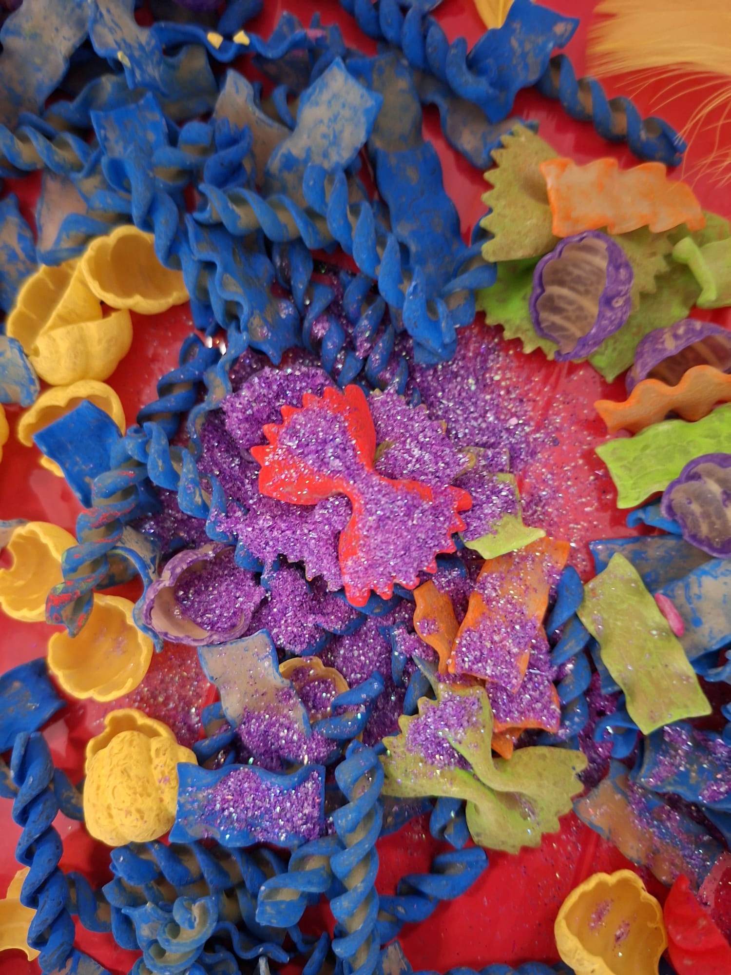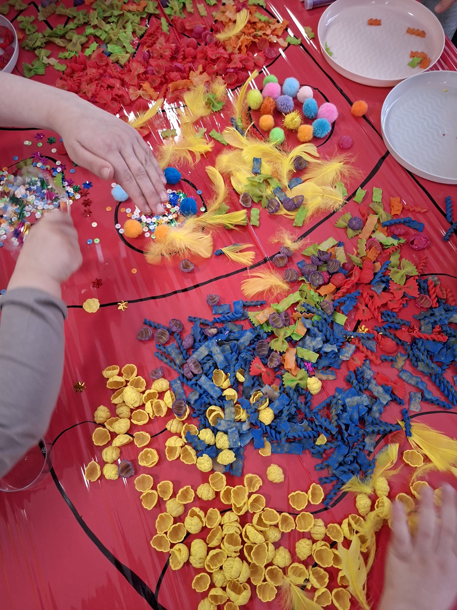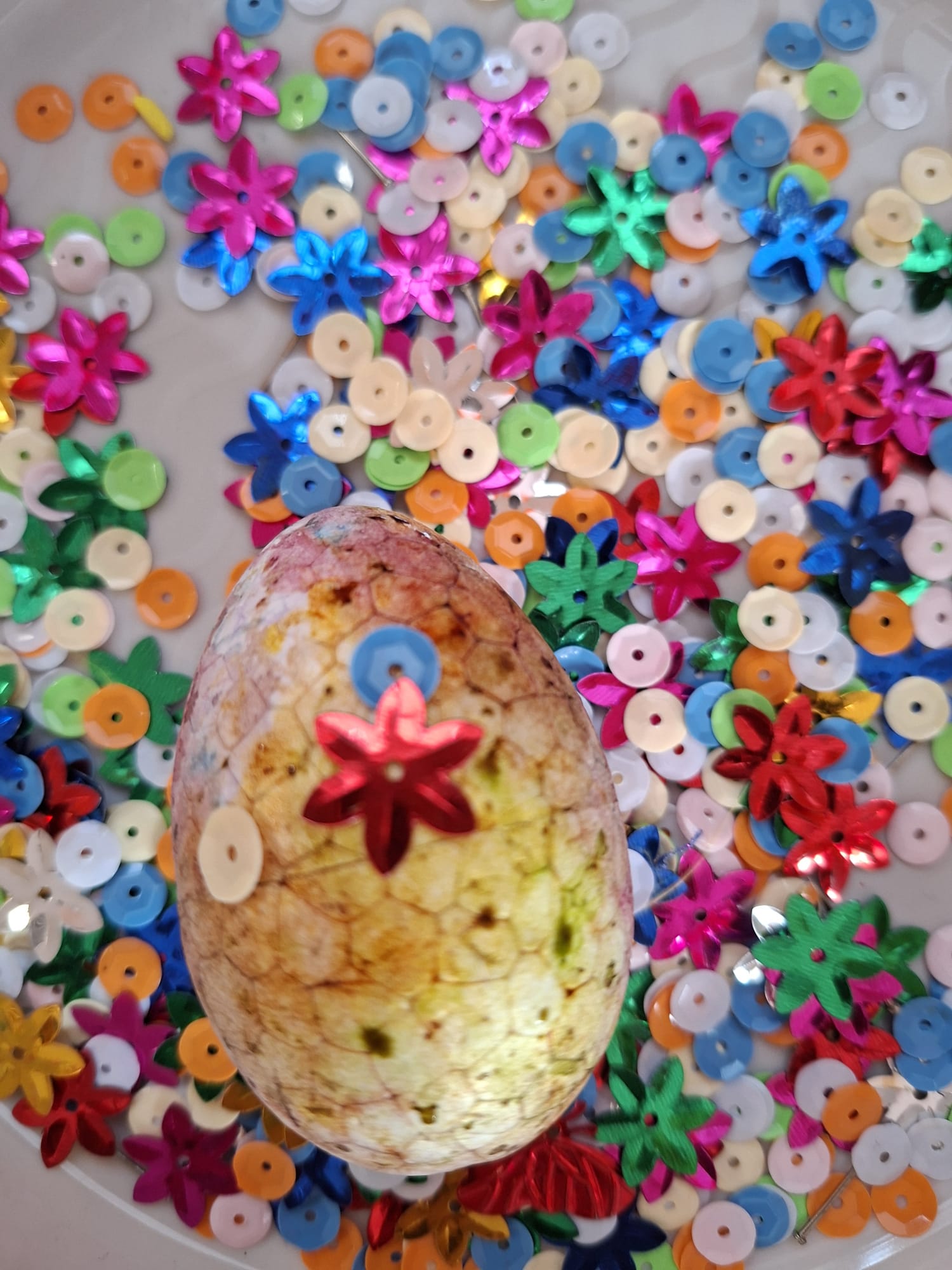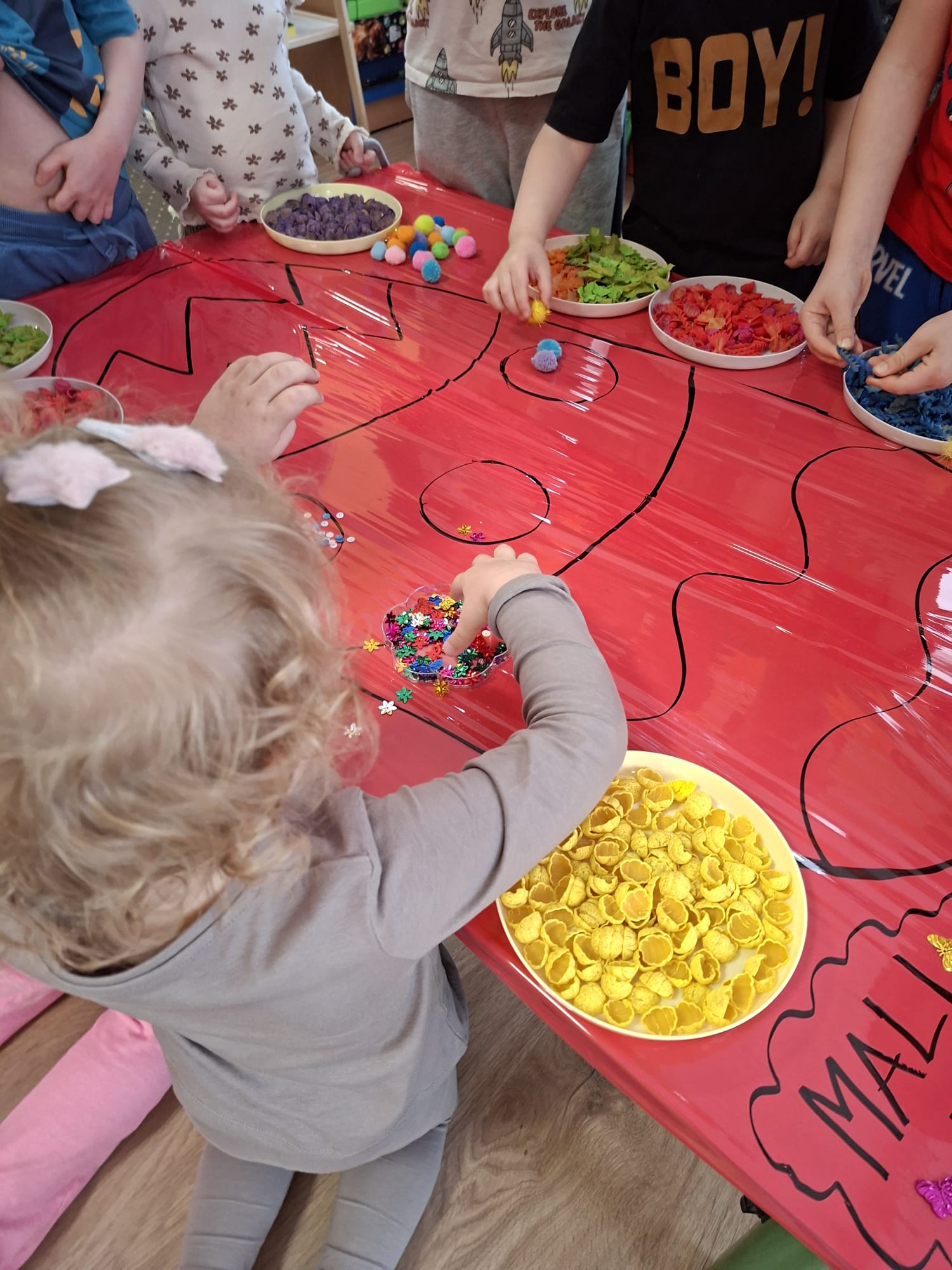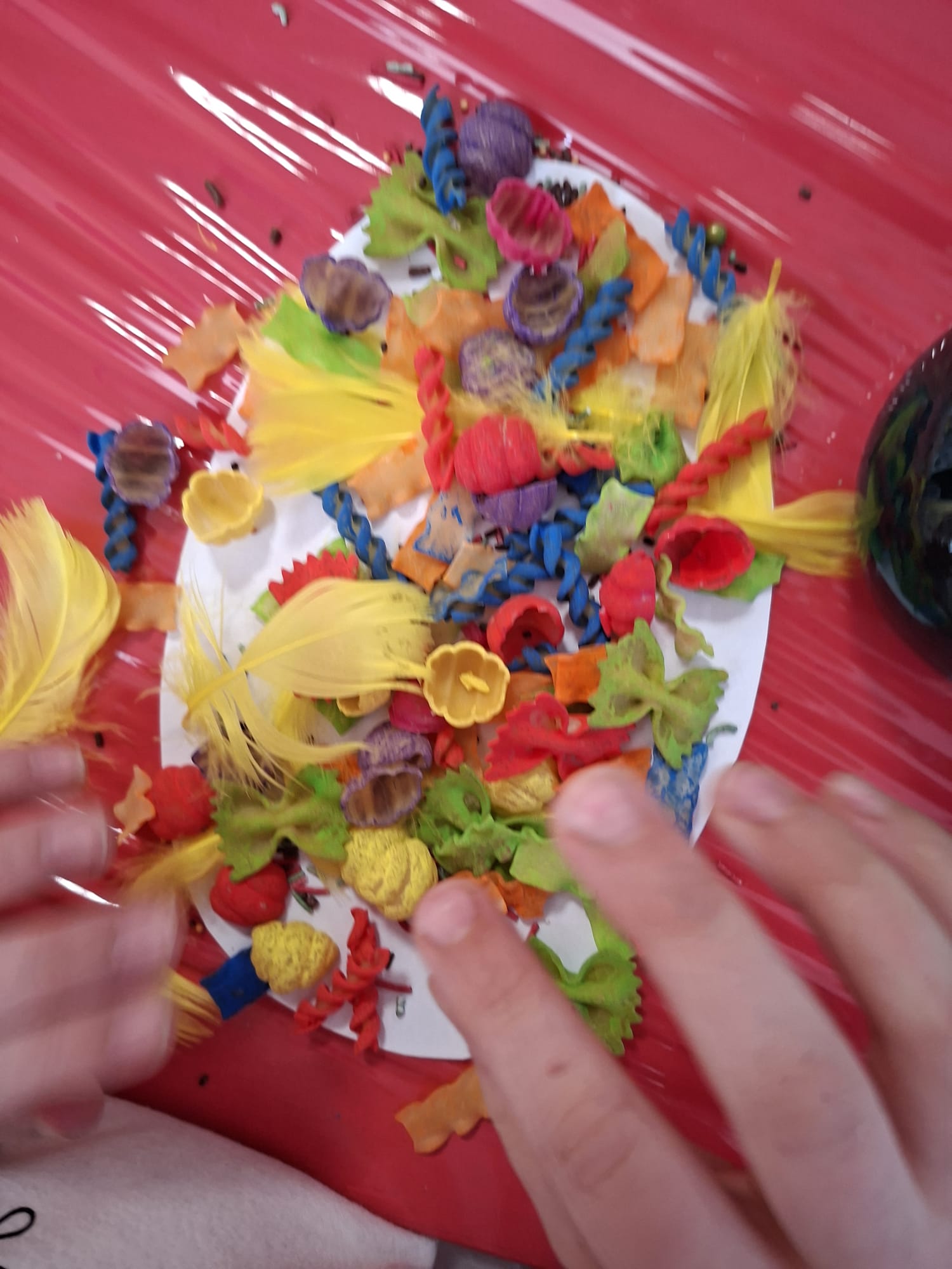 Tworzyliśmy wyjątkowe pisanki z kolorowego makaronu, mięciutkich pomponików i barwnej posypki 🎨🌈 Każda praca była odzwierciedleniem indywidualności dziecka – pełna odwagi, fantazji i swobody twórczej 🐣✨