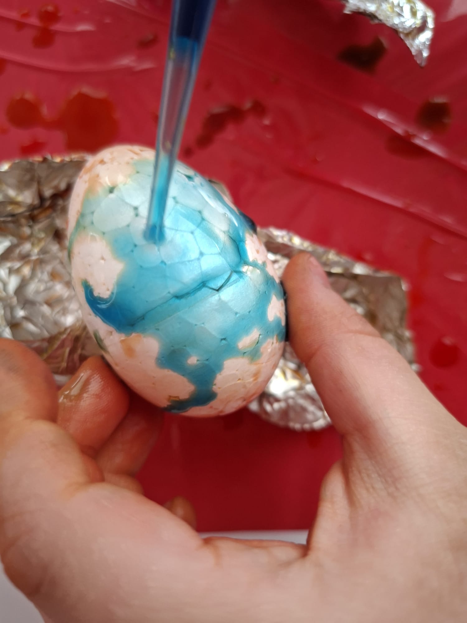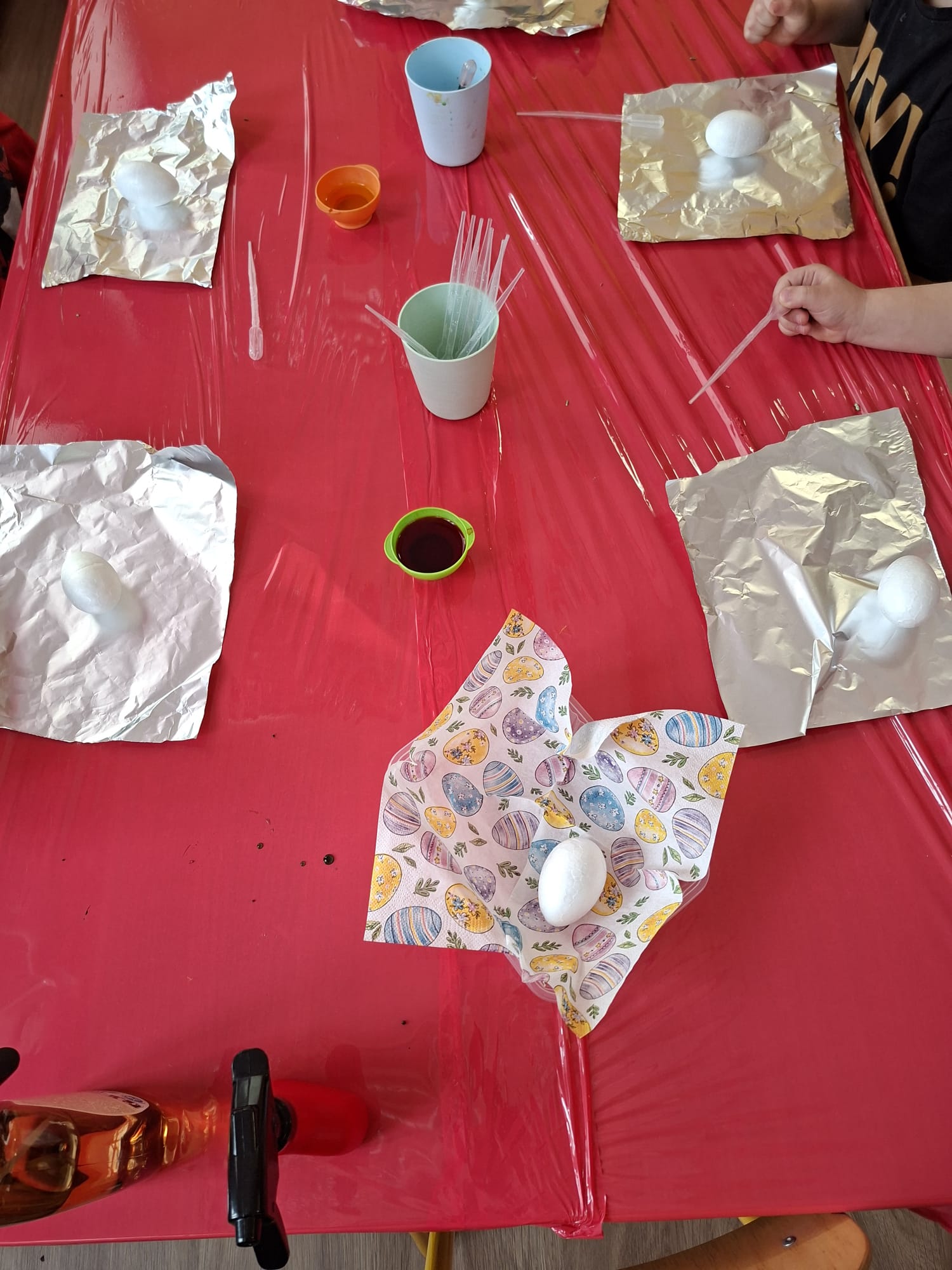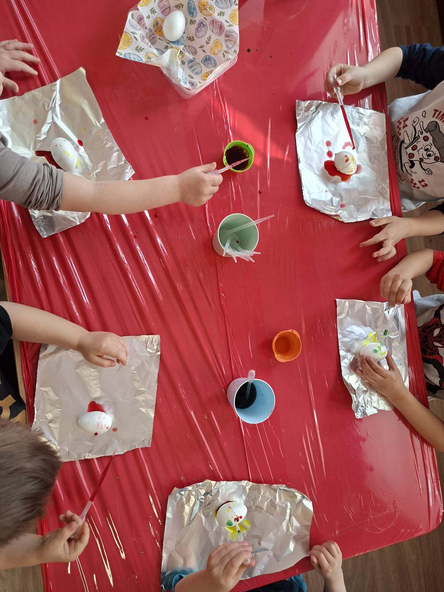 Nie zabrakło również działań sensorycznych i eksperymentalnych 🧪 Styropianowe jajka malowaliśmy w nietypowy sposób – za pomocą pipetek i folii aluminiowej 🎭🎨 To była nie tylko zabawa, ale także rozwój precyzji, koordynacji i kreatywnego myślenia 💡