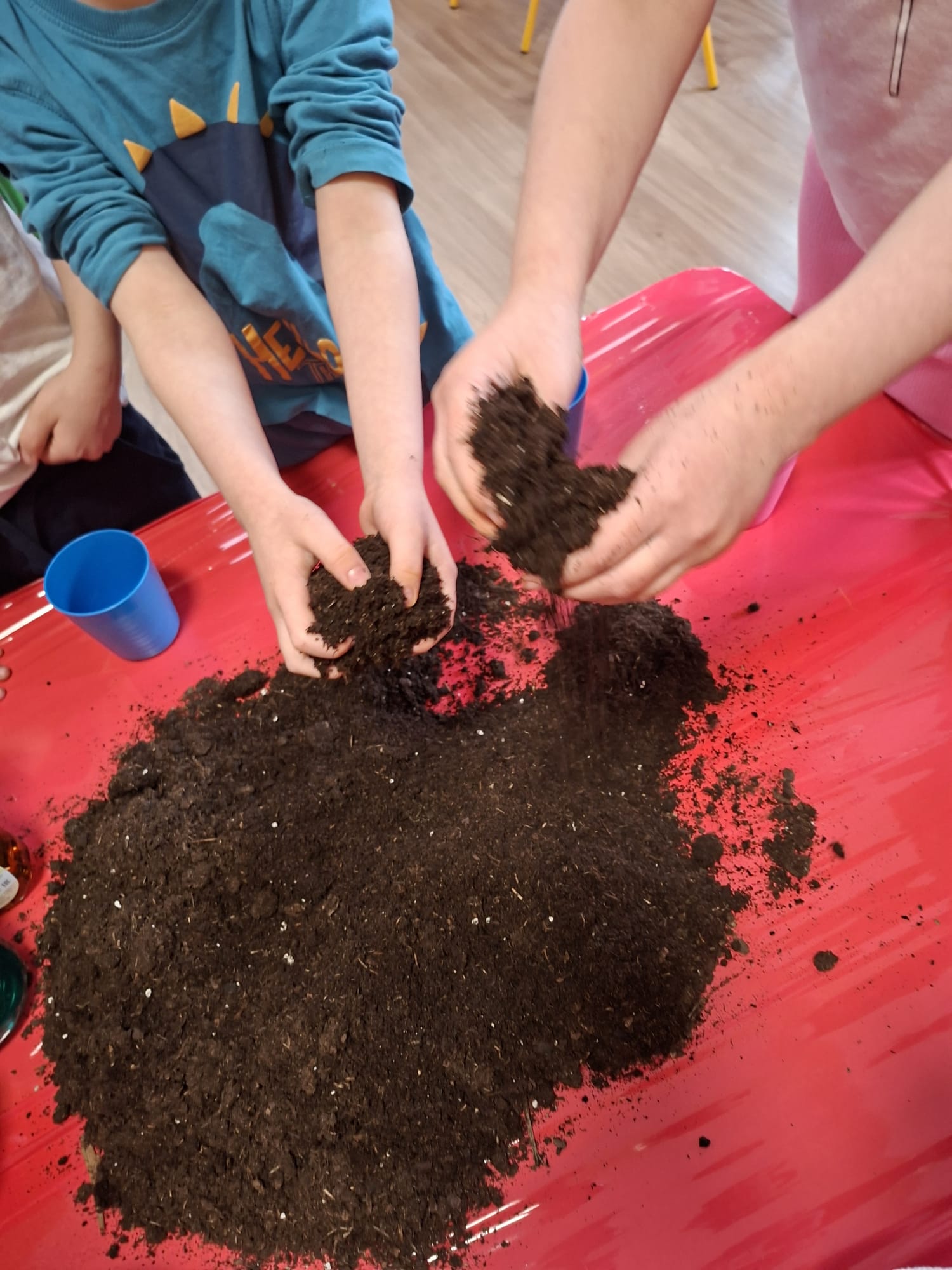 Bliskość natury była dziś równie ważna 🌱🤎 Dzieci z ogromnym zaangażowaniem bawiły się ziemią, poznając ją wszystkimi zmysłami, a następnie sadziły owies – symbol nowego początku i nadchodzącej wiosny 🌾🌼