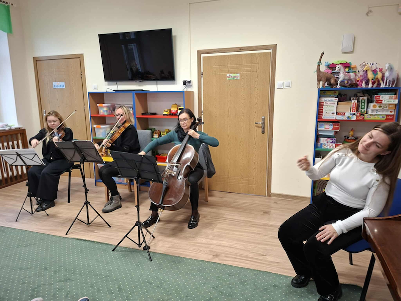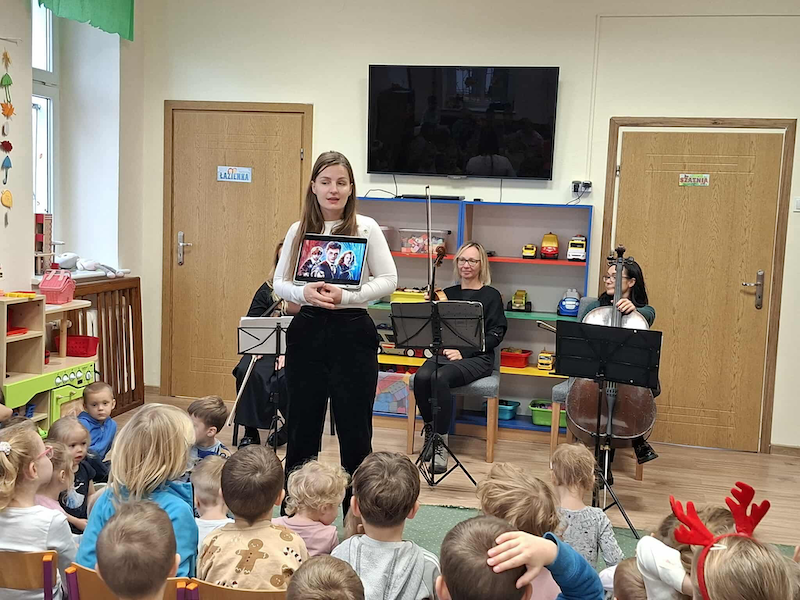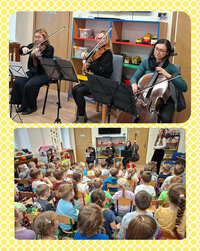 Muzycy wprowadzili przedszkolaków w magiczny świat dźwięków, rytmów i melodii, pokazując, że muzyka potrafi opowiadać historie, wyrażać emocje i łączyć ludzi we wspólnym przeżywaniu piękna. 🎵💫