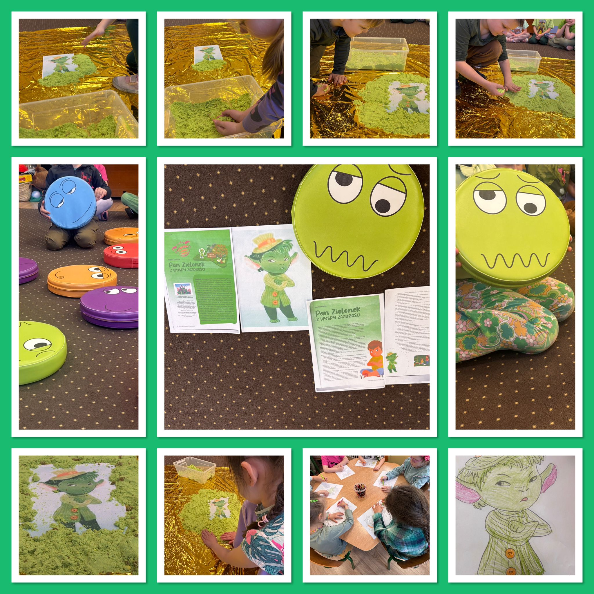 Dziś nasze Krasnale wyruszyły w niezwykłą podróż na Wyspę Zazdrości, gdzie poznaliśmy wyjątkową postać – Pana Zielonkę 💚😊