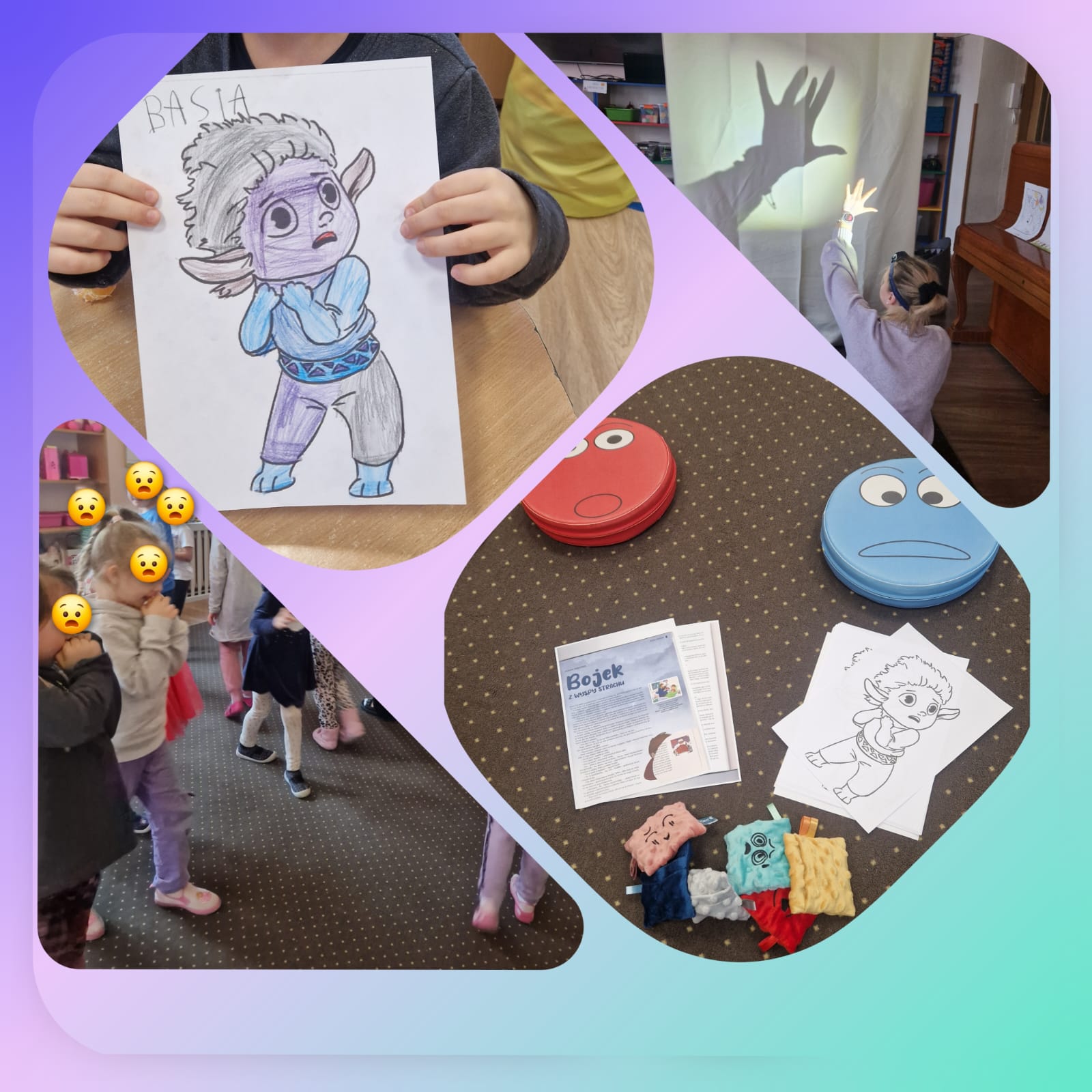 We wtorek w naszych grupach odbyły się wyjątkowe zajęcia z cyklu „Czuciaki z Wyspy Emocji”, poświęcone emocjom związanym ze strachem i lękiem. Tym razem bohaterem spotkań był Bojek z Wyspy Strachu – postać, która pomogła dzieciom zrozumieć, że strach jest naturalną emocją i można nauczyć się go oswajać.