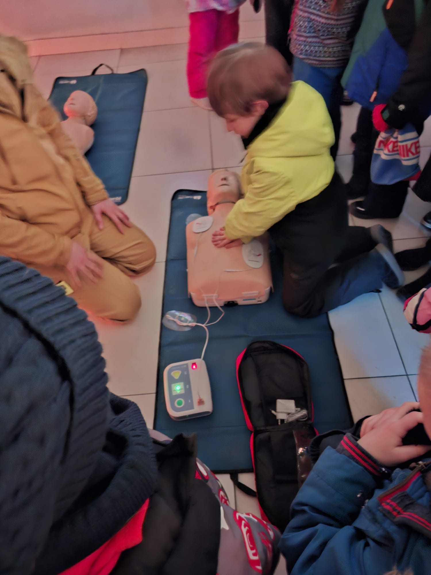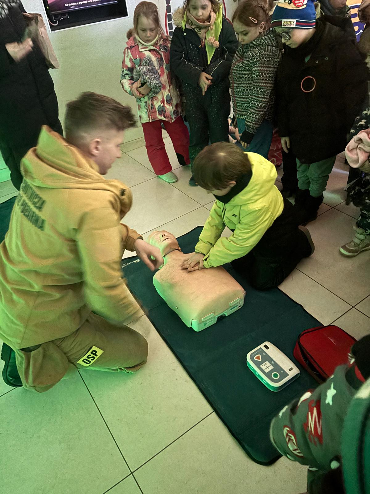 Dzieci z grup Pracusie, Mądraczki i Szczęściarze z ogromnym zaangażowaniem śledziły losy bohatera, a następnie aktywnie uczestniczyły w rozmowie podsumowującej film. Wspólnie zastanawialiśmy się, czym jest strach, jak go oswajać oraz dlaczego proszenie o pomoc jest oznaką siły, a nie słabości. Naturalnym przedłużeniem tych rozważań było spotkanie ze strażakami, którzy w przystępny i niezwykle ciekawy sposób przybliżyli dzieciom podstawowe zasady udzielania pierwszej pomocy.