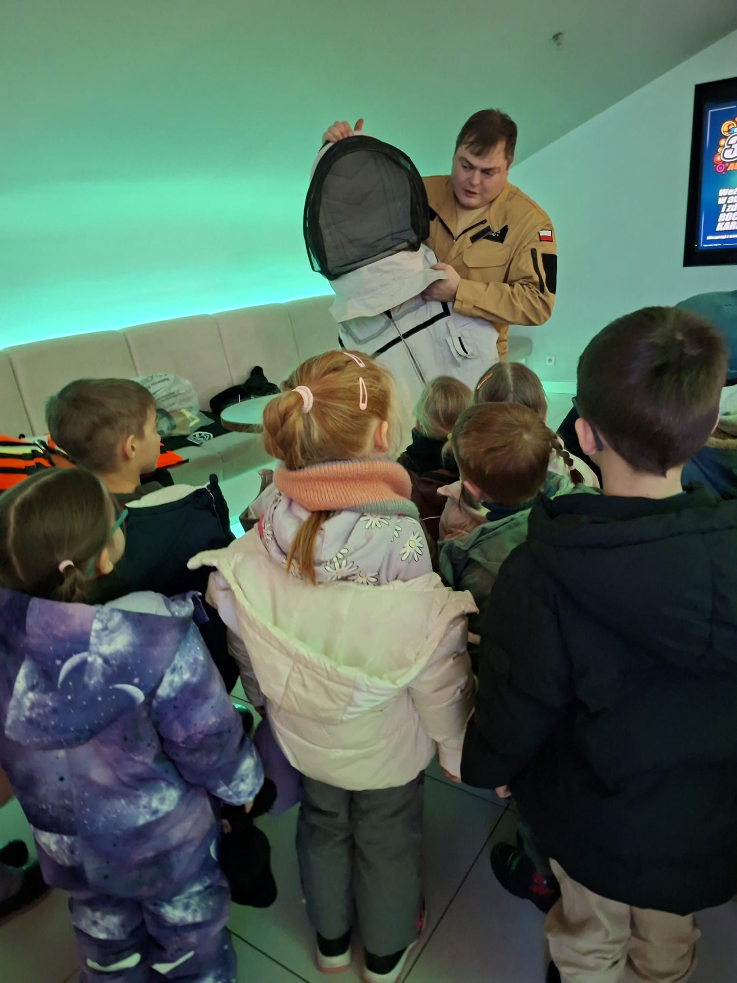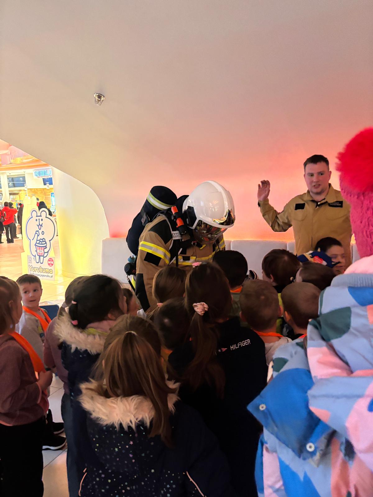 Dzięki bezpośredniemu kontaktowi z profesjonalistami dzieci mogły dowiedzieć się, jak reagować w sytuacjach zagrożenia, kogo wzywać na pomoc oraz jak ważne jest zachowanie spokoju i uważności na drugiego człowieka. Wiedza została przekazana w formie dostosowanej do wieku dzieci – z empatią, spokojem i dużą dawką pozytywnej energii, co sprawiło, że spotkanie było nie tylko pouczające, ale również budujące poczucie bezpieczeństwa i sprawczości. Takie wyjścia doskonale wpisują się w naszą filozofię edukacyjną – łączymy kulturę, edukację emocjonalną i praktyczne umiejętności życiowe, dbając o wszechstronny rozwój dzieci. Dzisiejszy dzień był pięknym przykładem nauki przez doświadczenie, rozmowę i realny kontakt ze światem. Dziękujemy strażakom za obecność, zaangażowanie i przekazanie dzieciom tak cennych informacji, które – mamy nadzieję – zaprocentują w przyszłości większą świadomością i odpowiedzialnością najmłodszych.