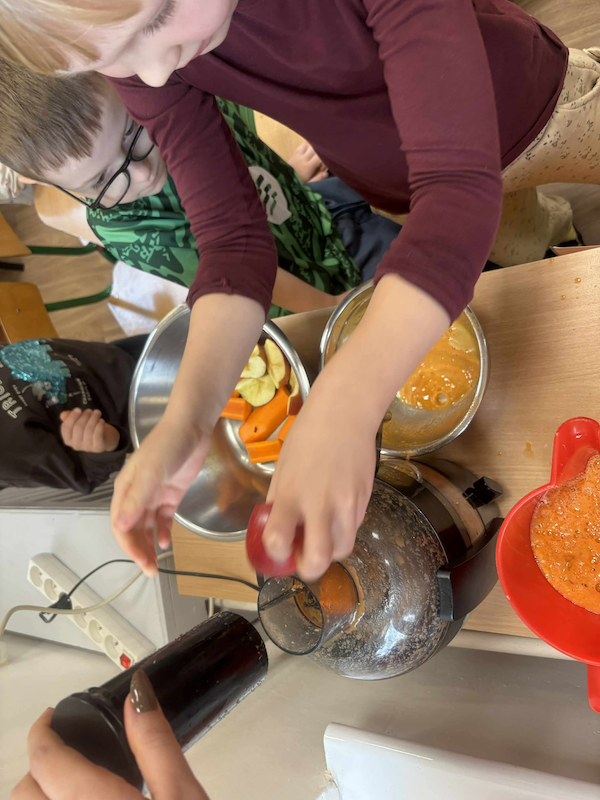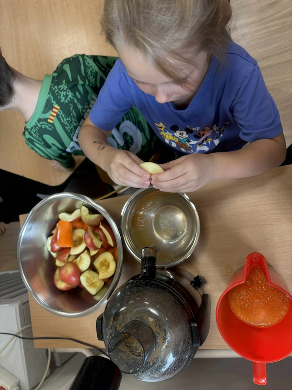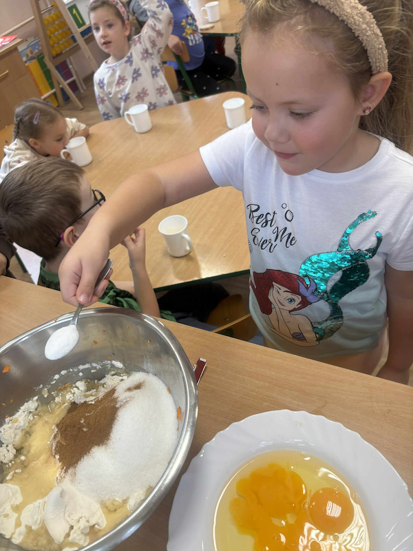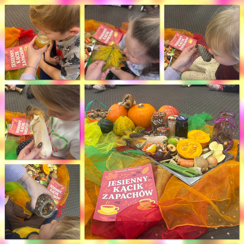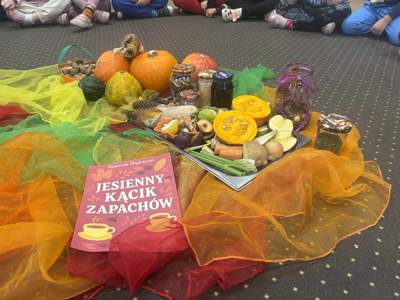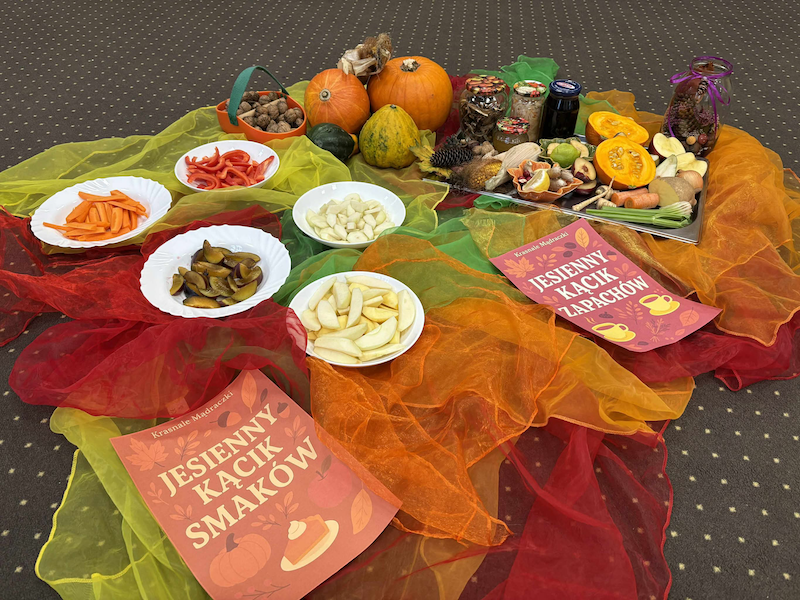 Dzieci miały okazję rozwijać swoje zmysły smaku i węchu, odkrywając bogactwo jesiennych aromatów i kolorów. Poznawały sezonowe owoce, warzywa, zioła i przyprawy, a także dowiedziały się, jak ważne jest codzienne dbanie o zdrowe nawyki żywieniowe oraz aktywny styl życia 🌿💪.