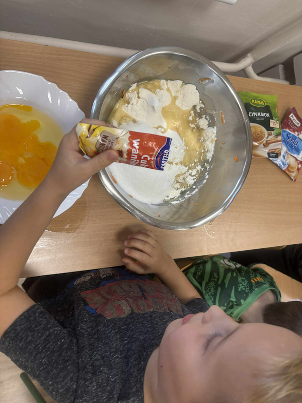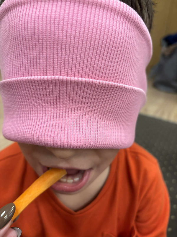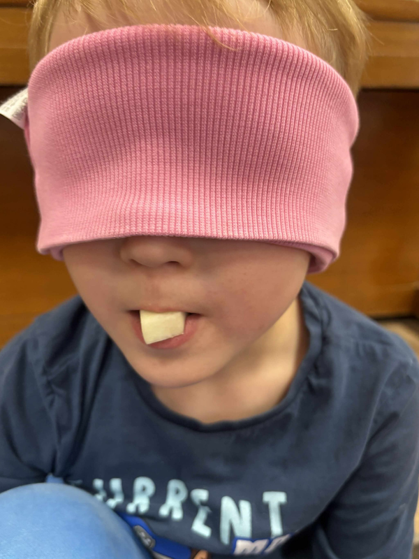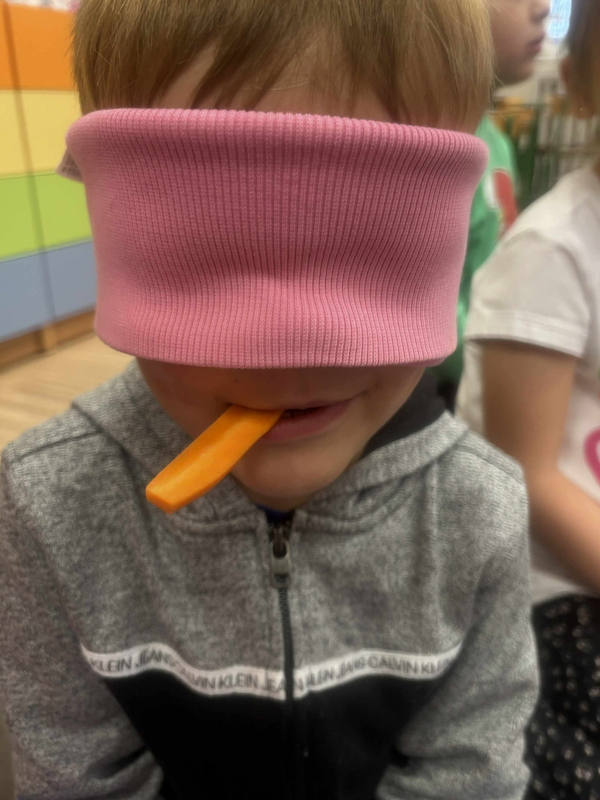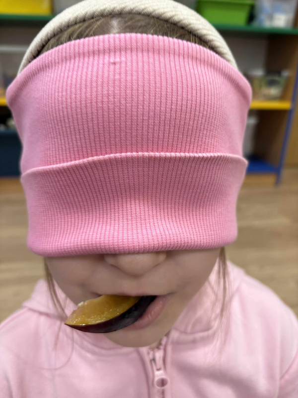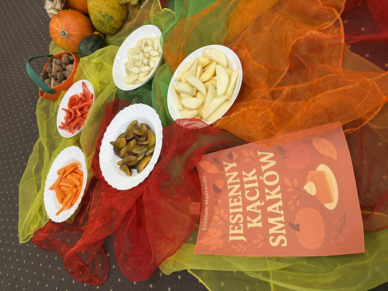 Podczas zajęć nie zabrakło wspólnej degustacji, rozmów o ulubionych smakach i zabaw sensorycznych, które pobudzały wyobraźnię i ciekawość świata dzieci 🌰🍐🌽.