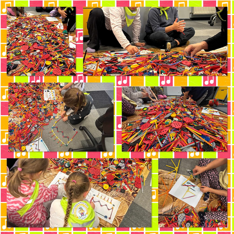 Zajęcia konstrukcyjne pozwoliły im wcielić się w rolę małych inżynierów – tworzyć, budować i eksperymentować, a dzięki aktywnościom muzycznym mogły odkrywać radość płynącą z dźwięków i rytmu. 🎵🔧