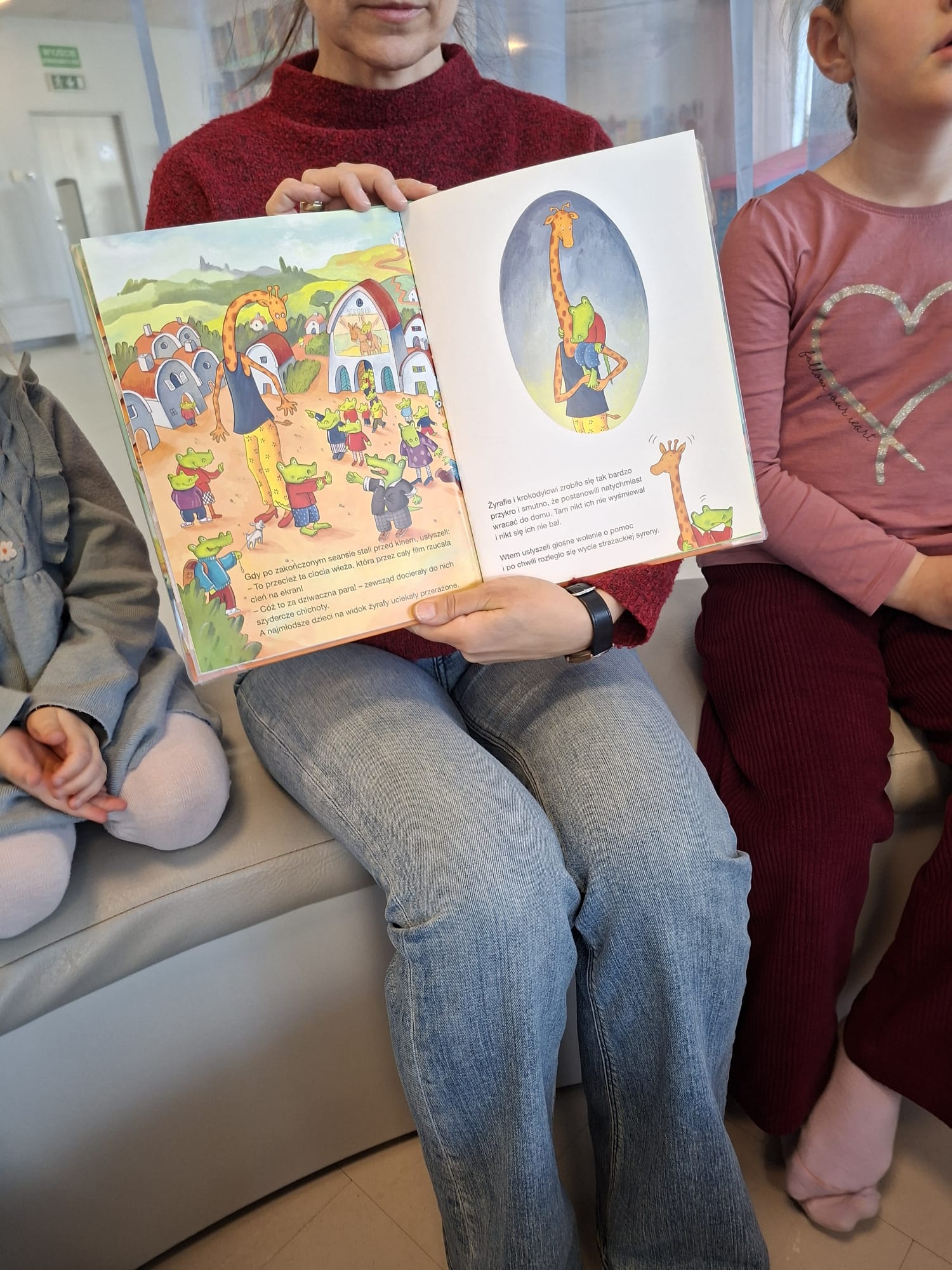 Dzieci z dużym zainteresowaniem wysłuchały historii o Żyrafie i Krokodylu, poznając ich niezwykłe przygody oraz ważne przesłanie płynące z tej opowieści 🦒🐊📖. Była to piękna lekcja o przyjaźni, akceptacji i o tym, że różnice mogą nas wzbogacać.