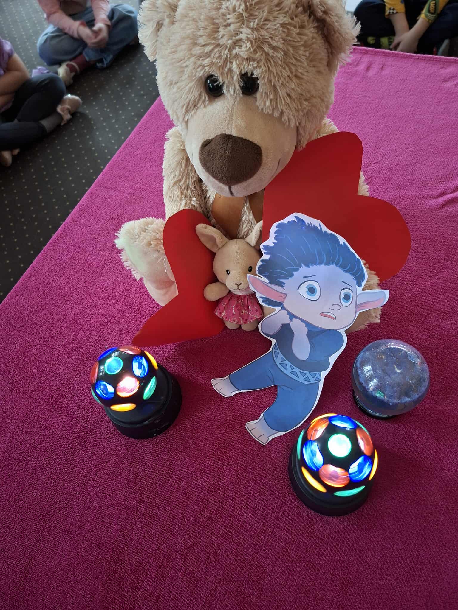 We wtorek w naszych grupach odbyły się wyjątkowe zajęcia z cyklu „Czuciaki z Wyspy Emocji”, poświęcone emocjom związanym ze strachem i lękiem. Tym razem bohaterem spotkań był Bojek z Wyspy Strachu – postać, która pomogła dzieciom zrozumieć, że strach jest naturalną emocją i można nauczyć się go oswajać.
