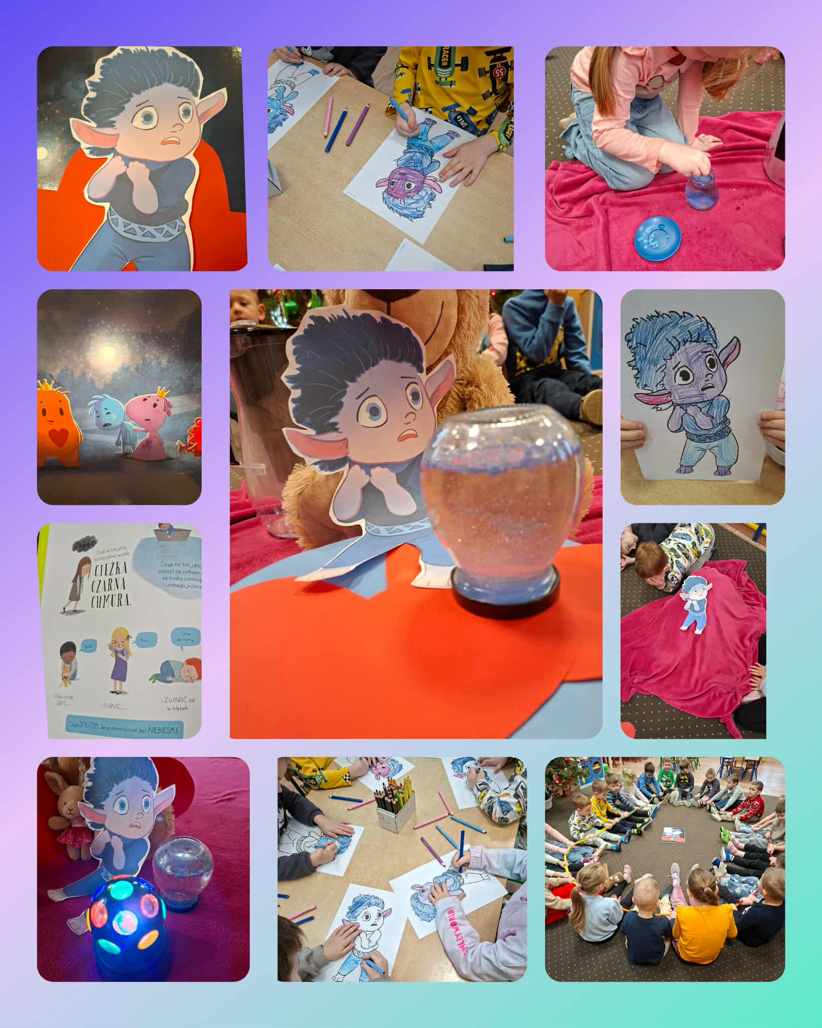 Krasnale  w bezpiecznej, spokojnej atmosferze rozmawiały o swoich odczuciach, uczyły się prostych technik radzenia sobie z napięciem, takich jak ćwiczenia oddechowe, relaksacja przy muzyce oraz działania twórcze. Zwieńczeniem zajęć były aktywności artystyczne, m.in. teatrzyk cieni, który pozwolił dzieciom wyrazić emocje w formie zabawy i współpracy.