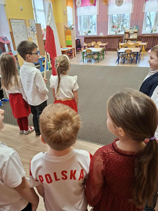 Wierzymy, że właśnie w przedszkolu zaczyna się kształtowanie serc pełnych miłości do kraju. To tu małe dzieci uczą się, że biało-czerwona flaga i dźwięk hymnu to powód do dumy i wzruszenia. Każdy uśmiech, gest i piosenka naszych Krasnali to piękny wyraz wdzięczności dla tych, którzy wywalczyli wolność, w której dziś dorastają.