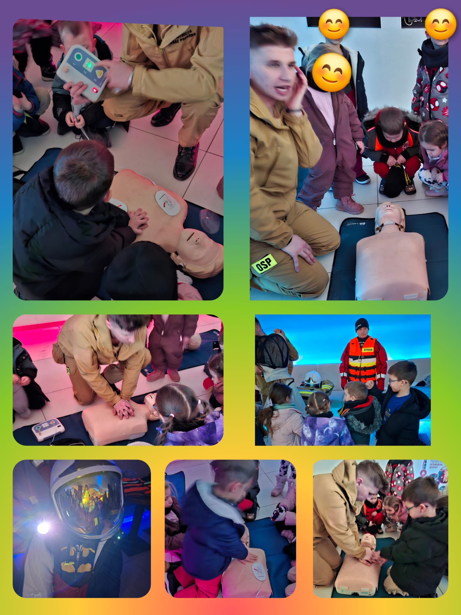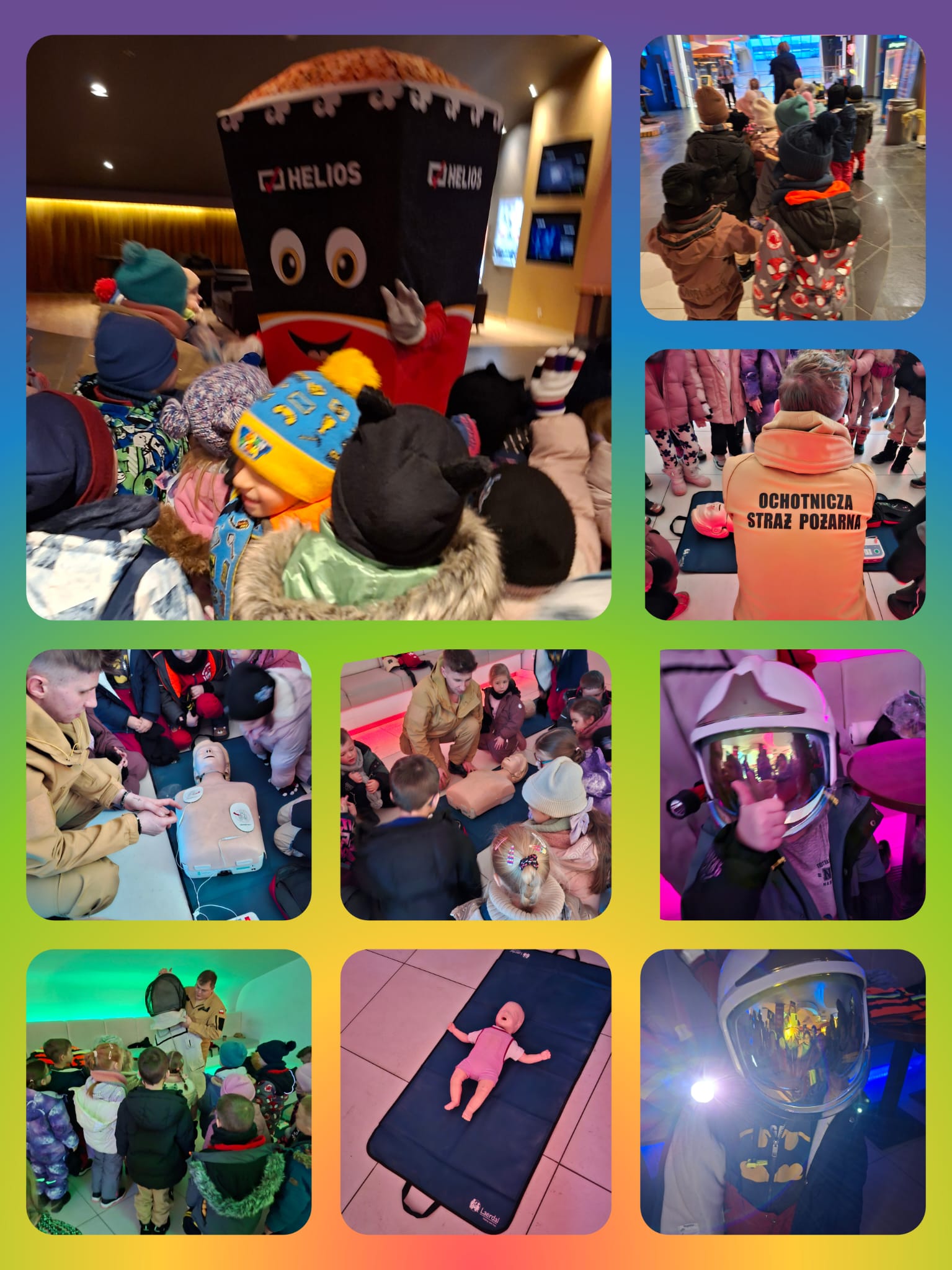 Dzieci z grup Pracusie, Mądraczki i Szczęściarze z ogromnym zaangażowaniem śledziły losy bohatera, a następnie aktywnie uczestniczyły w rozmowie podsumowującej film. Wspólnie zastanawialiśmy się, czym jest strach, jak go oswajać oraz dlaczego proszenie o pomoc jest oznaką siły, a nie słabości. Naturalnym przedłużeniem tych rozważań było spotkanie ze strażakami, którzy w przystępny i niezwykle ciekawy sposób przybliżyli dzieciom podstawowe zasady udzielania pierwszej pomocy.