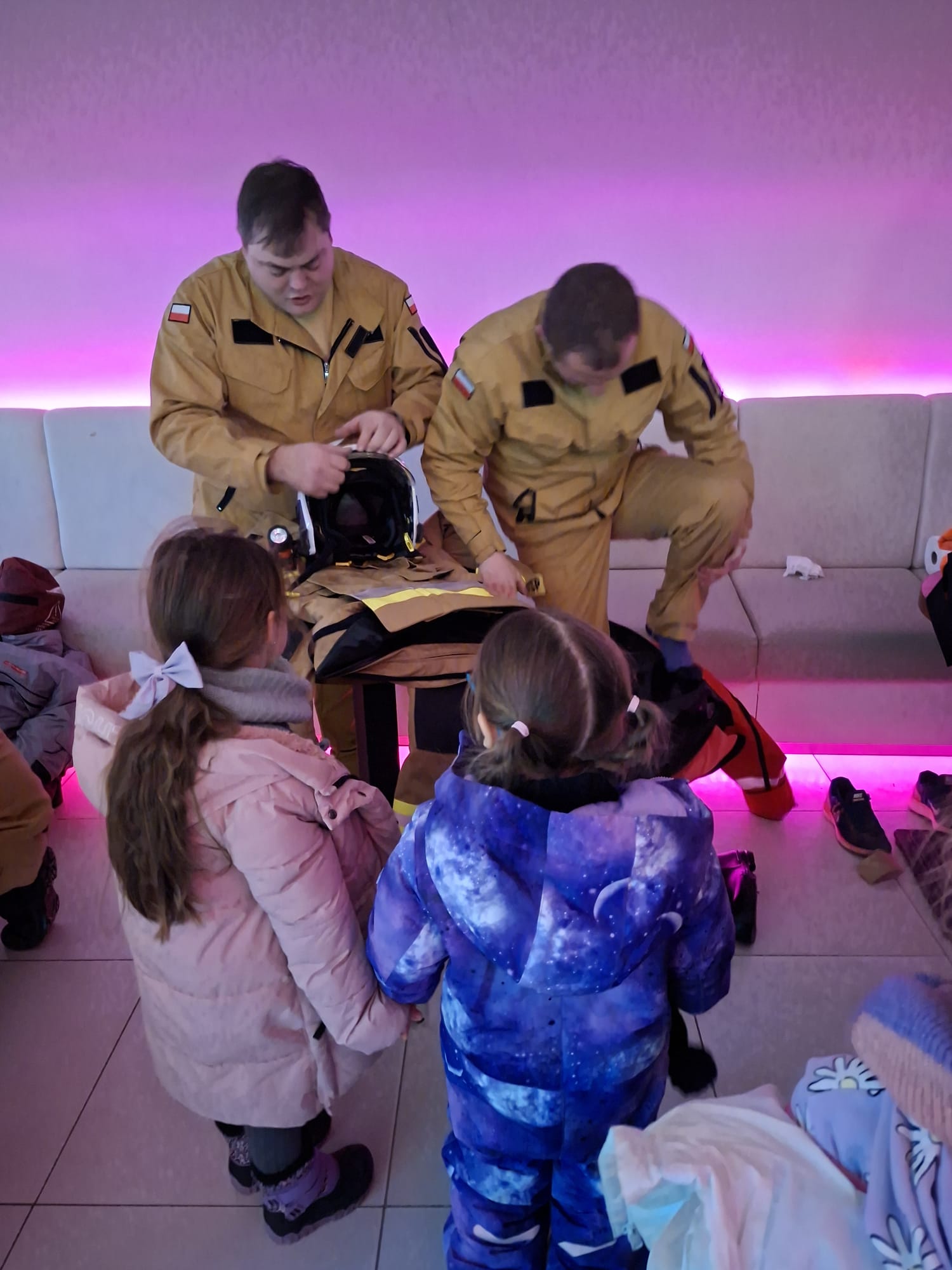 Dzięki bezpośredniemu kontaktowi z profesjonalistami dzieci mogły dowiedzieć się, jak reagować w sytuacjach zagrożenia, kogo wzywać na pomoc oraz jak ważne jest zachowanie spokoju i uważności na drugiego człowieka. Wiedza została przekazana w formie dostosowanej do wieku dzieci – z empatią, spokojem i dużą dawką pozytywnej energii, co sprawiło, że spotkanie było nie tylko pouczające, ale również budujące poczucie bezpieczeństwa i sprawczości. Takie wyjścia doskonale wpisują się w naszą filozofię edukacyjną – łączymy kulturę, edukację emocjonalną i praktyczne umiejętności życiowe, dbając o wszechstronny rozwój dzieci. Dzisiejszy dzień był pięknym przykładem nauki przez doświadczenie, rozmowę i realny kontakt ze światem. Dziękujemy strażakom za obecność, zaangażowanie i przekazanie dzieciom tak cennych informacji, które – mamy nadzieję – zaprocentują w przyszłości większą świadomością i odpowiedzialnością najmłodszych.