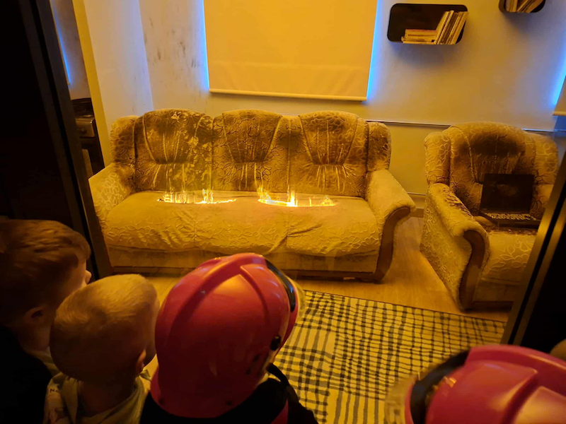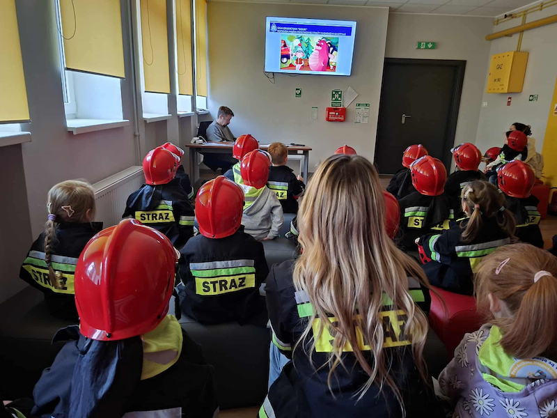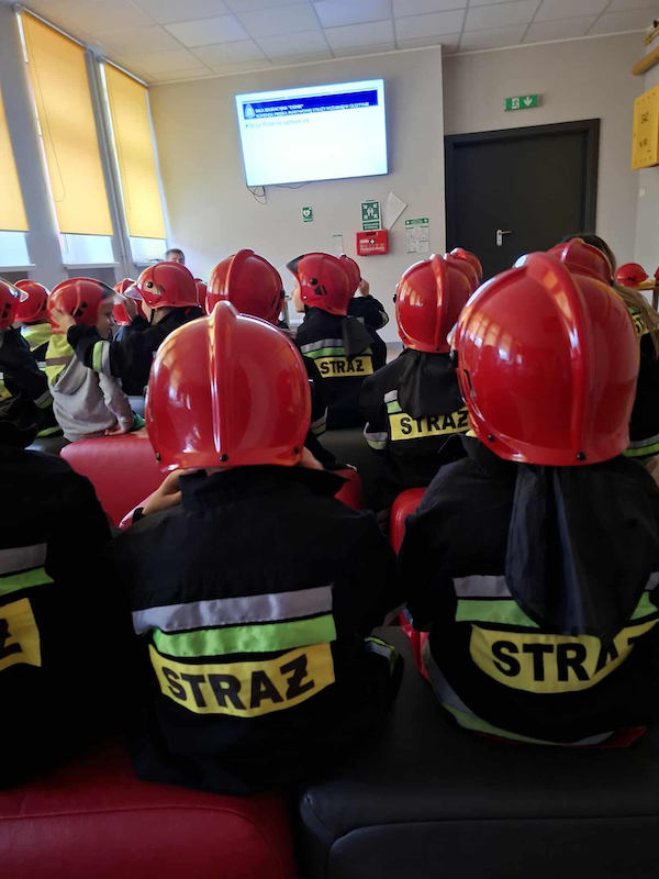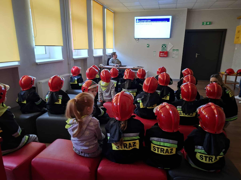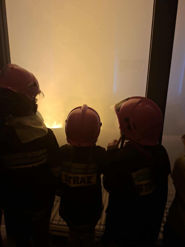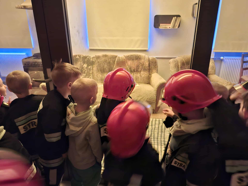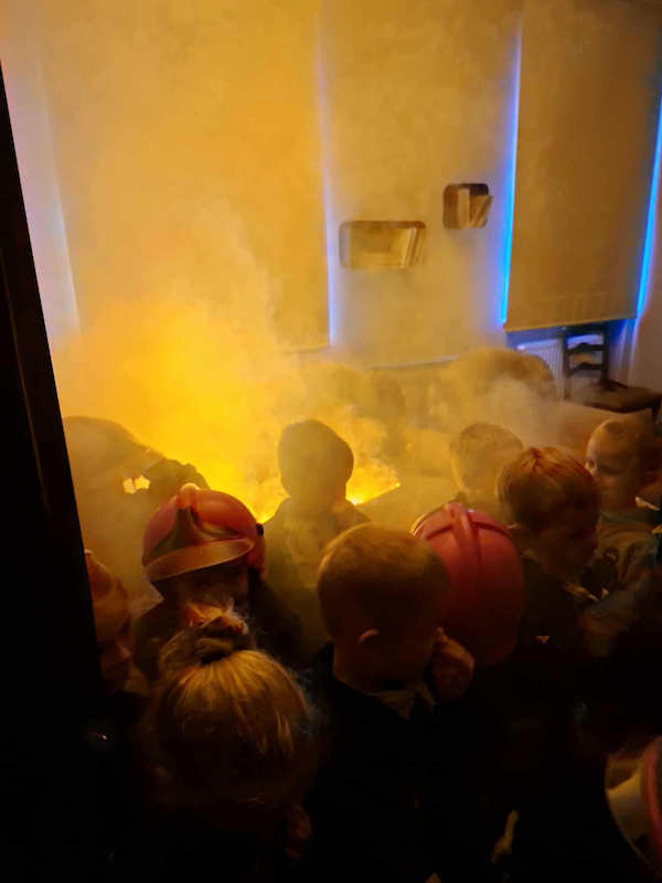 Zajęcia prowadzone przez strażaków łączyły naukę z zabawą — były filmy, rozmowy i praktyczne ćwiczenia. 👩🚒👨🚒 Największe wrażenie zrobiła symulacja prawdziwego pożaru w specjalnie przygotowanym pomieszczeniu, która pozwoliła dzieciom lepiej zrozumieć, jak groźne potrafi być to zjawisko i jak ważna jest rozwaga. 🔥