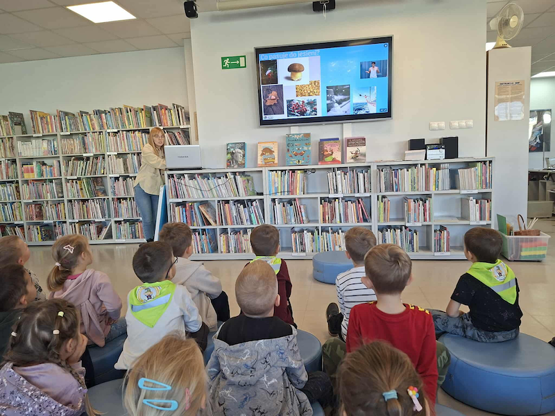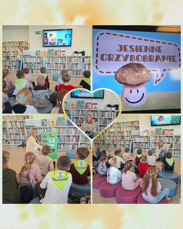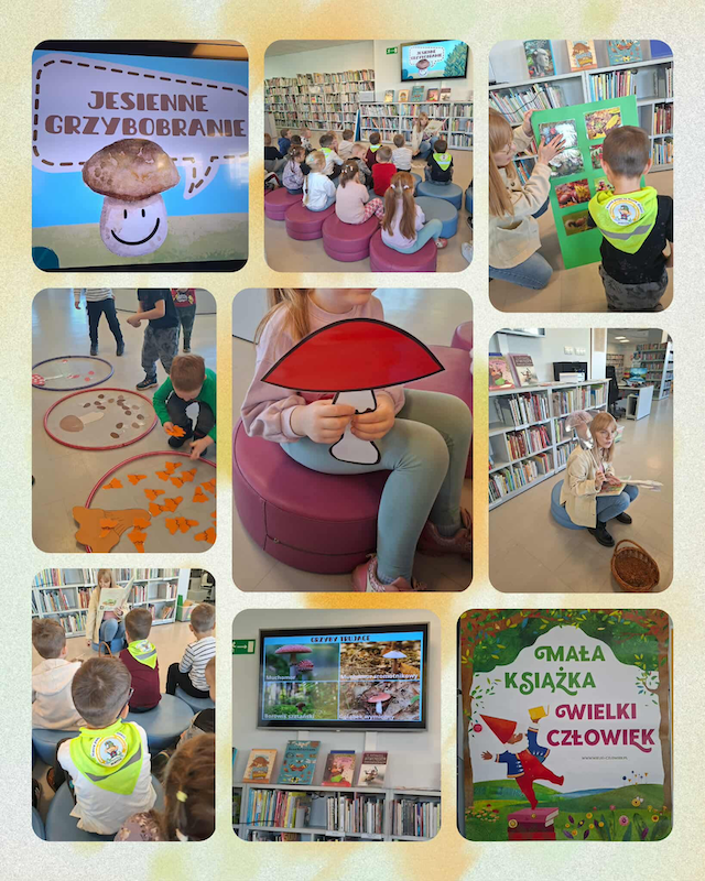 Krasnale Pracusie wybrały się do Biblioteki Abecadło na zajęcia edukacyjne pt. „Jesienne grzybobranie” 🍂🍄📚.
