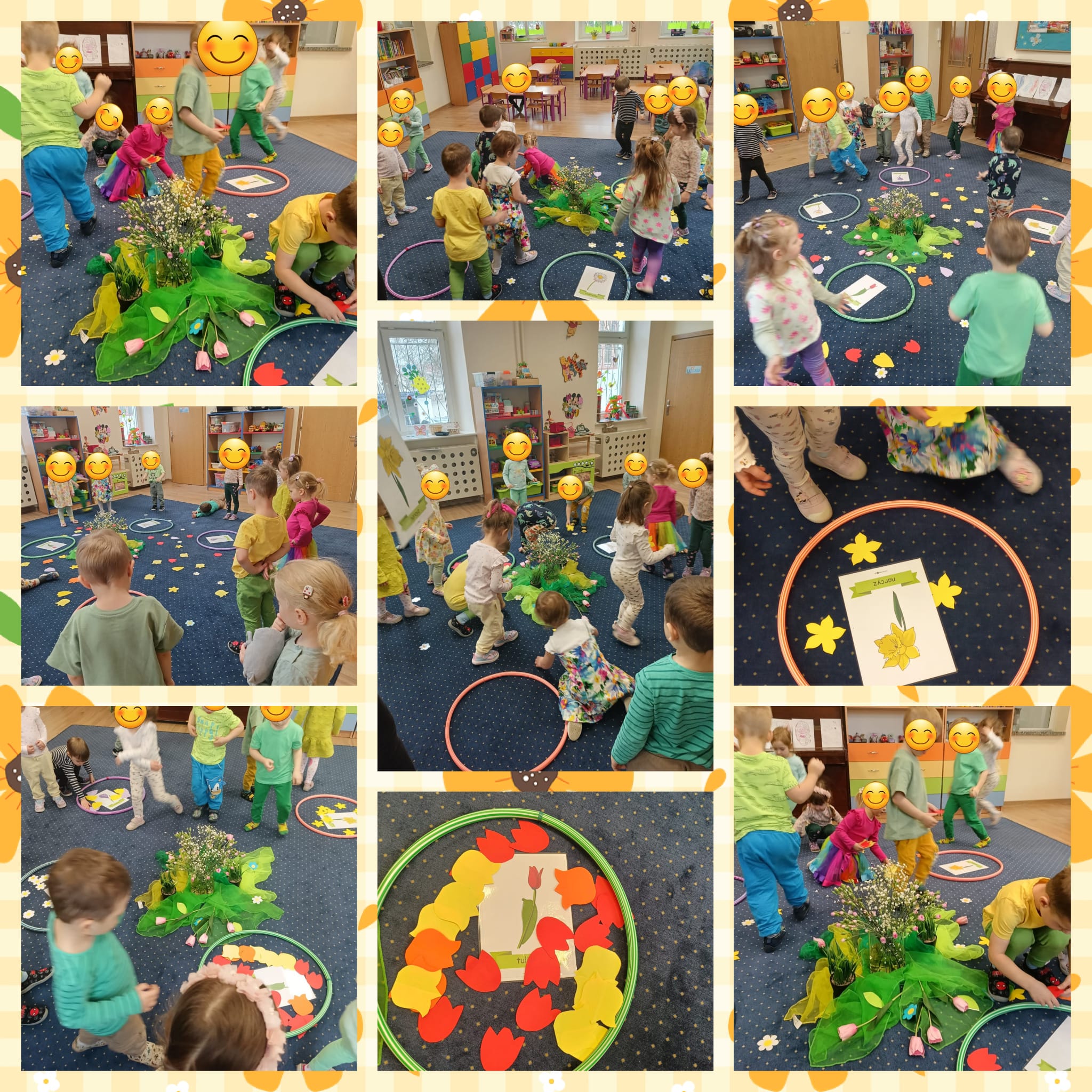 Dzieci wzięły udział w różnorodnych zabawach wiosennych 🌷🎶