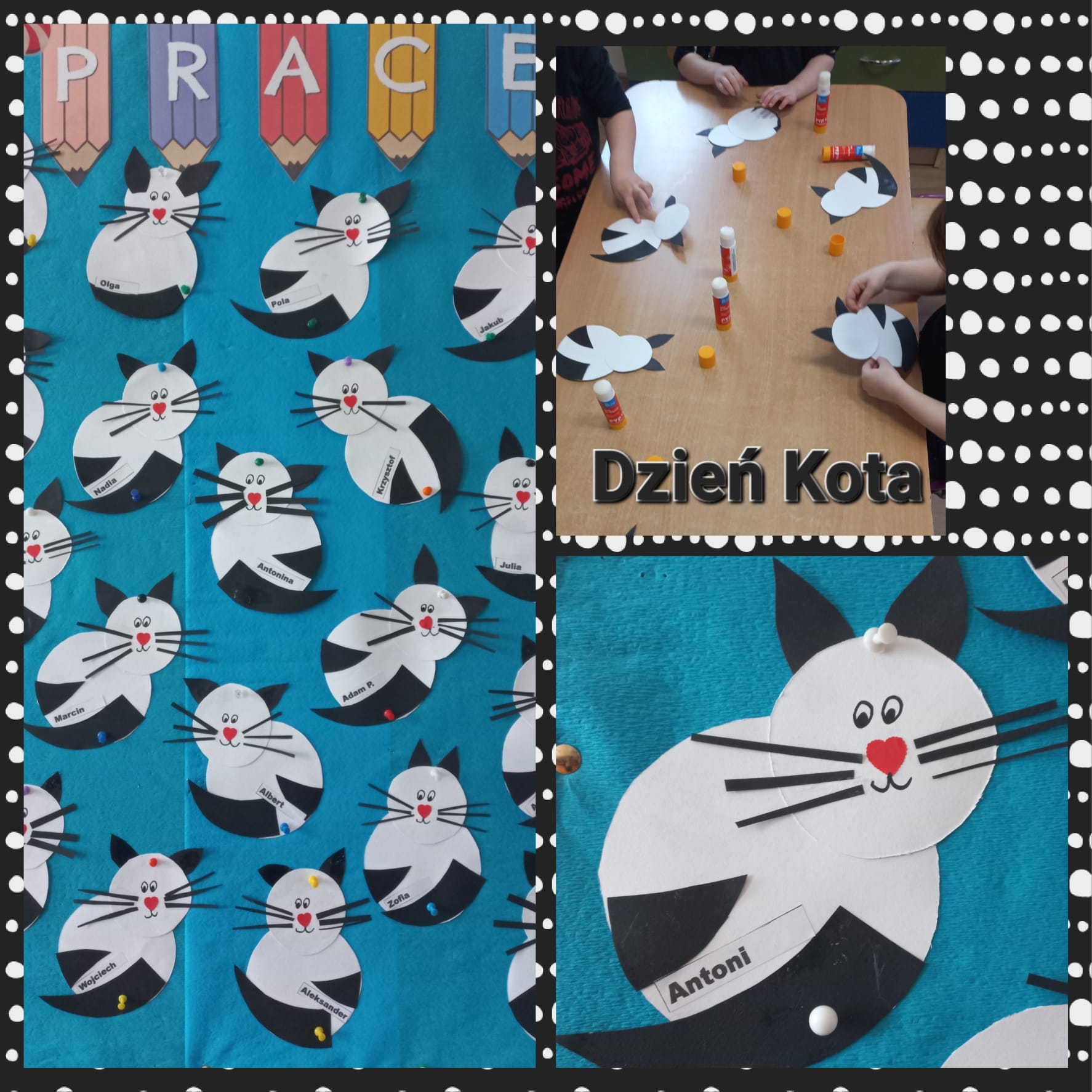 Dziś w grupie Przytulaczków zapanowało radosne „Miau!”! 🐾🐱 Świętowaliśmy Dzień Kota w iście kocim stylu! 🐈⬛✨ Nasze przedszkolaki zamieniły się w prawdziwych miłośników futrzaków: podziwialiśmy zdjęcia pięknych kotków 🖼️😻, bawiliśmy się włóczkami jak małe kiciuśki 🧶 i tworzyliśmy przepiękne kocie arcydzieła 🎨🖌️.