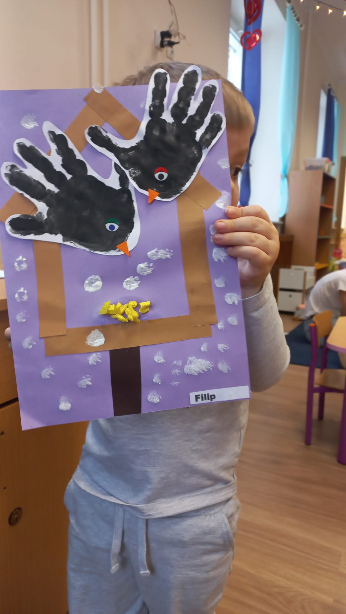 Podczas zajęć rozmawialiśmy również o ptakach zimujących w naszym otoczeniu, o tym, dlaczego warto je dokarmiać zimą oraz jak możemy dbać o przyrodę na co dzień. Była to doskonała okazja do rozwijania empatii, uważności i postaw proekologicznych już od najmłodszych lat.