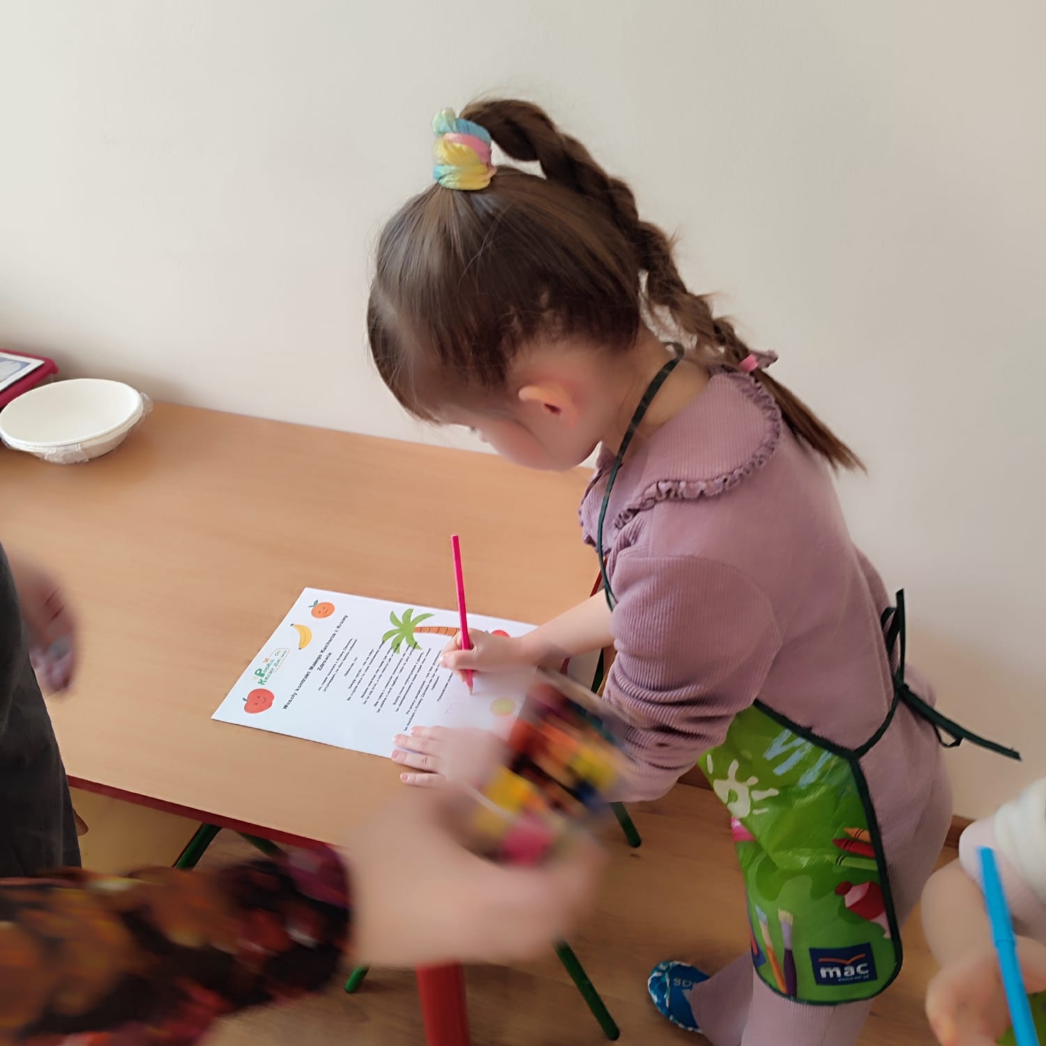 Podczas warsztatów kulinarnych nasze przedszkolaki tworzyły jadalne obrazy z warzyw i owoców 🍎🥕🍊🎨. Było kolorowo, kreatywnie i bardzo smacznie – a każde dzieło było małym kulinarnym arcydziełem.