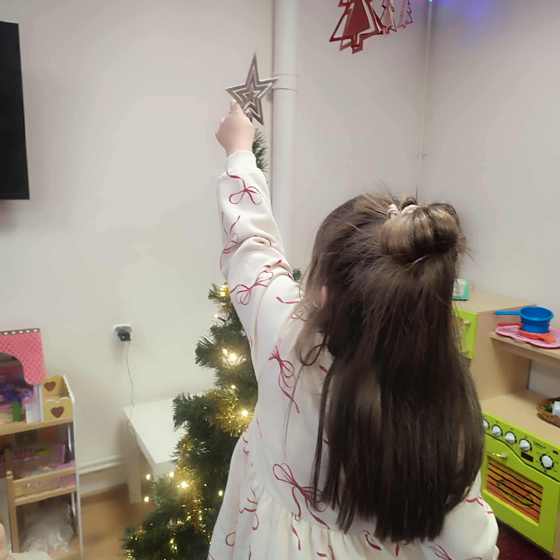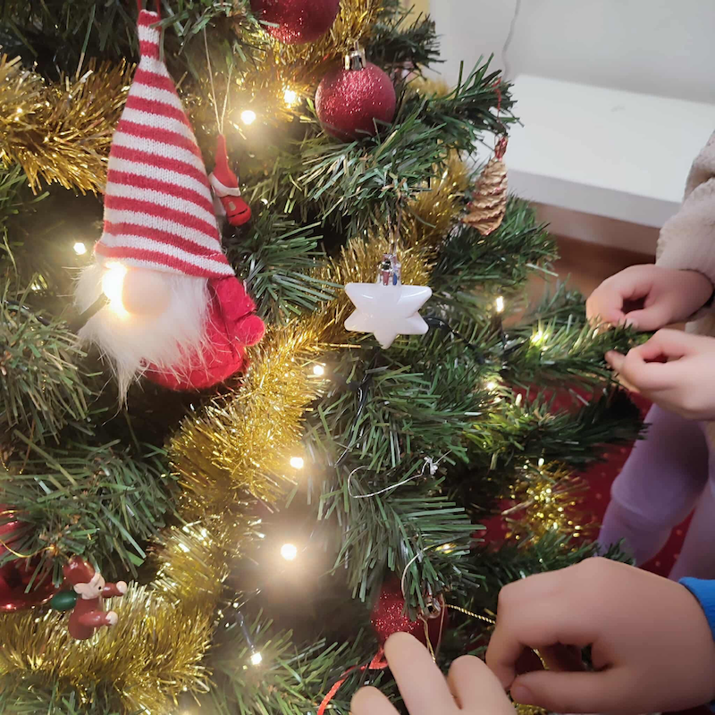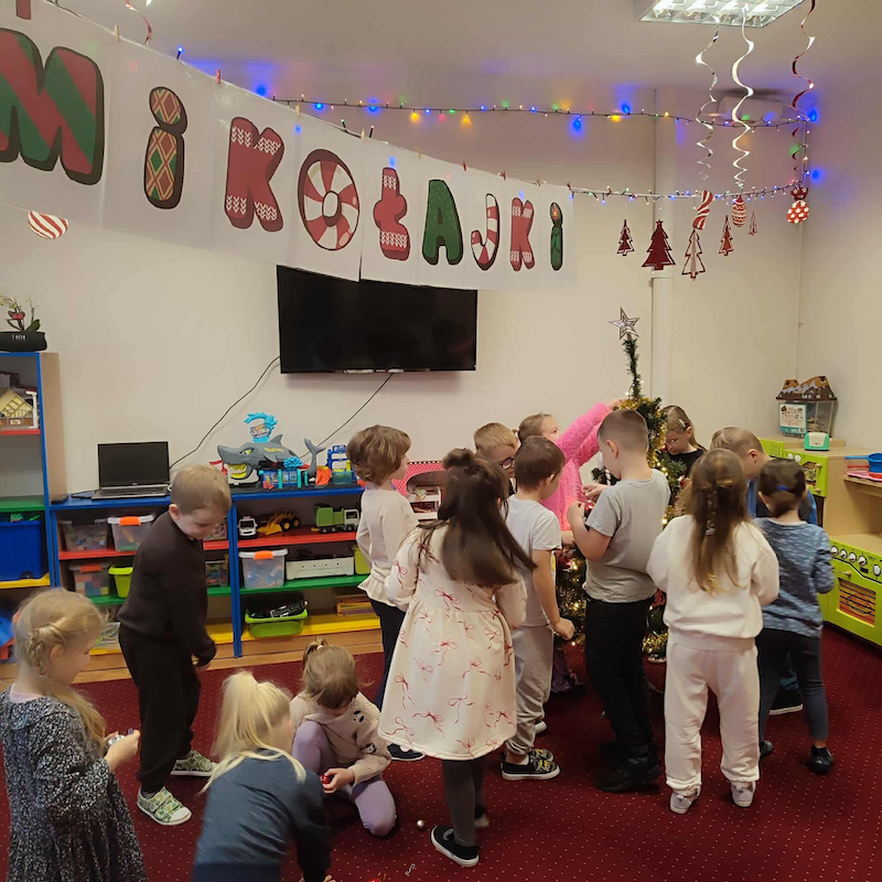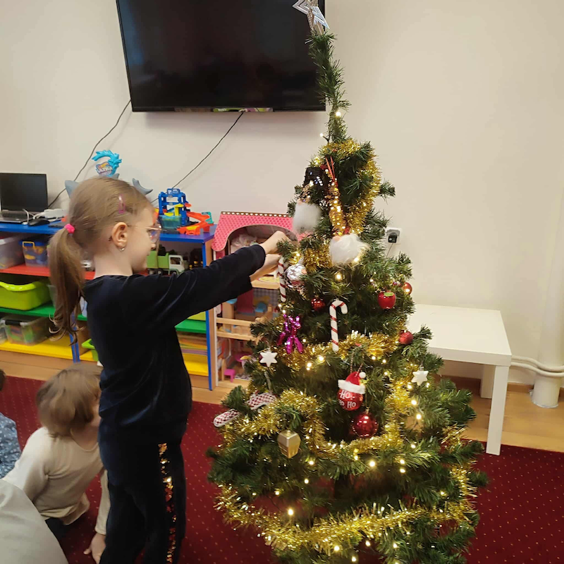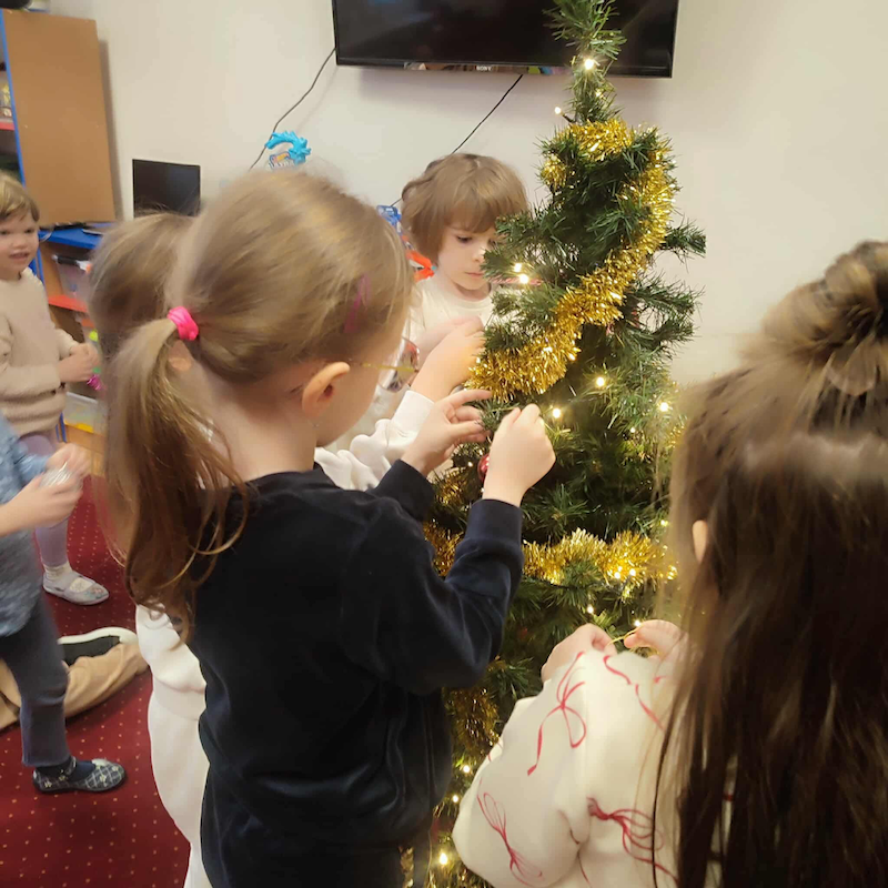 Ubieranie choinki to jeden z tych momentów, na który wszystkie przedszkolaki czekają z ogromną niecierpliwością. „Szczęściarze” z wielkim zapałem przystąpiły do zawieszania ozdób, a każda z nich wnosiła na choinkę odrobinę dziecięcej radości i świątecznej energii.