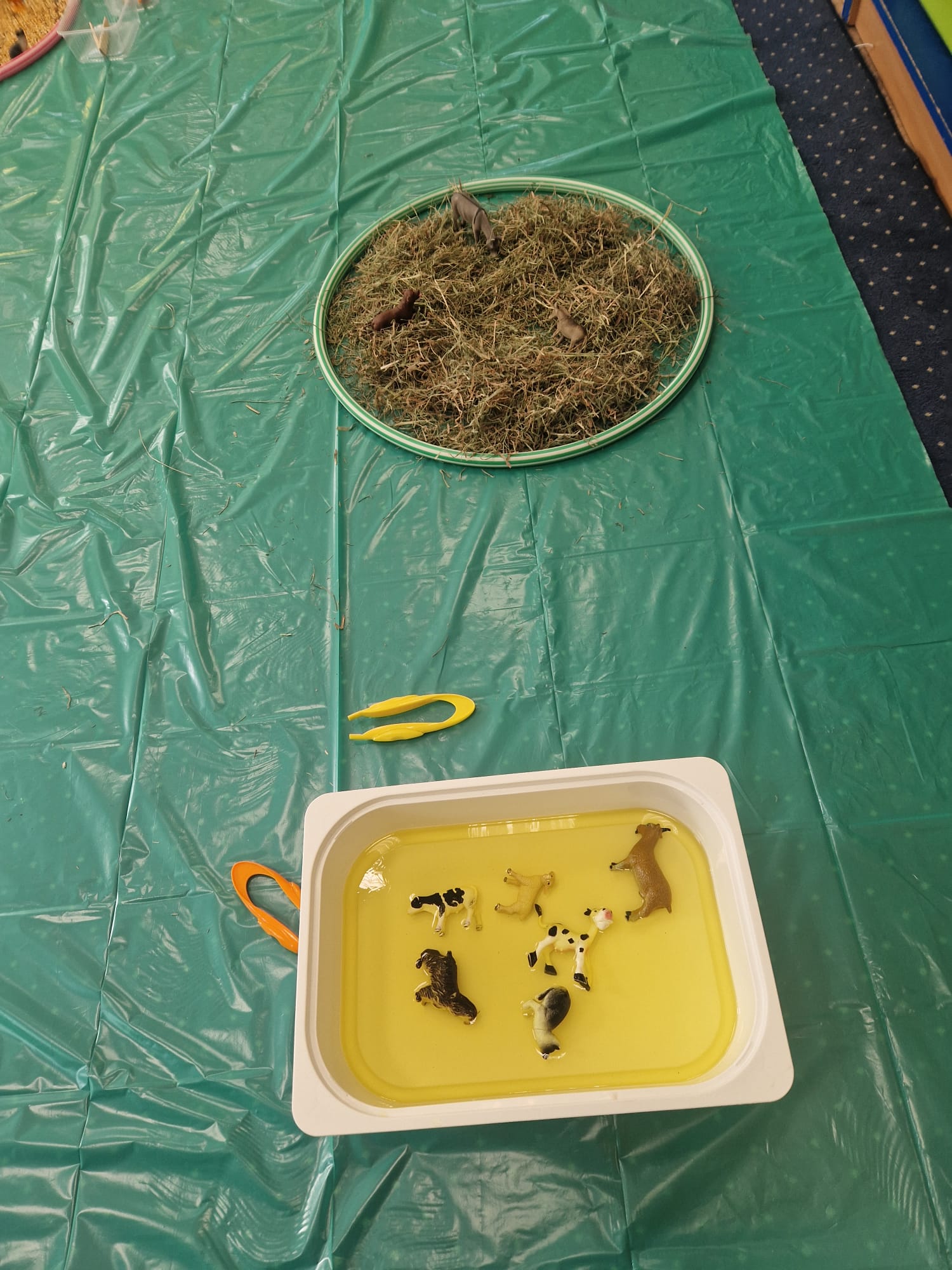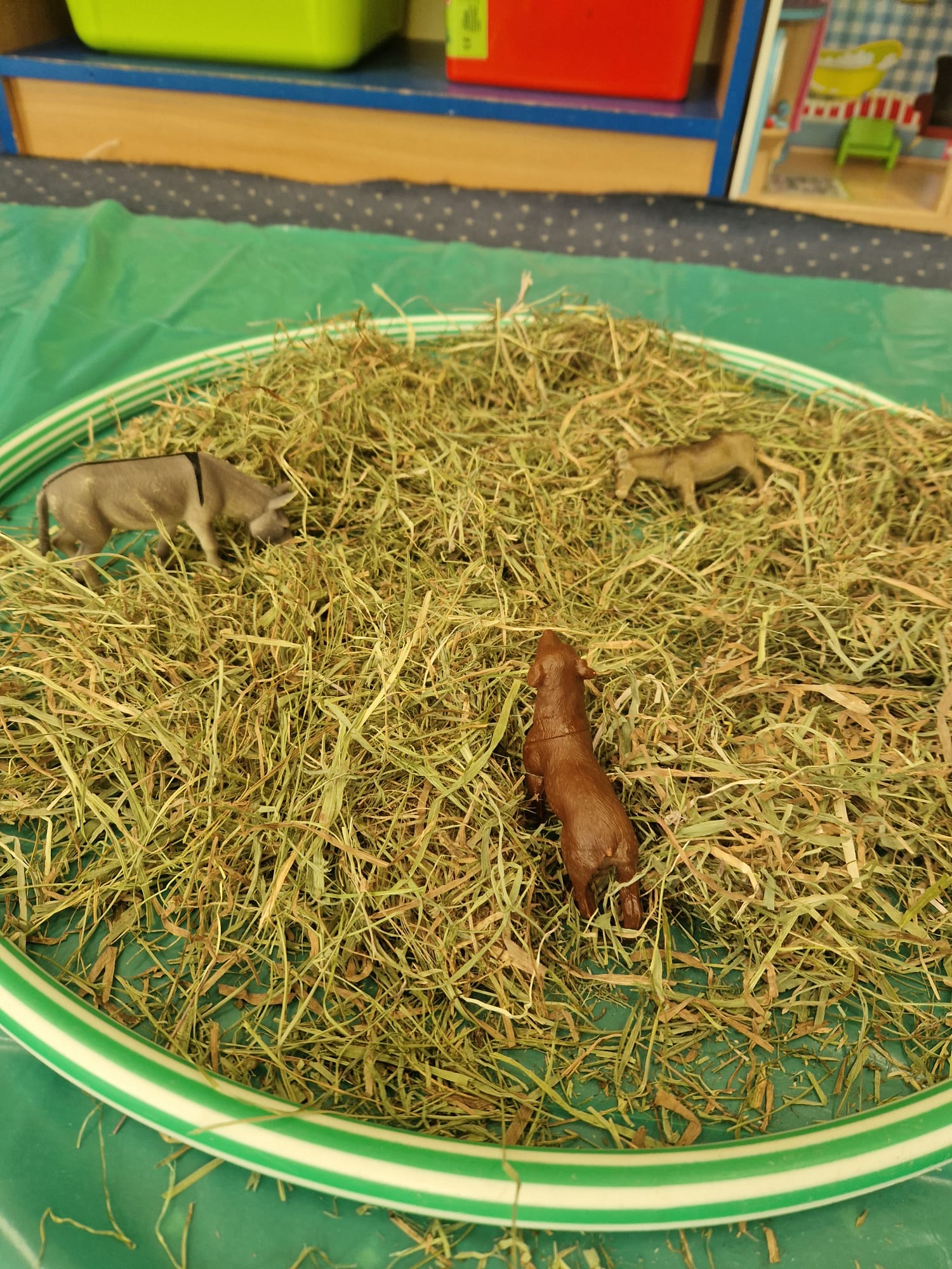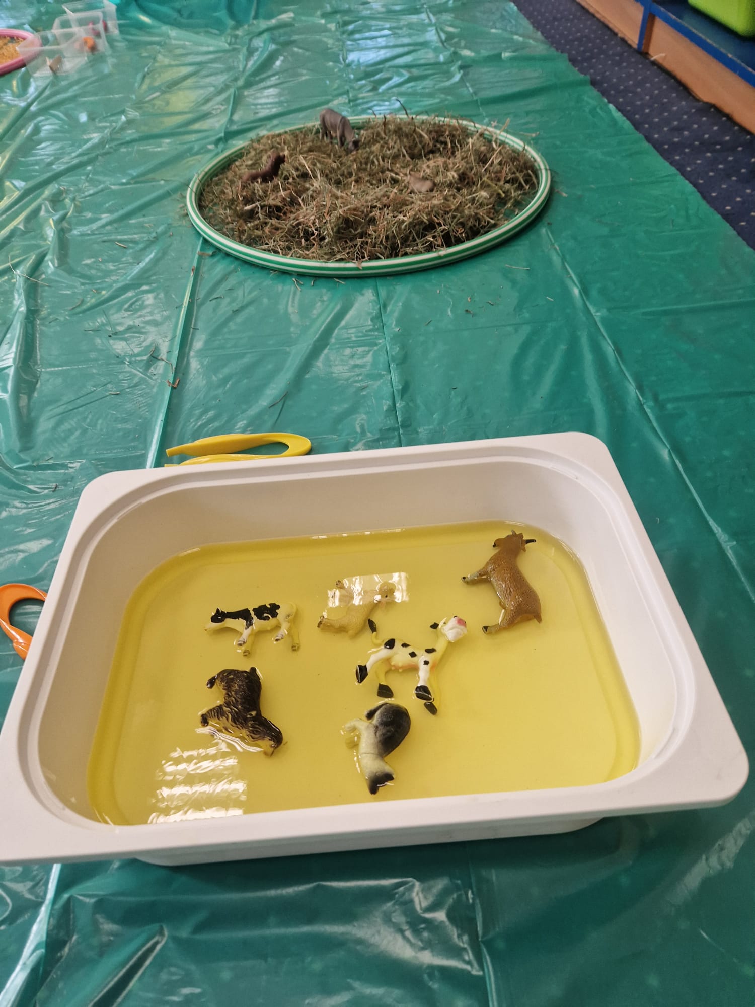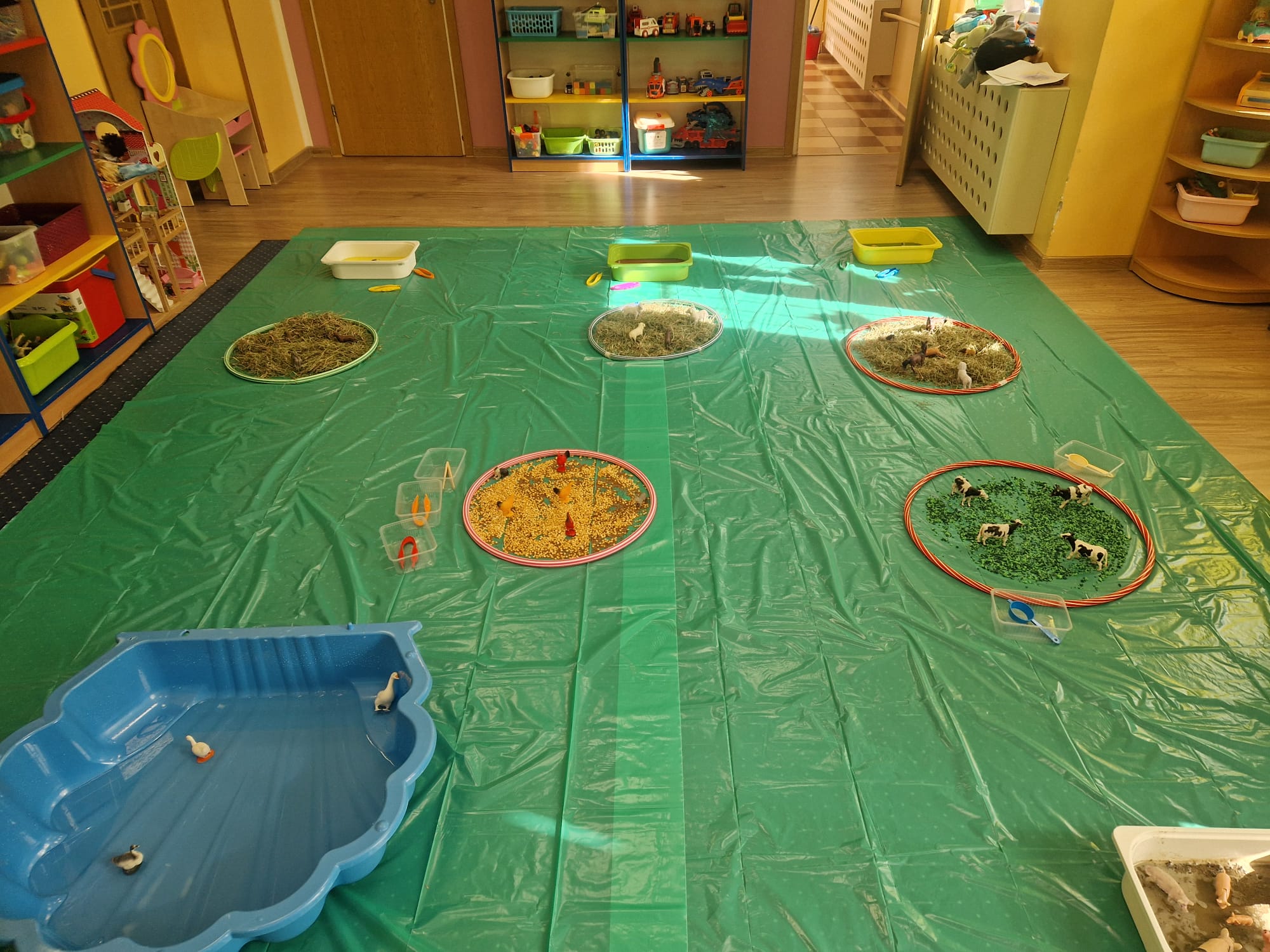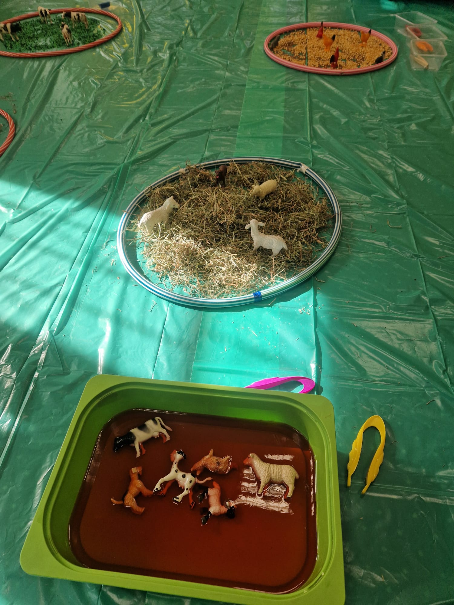 🐑 dzieci poznawały zwierzęta poprzez dotyk i zabawę 🌾 zanurzały rączki w naturalnych materiałach – ziarnach, sianie i ziemi 🐄 odkrywały różne faktury, zapachy i struktury 😊 rozwijały wyobraźnię, swobodę działania i radość z odkrywania