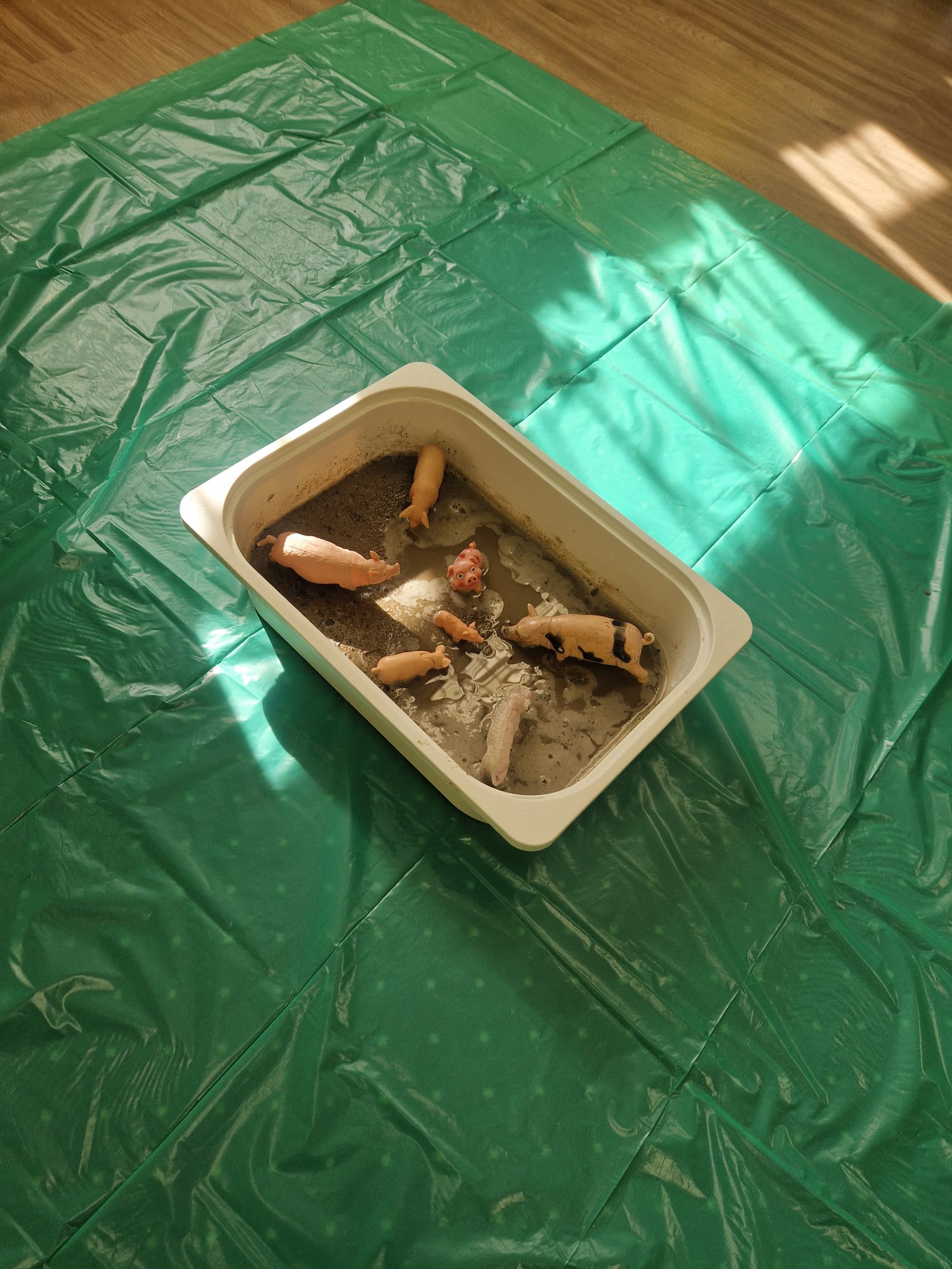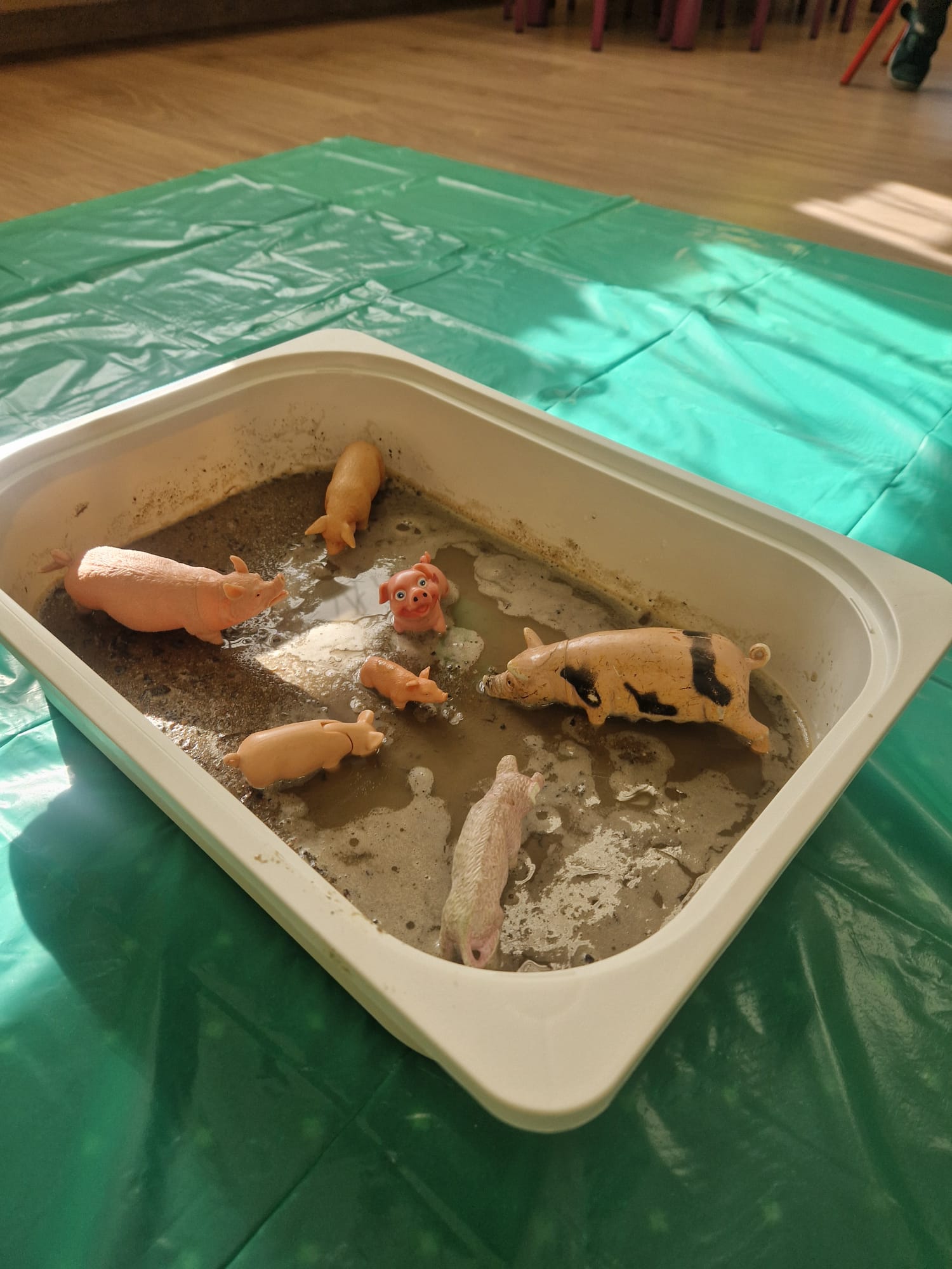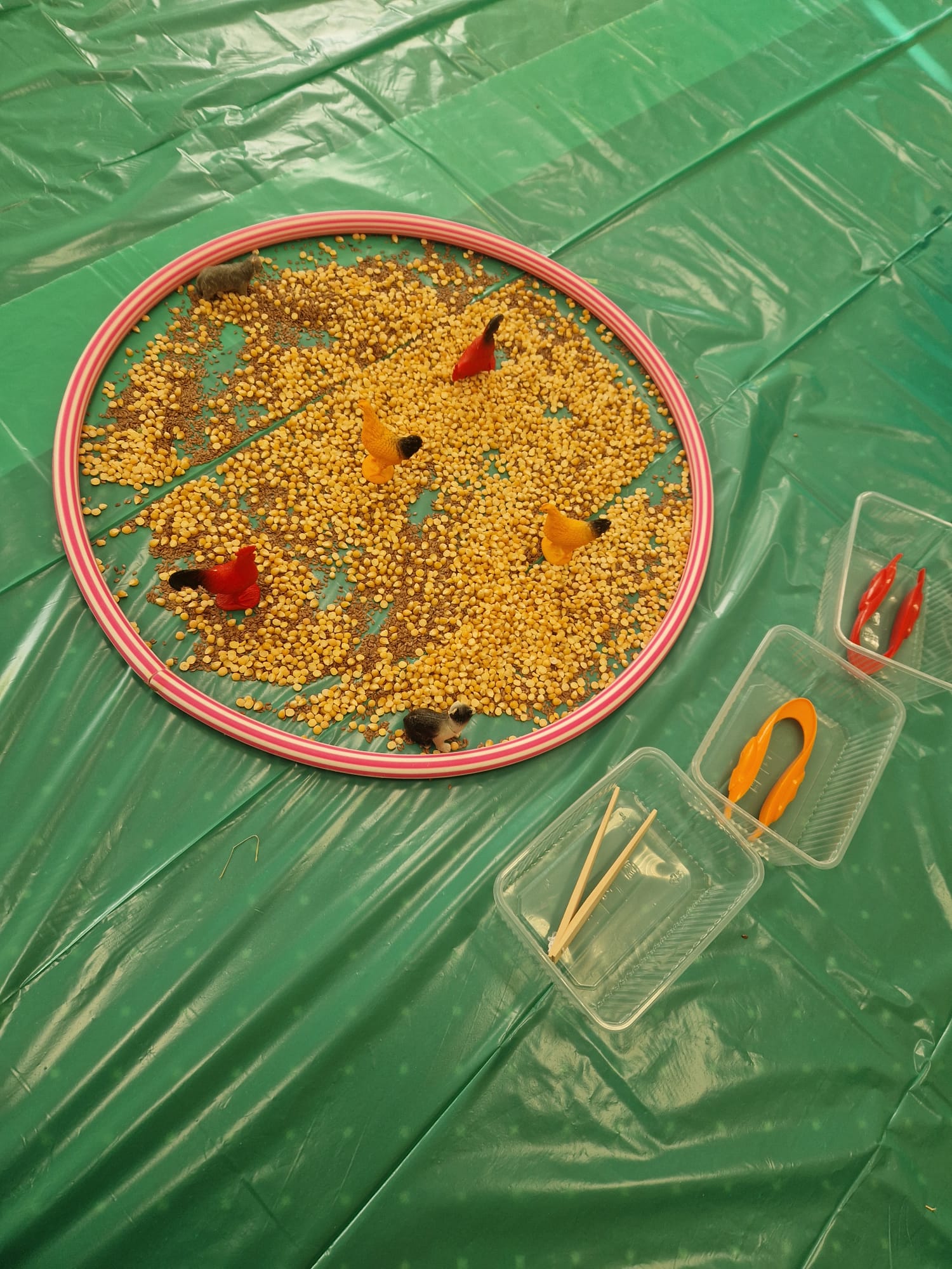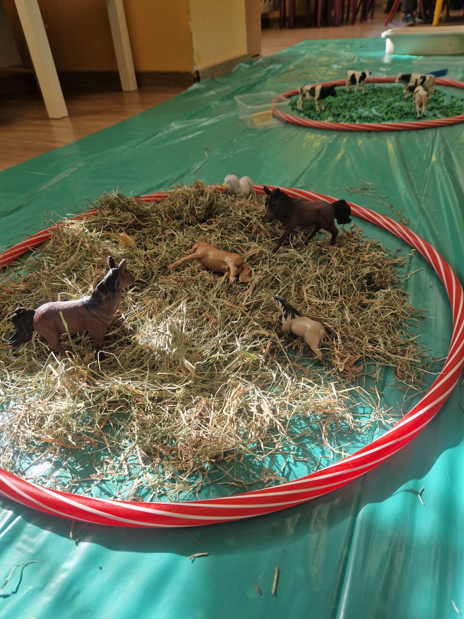 🐑 dzieci poznawały zwierzęta poprzez dotyk i zabawę 🌾 zanurzały rączki w naturalnych materiałach – ziarnach, sianie i ziemi 🐄 odkrywały różne faktury, zapachy i struktury 😊 rozwijały wyobraźnię, swobodę działania i radość z odkrywania