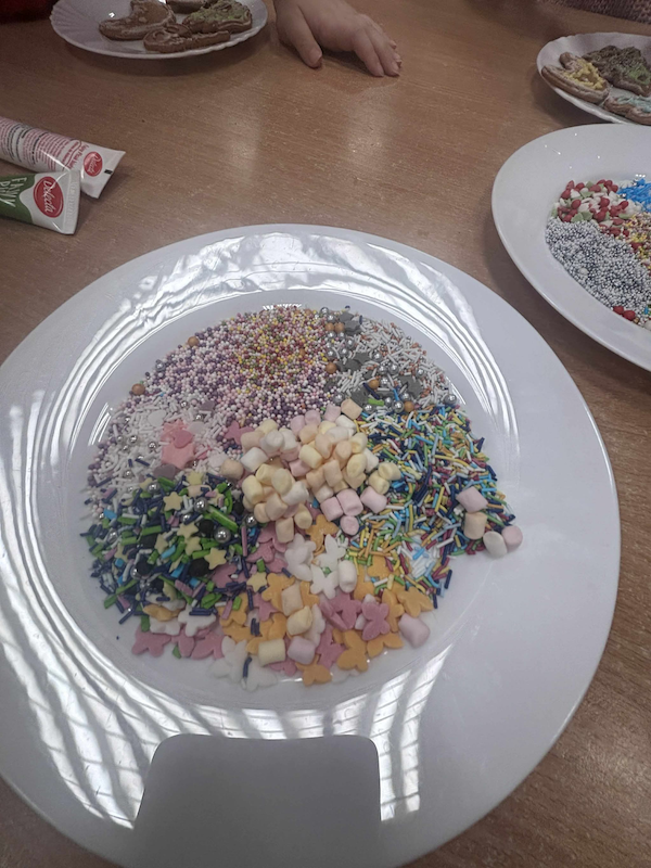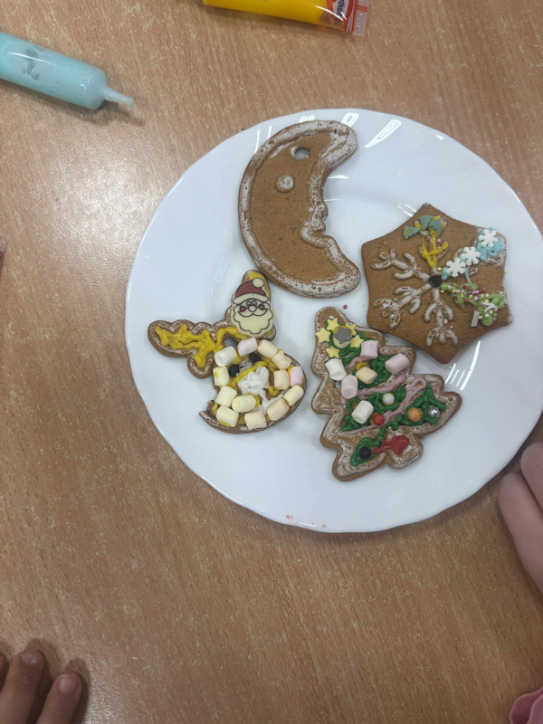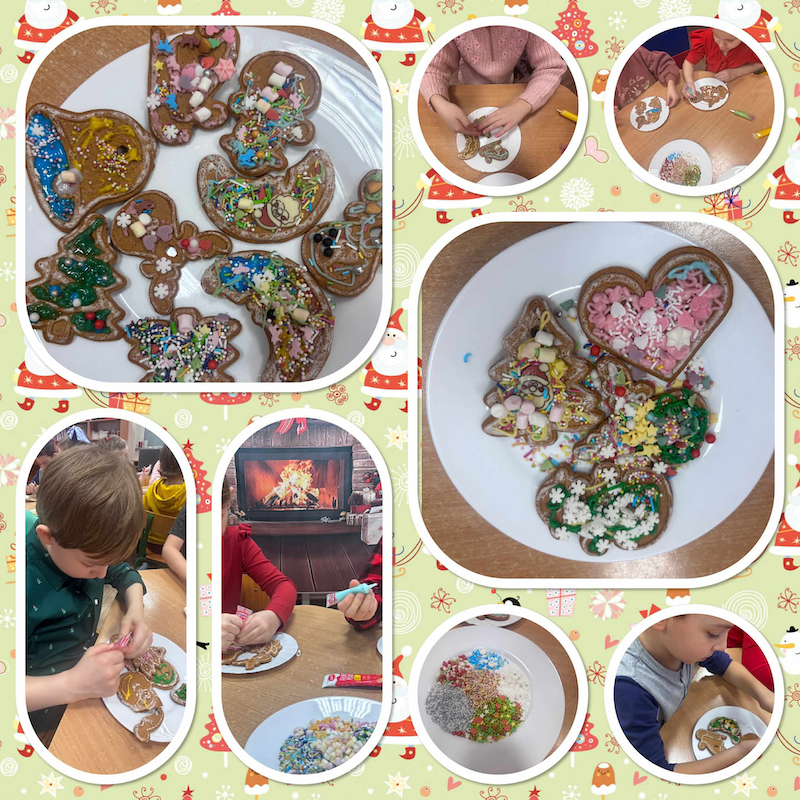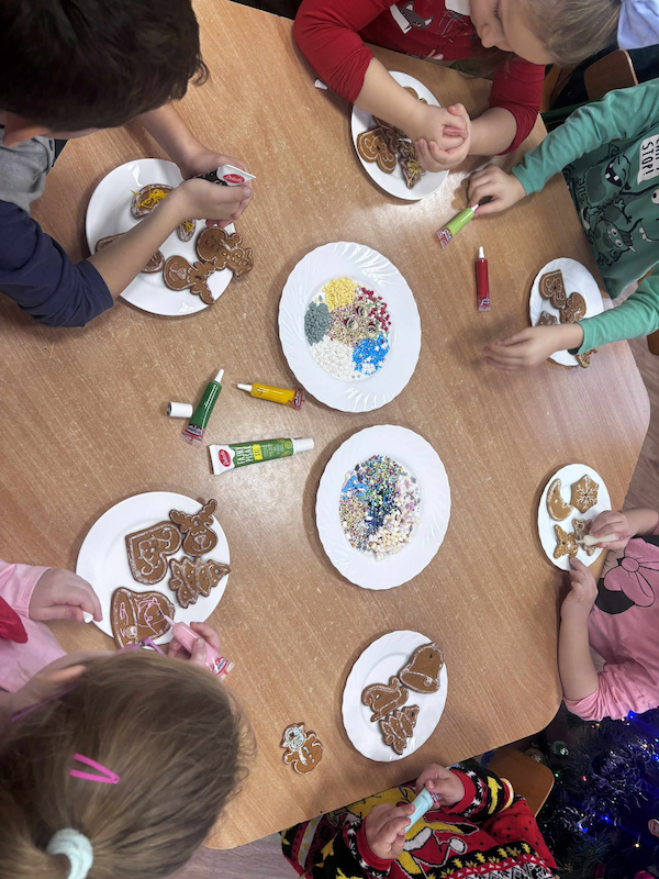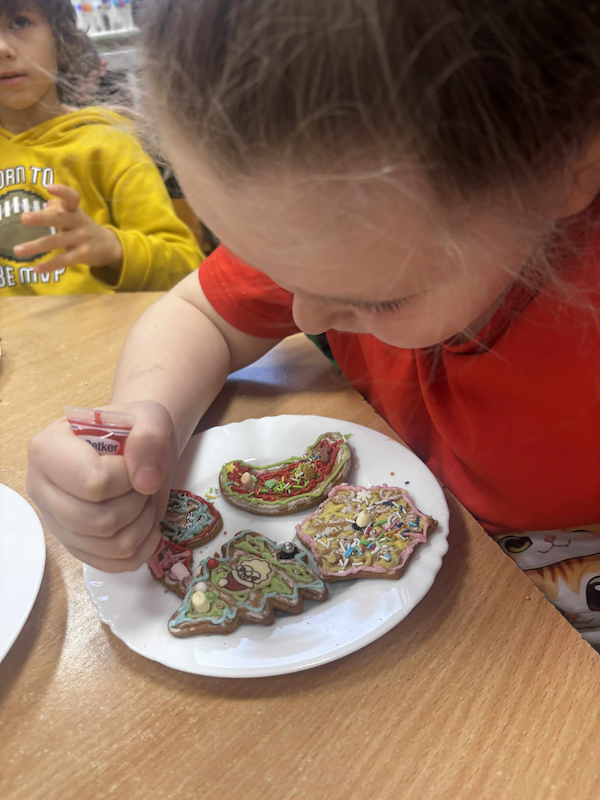 Krasnale Mądraczki 👧🧒 z ogromnym zaangażowaniem 💪💛 dekorowały pierniki 🍪🍪🍪, zamieniając je w prawdziwe 🎨 małe dzieła sztuki 🎨