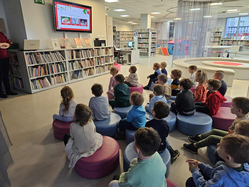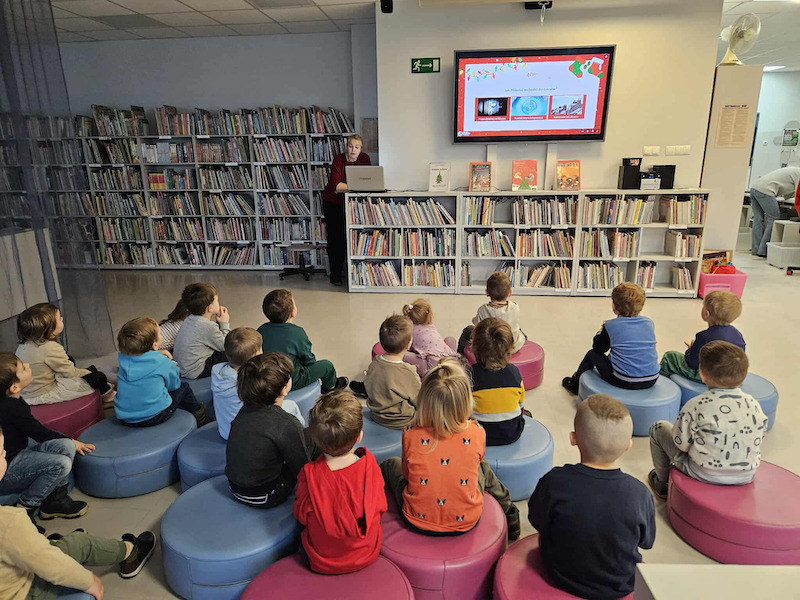 Krasnale Wesołki odwiedziły Bibliotekę Abecadło, gdzie czekał na nie teatrzyk „Gwiazdka Myszek”, zimowe opowieści i mnóstwo świątecznej zabawy. ❄️🎄 Dzieci zanurzyły się w magiczny świat książek, śmiechu i przedświątecznych niespodzianek.