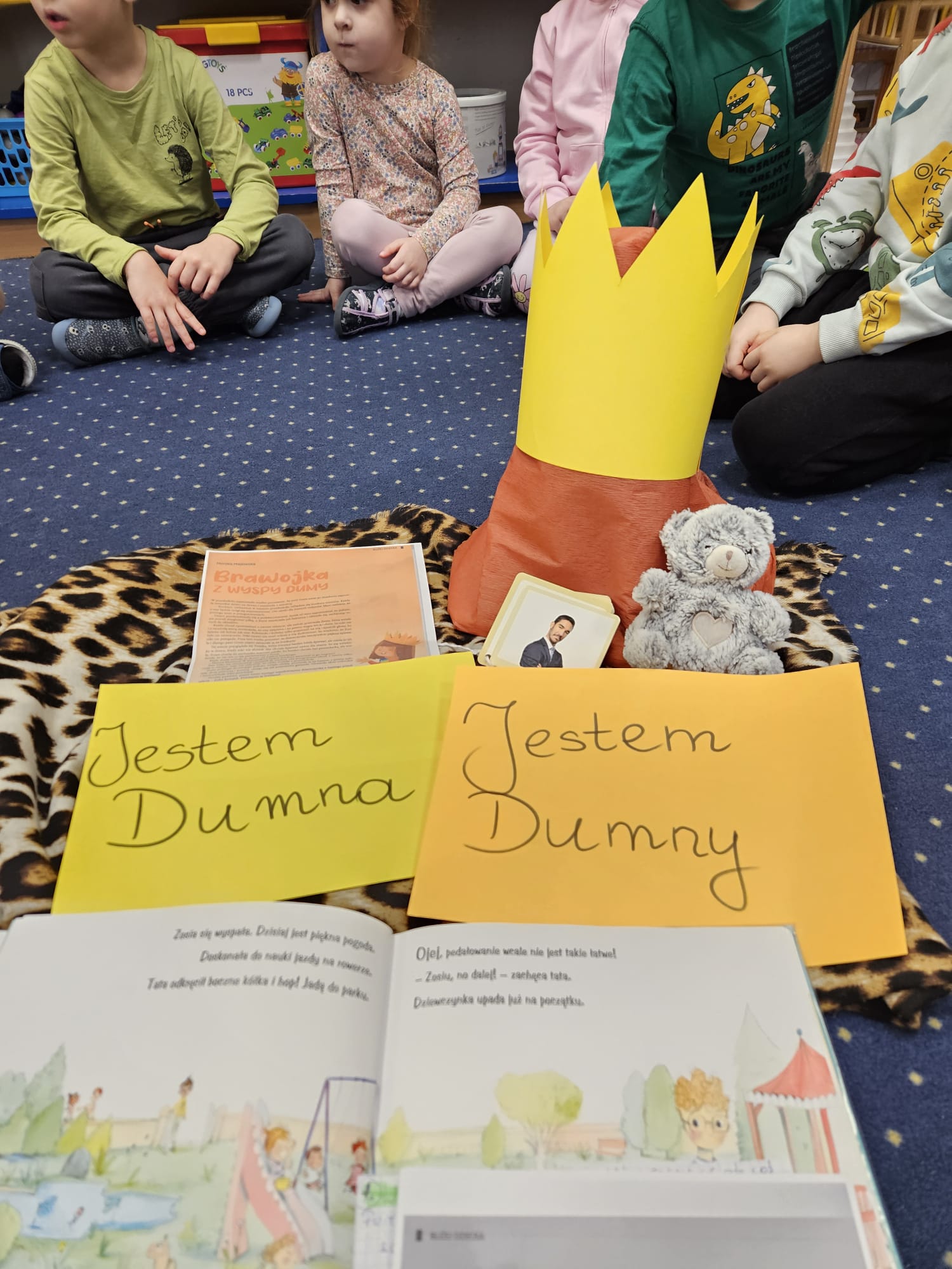 Szczęściarze odkrywały, czym jest duma i kiedy ją odczuwamy. Rozmawialiśmy o tym, że duma w wieku przedszkolnym to nie pycha – to zdrowe poczucie własnej wartości, radość z podejmowanego wysiłku i satysfakcja z małych, codziennych sukcesów 🦖✨