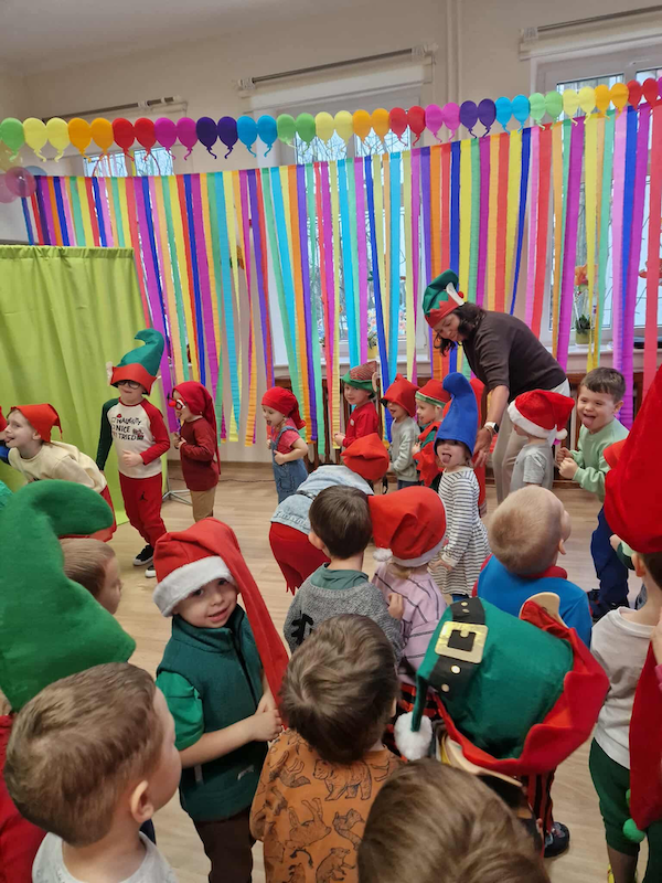 Dzieci przybyły w krasnalowych przebraniach, a w salach rozbrzmiewały tańce, śmiech, wspólne śpiewanie i radosna energia, która towarzyszyła nam od samego rana. Zabawy, teatrzyki, quizy i własnoręczne tworzenie Krasnali sprawiły, że dzień był pełen emocji i niespodzianek.