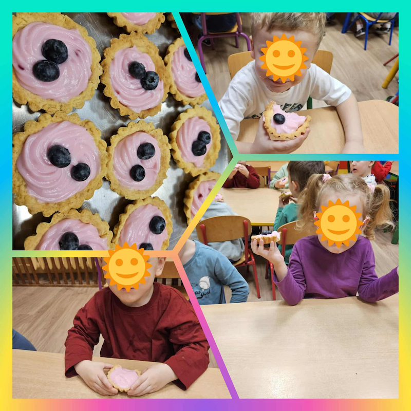 Wszystkie pozostałe dzieci biorące udział w konkursie otrzymały dyplomy oraz nagrody — każdy uczestnik zasłużył na wyróżnienie za talent i kreatywność, którą włożył w swoją pracę. Dzień uświetnił nam podwieczorek, który zrobiły nam własnoręcznie Pani Kucharki – babeczki z budyniem i borówkami.