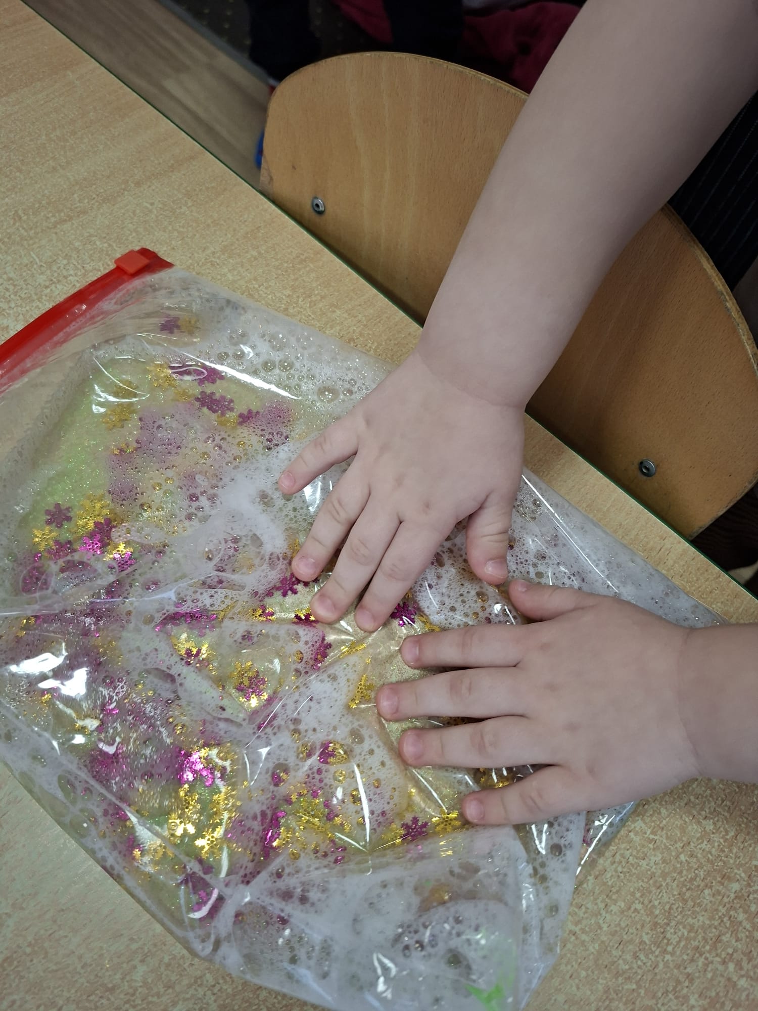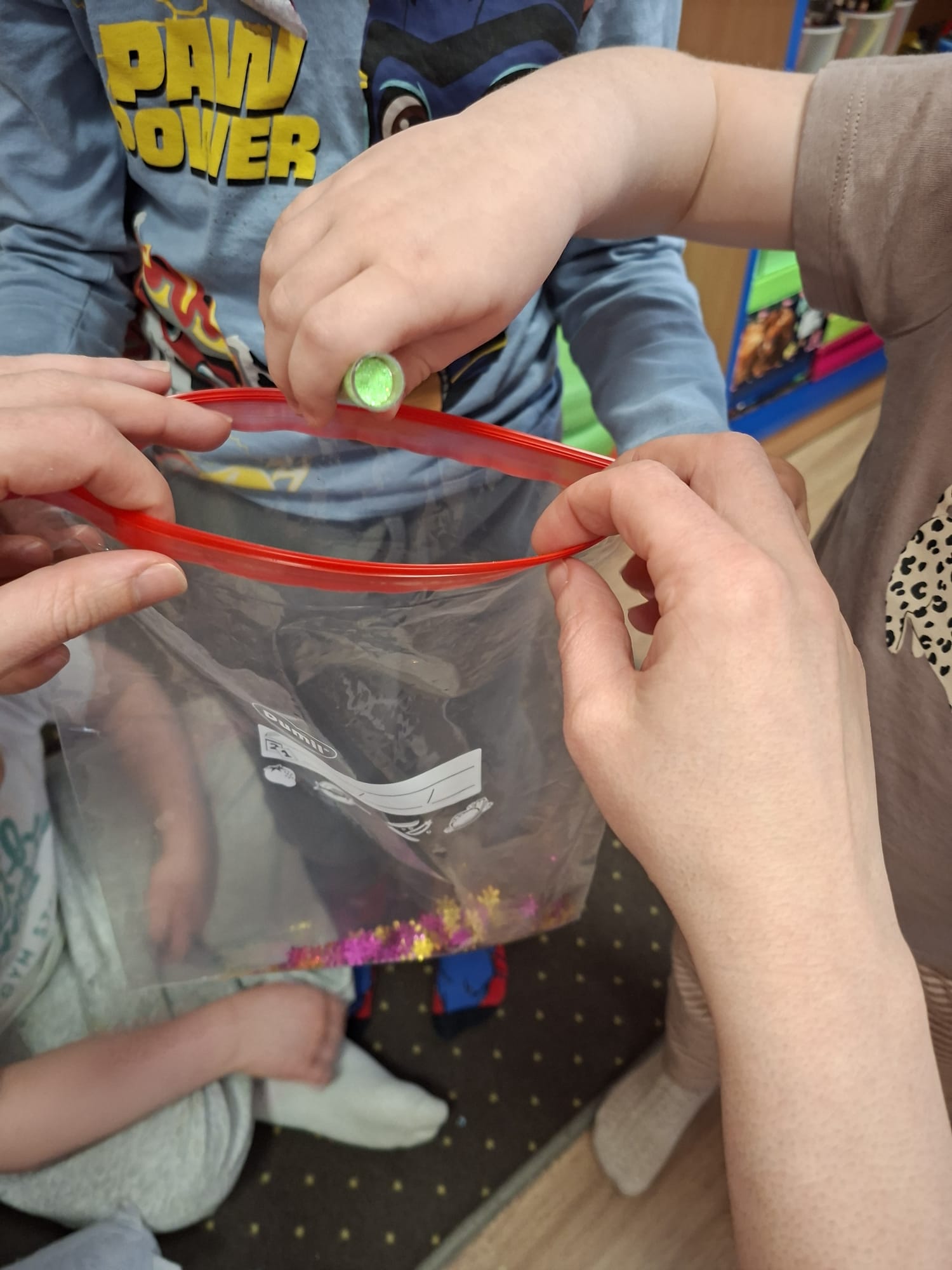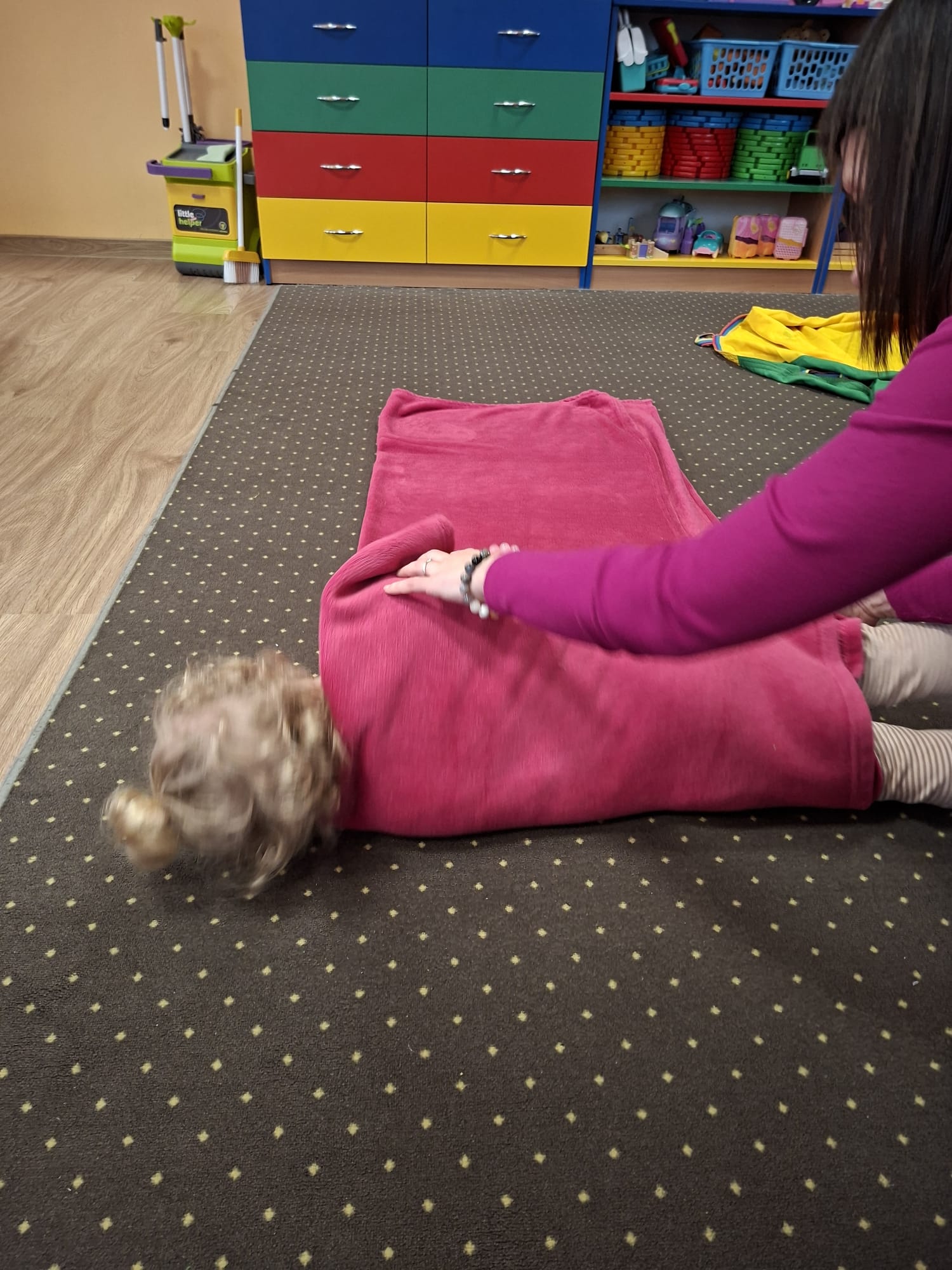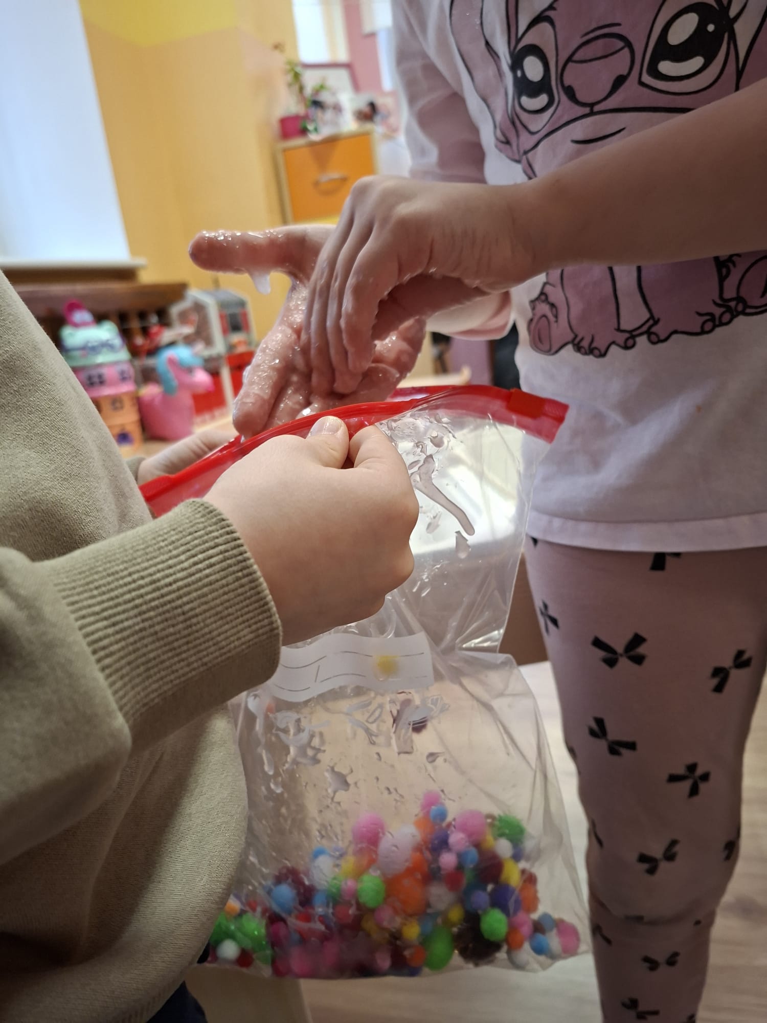 Podczas zajęć sensorycznych stworzyliśmy przestrzeń pełną spokoju i uważności 🌿🧘♀️ Delikatna muzyka otuliła nas niczym miękki koc 🎶💫 Dzieci zanurzały dłonie w różnorodnych fakturach – miękkich, szorstkich, ciepłych i chłodnych 🤲🪶🌾 Bawiły się kolorami, przesypywały, dotykały, odkrywały… 🎨🌈