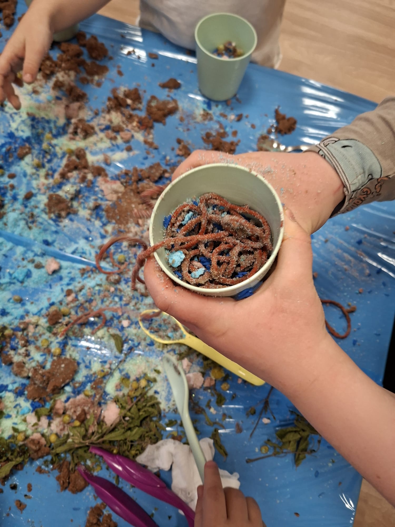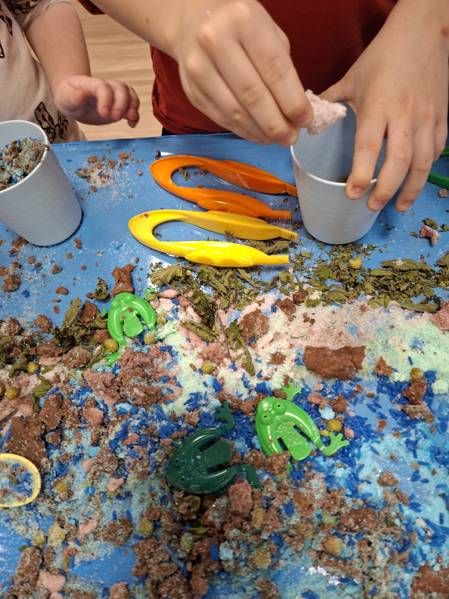 Poprzez kontakt z różnorodnymi fakturami i materiałami dzieci doświadczały bodźców sensorycznych, rozwijając zmysł dotyku oraz koncentrację na chwili obecnej 🤲✨ Każde ćwiczenie było zaproszeniem do bycia „tu i teraz” – w zgodzie ze sobą i swoimi emocjami 💛