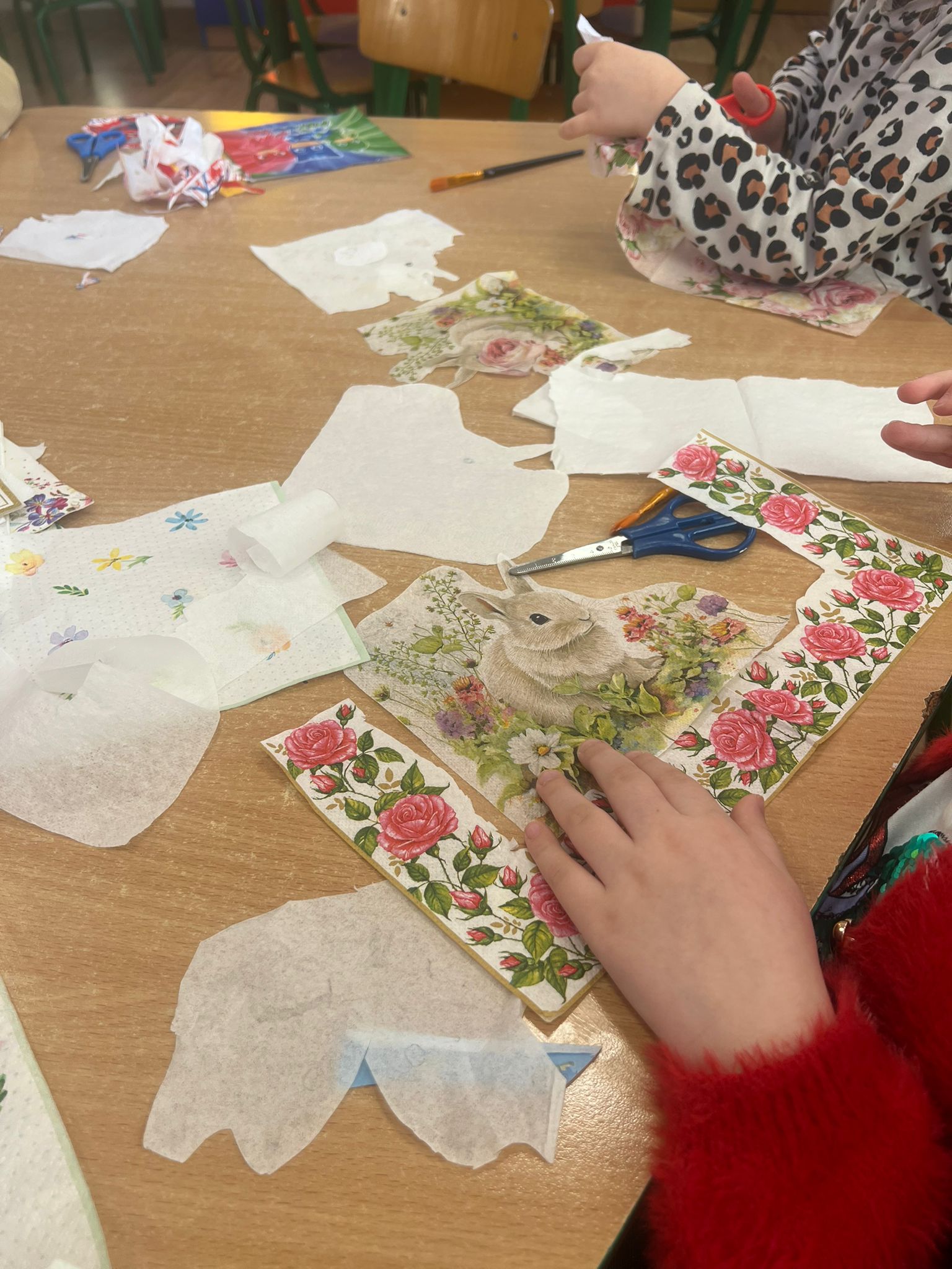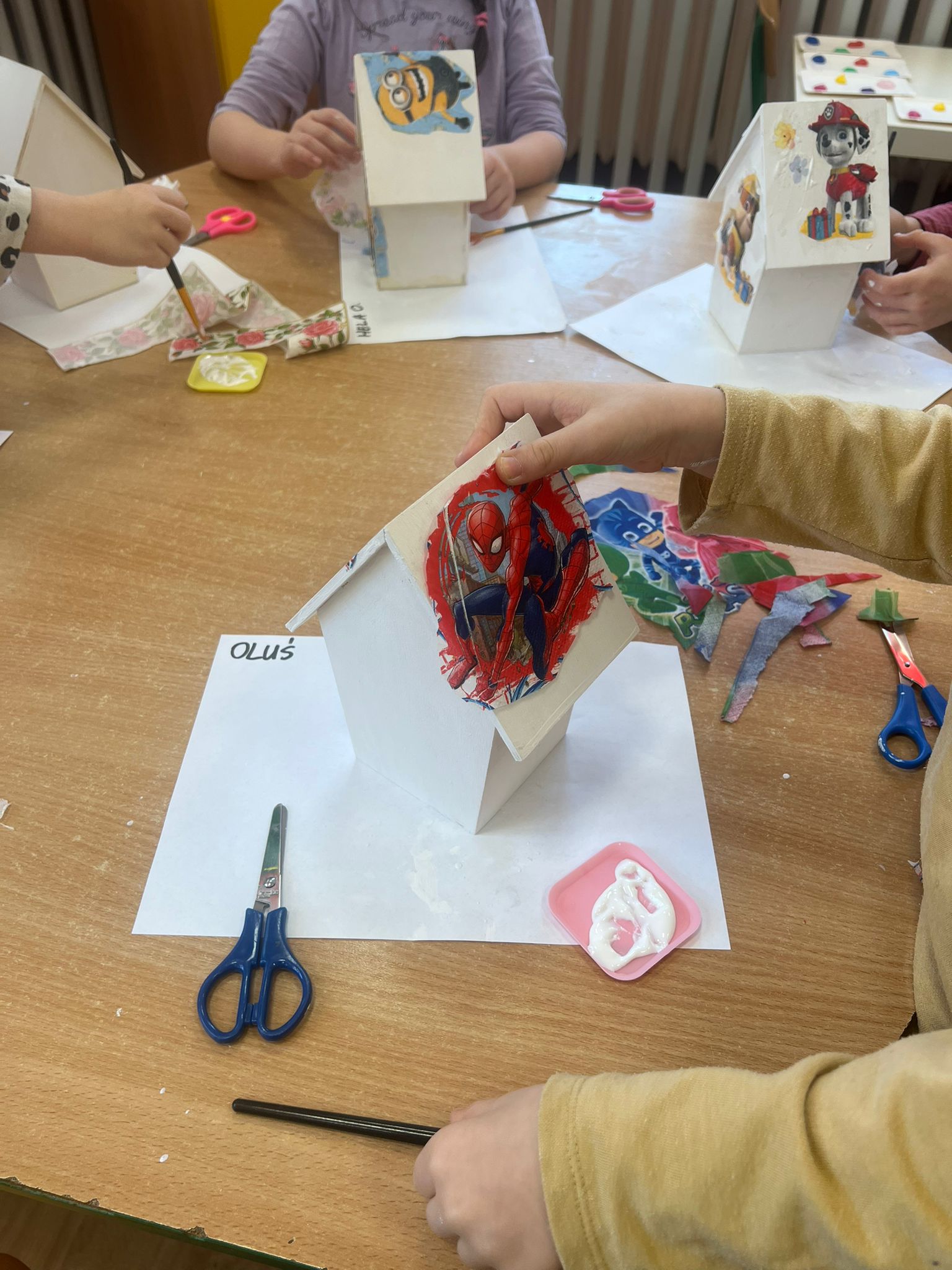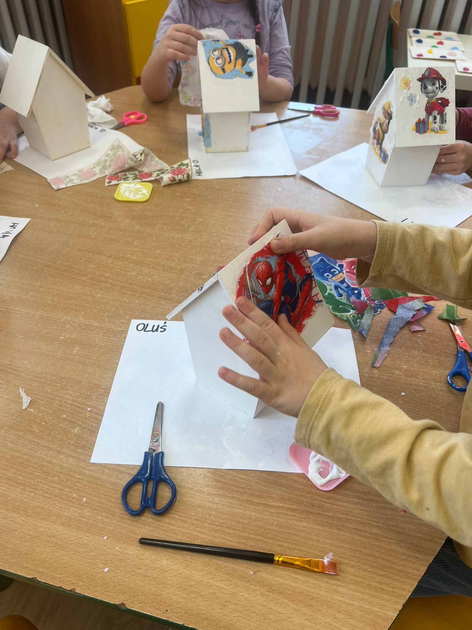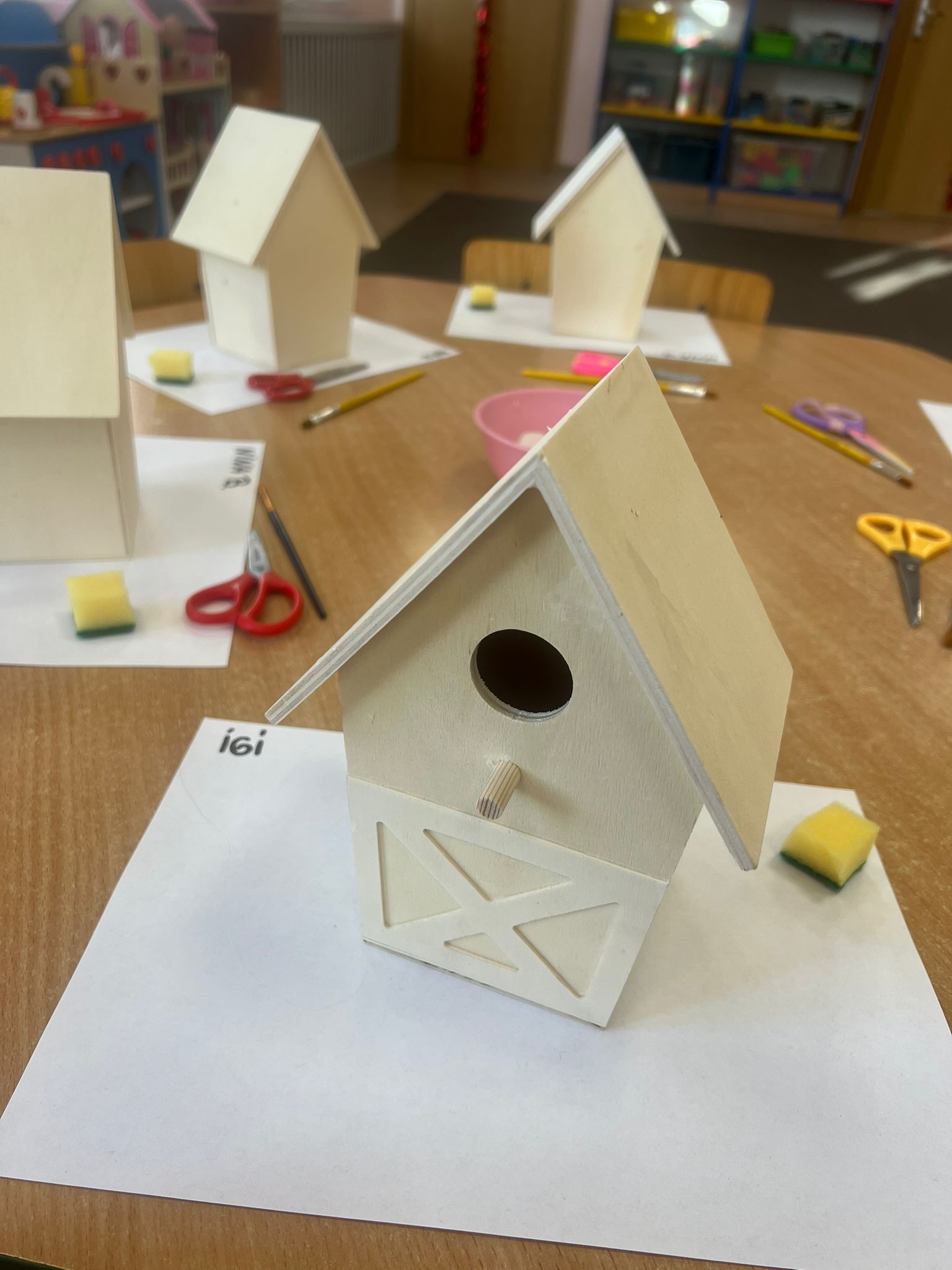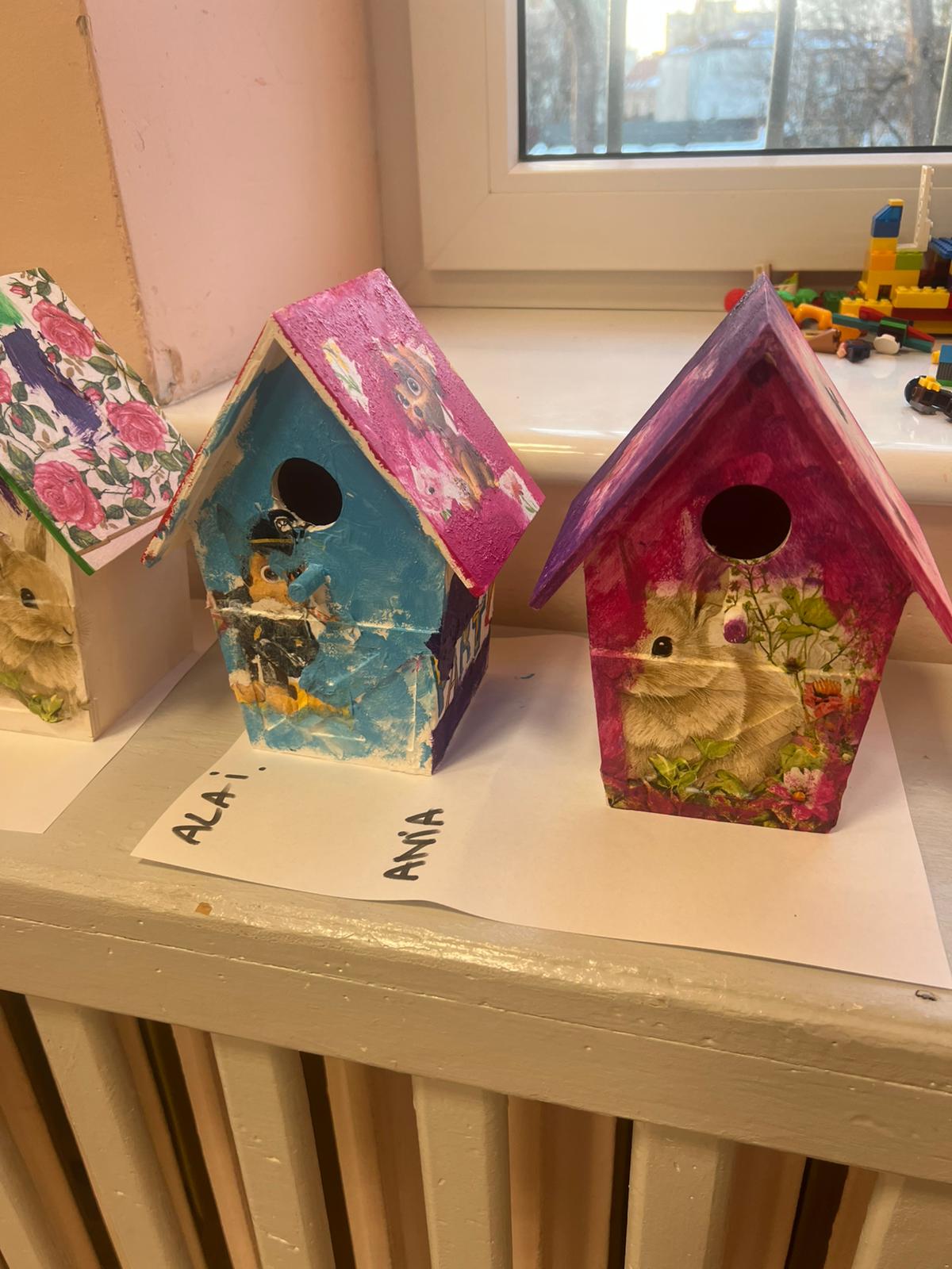 Podczas zajęć rękodzieła powstały piękne, drewniane budki dla ptaków, ozdabiane techniką decoupage 🎨🖌️ Każda z nich to małe dzieło sztuki – pełne kolorowych kwiatów, wiosennych motywów i niepowtarzalnej dziecięcej wyobraźni 🌸🌈