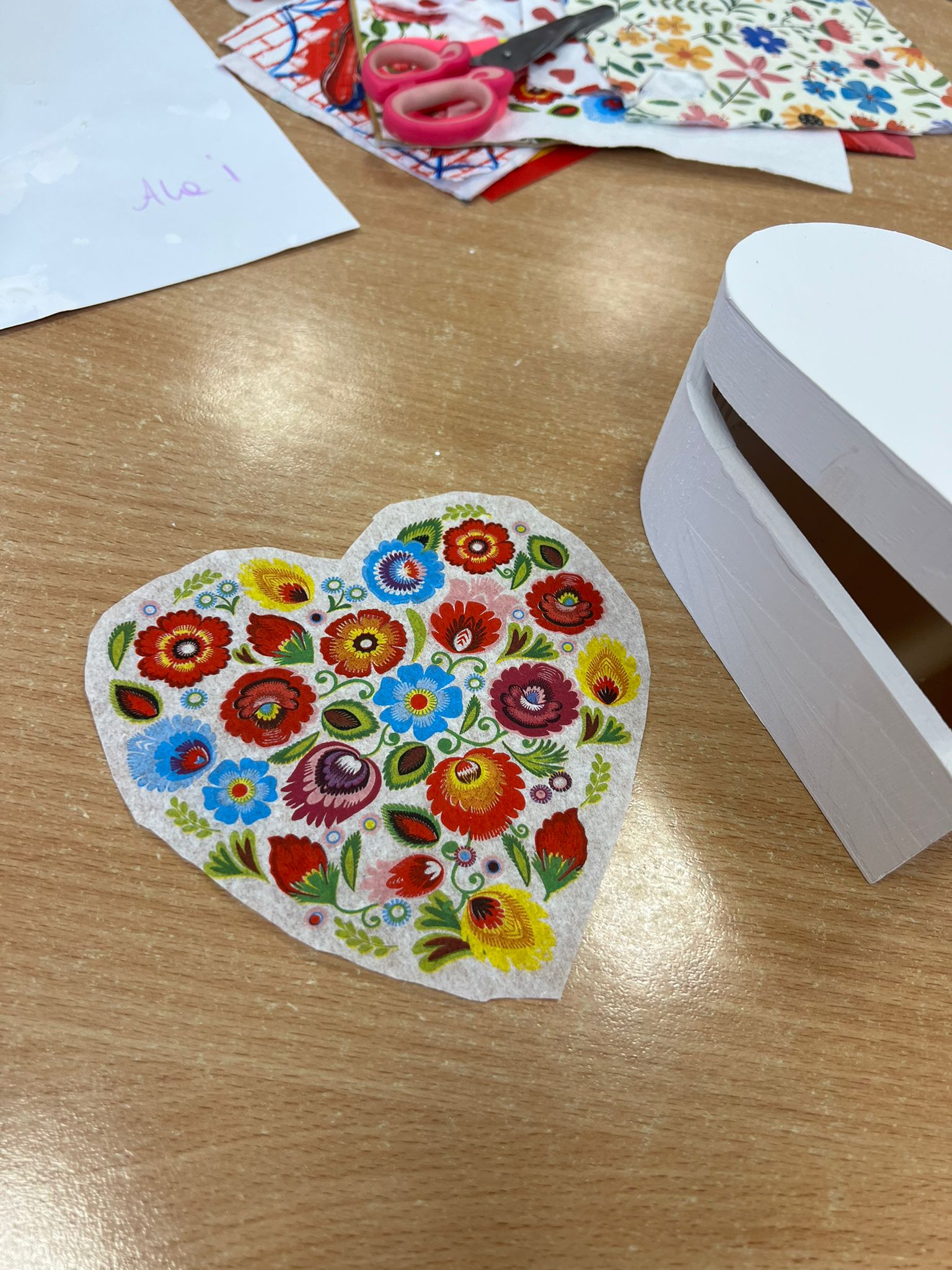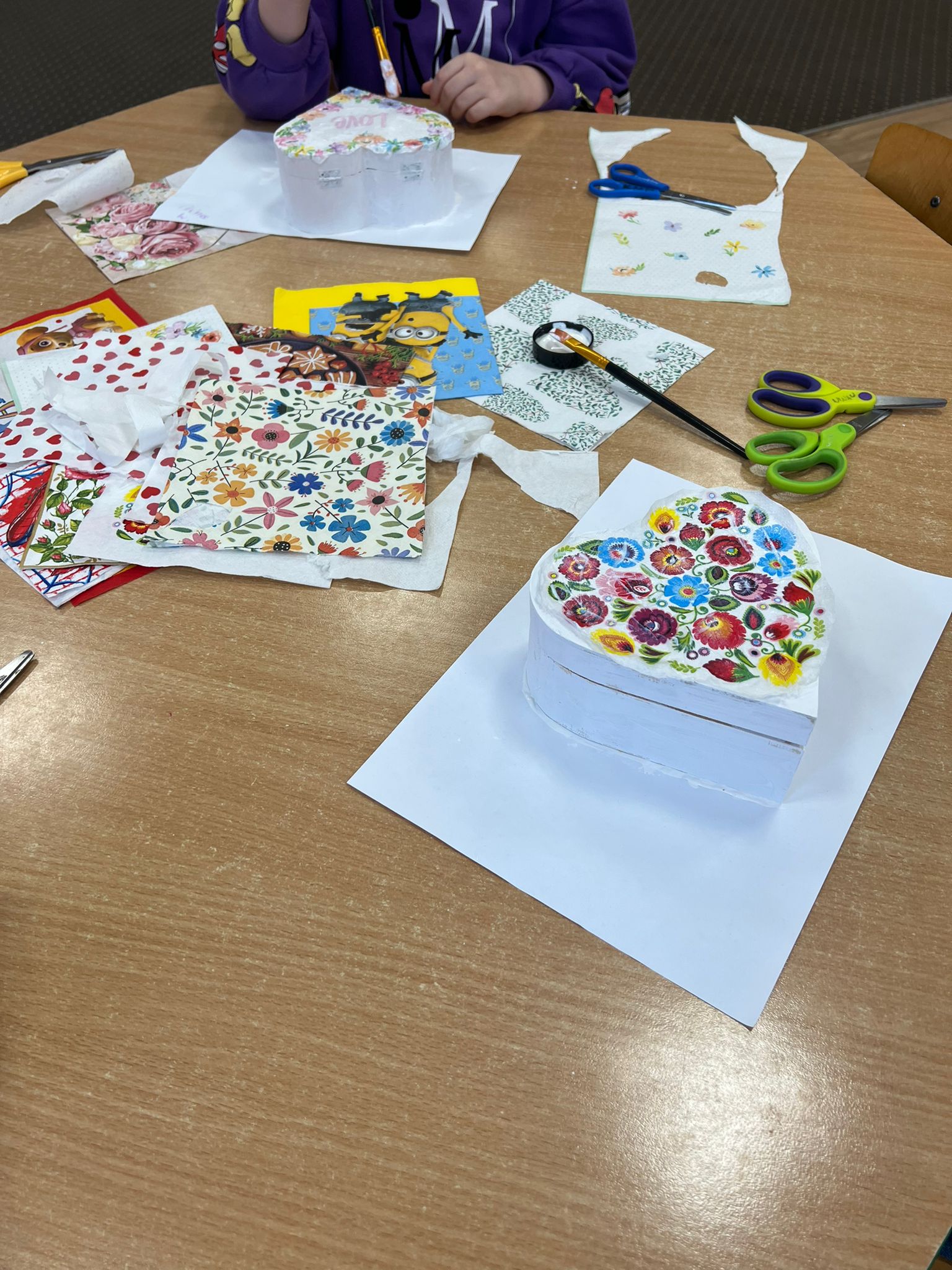 Dzieci stworzyły wyjątkowe, serduszkowe szkatułki metodą decoupage – pełne kolorów, detali i dziecięcej wyobraźni 💖 Każda praca jest niepowtarzalna i pokazuje, jak wiele radości daje tworzenie własnymi rękami 🖌️🌈