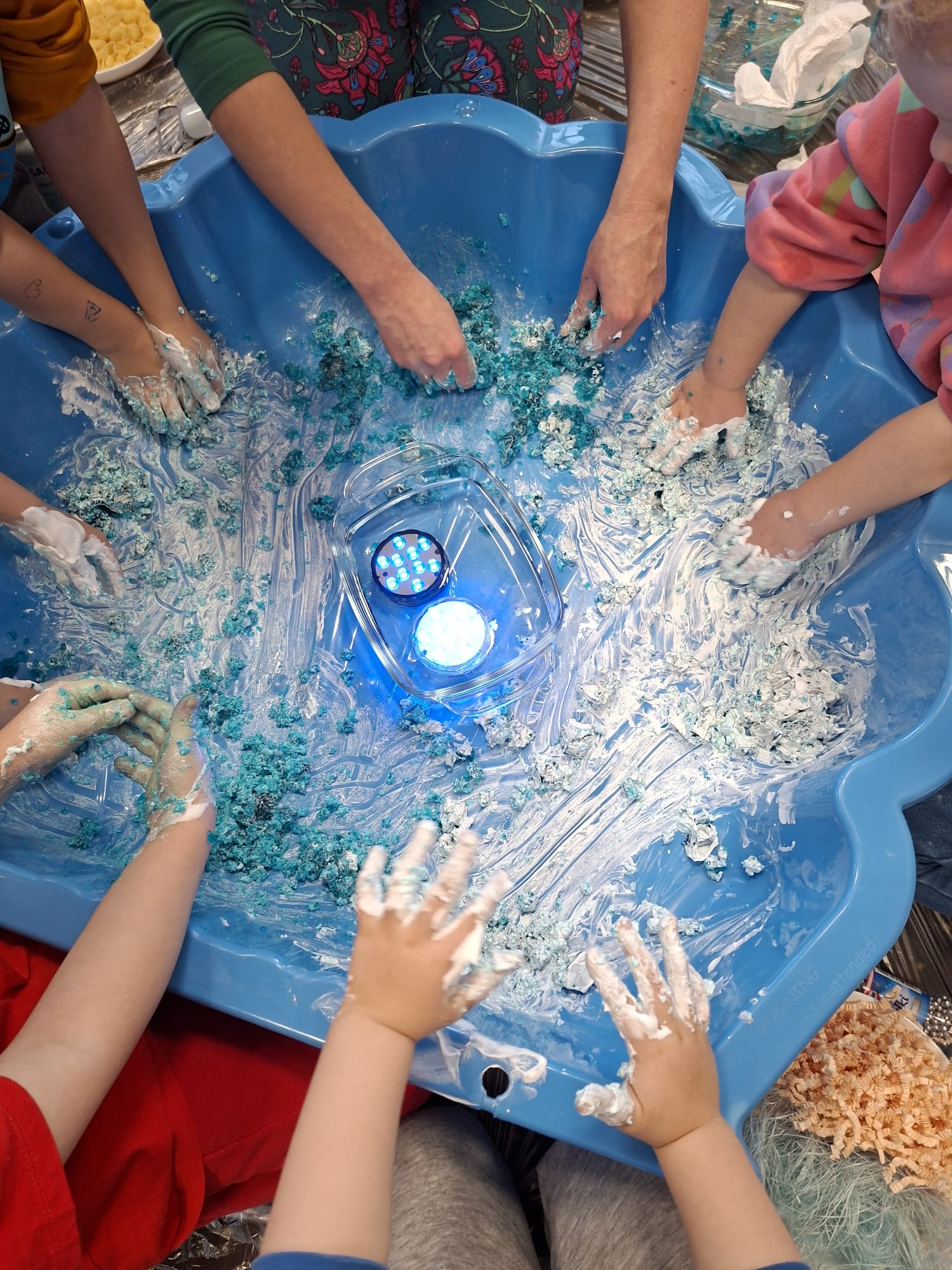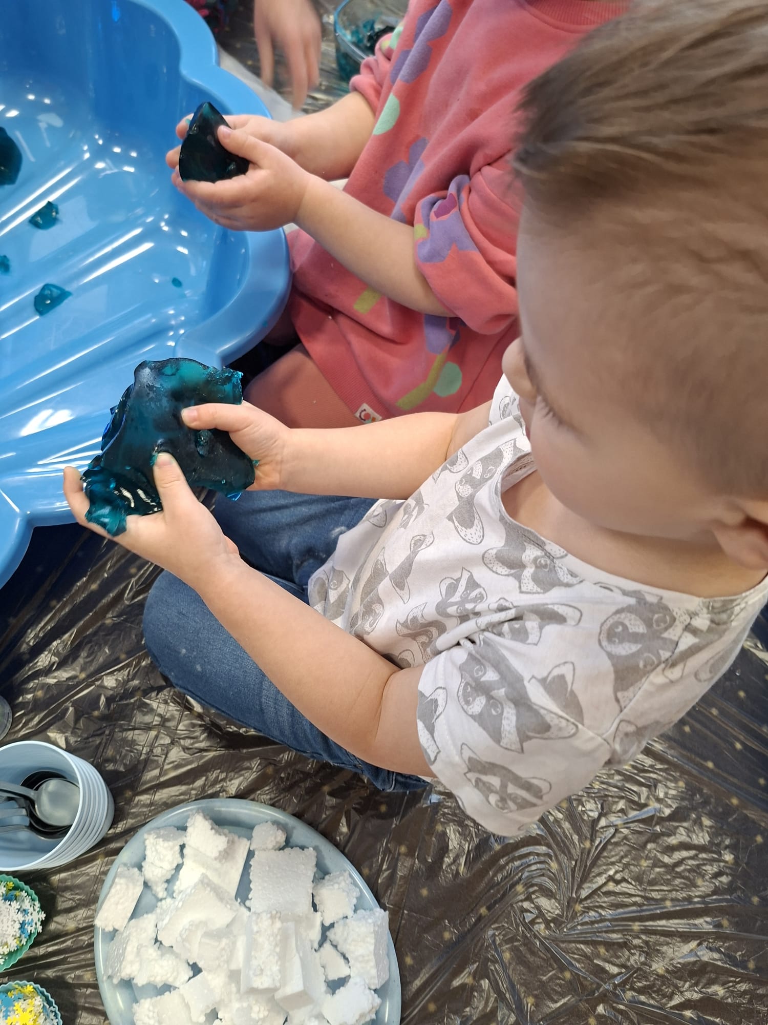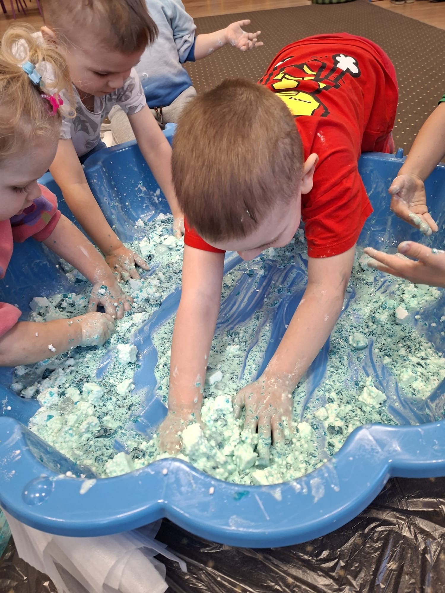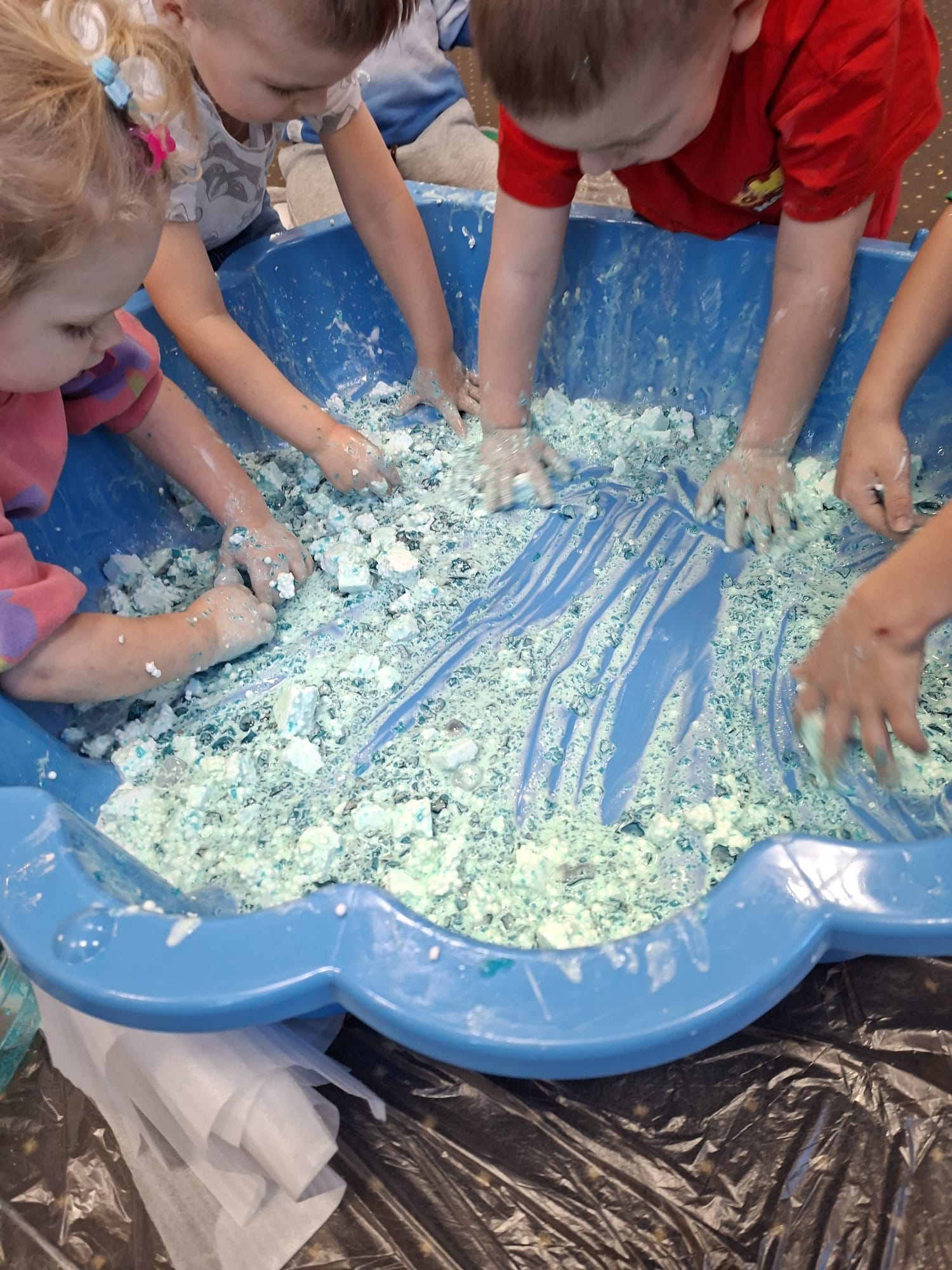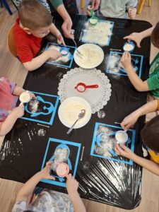 DOTYK SPOKOJU – Sensoplastyka Pierwsze zajęcia już za nami! Spotkanie rozpoczęliśmy w spokojnej, niemal czarodziejskiej atmosferze podczas zabaw przy stoliku. Następnie przenieśliśmy się na dywan, gdzie rączki mogły swobodnie eksplorować i doświadczać bodźców sensorycznych. Wspólnie tworzyliśmy, rozwijając kreatywność i wyobraźnię. Dziękujemy za wspólną sensoplastyczną przygodę przy muzyce