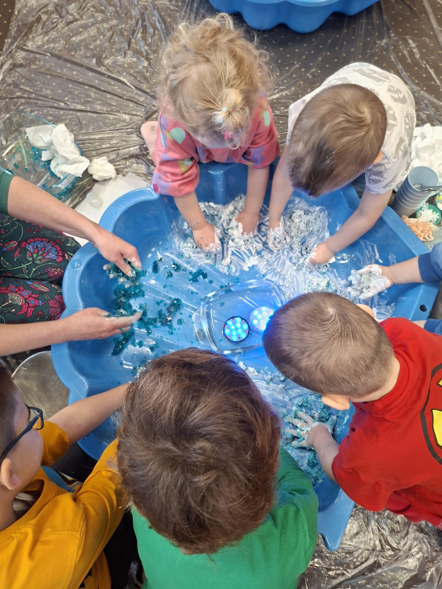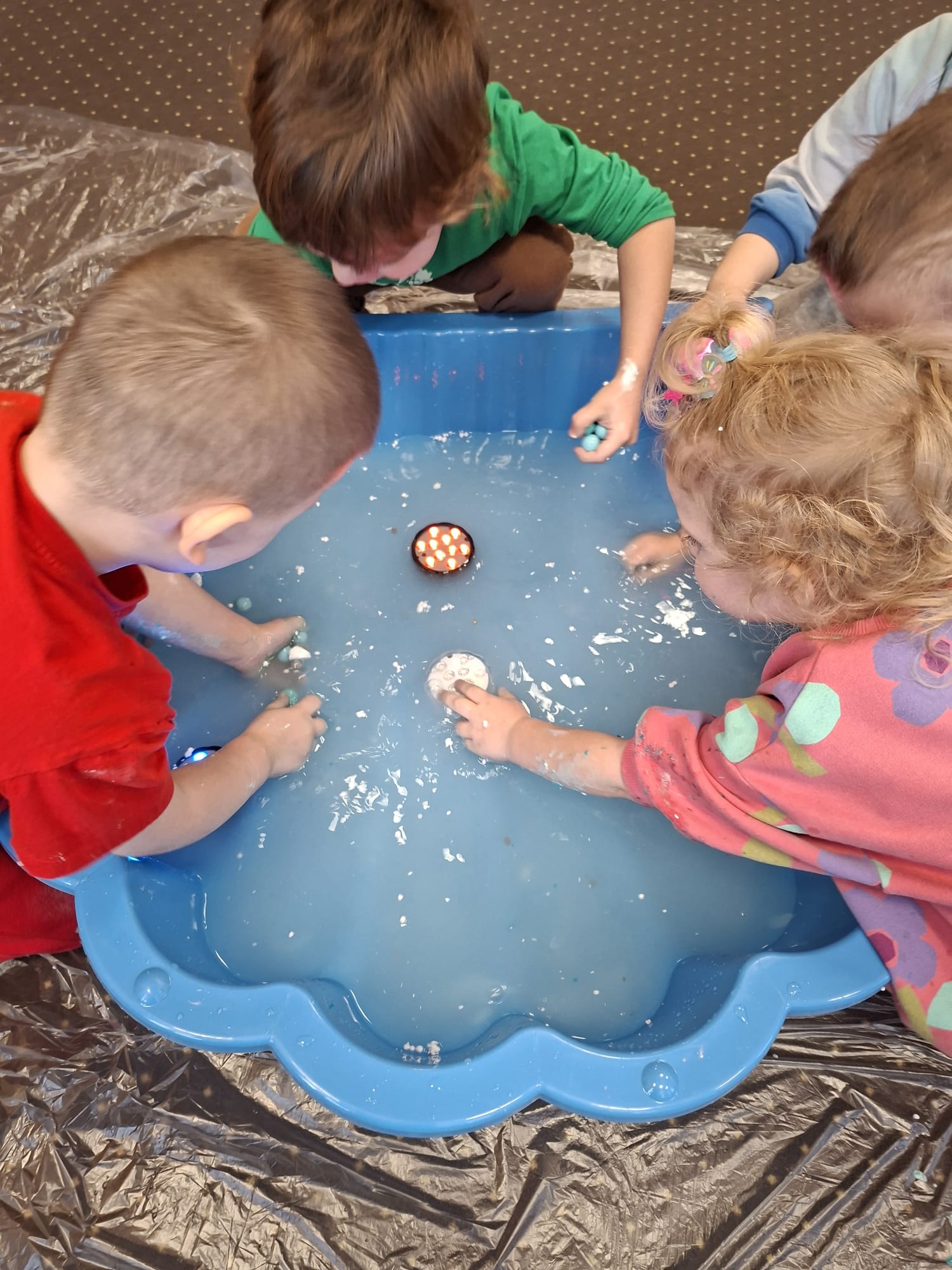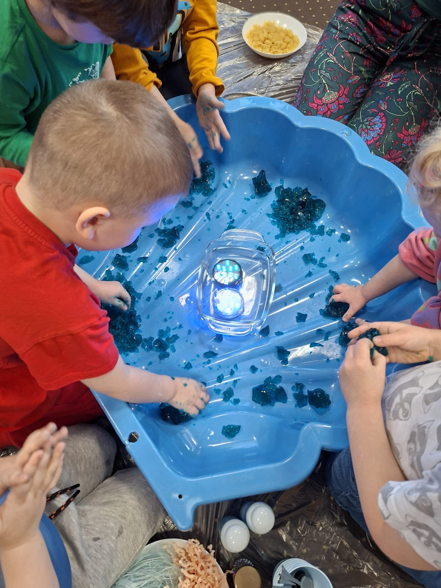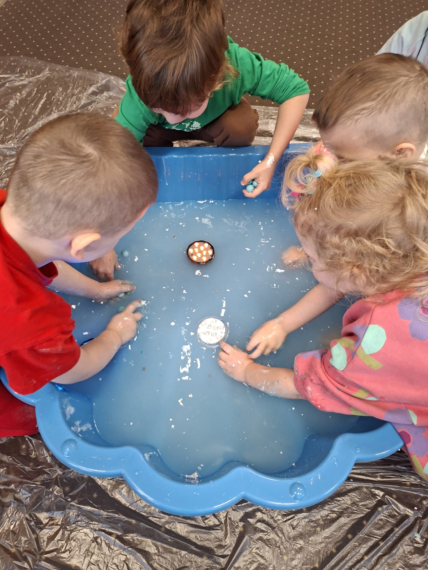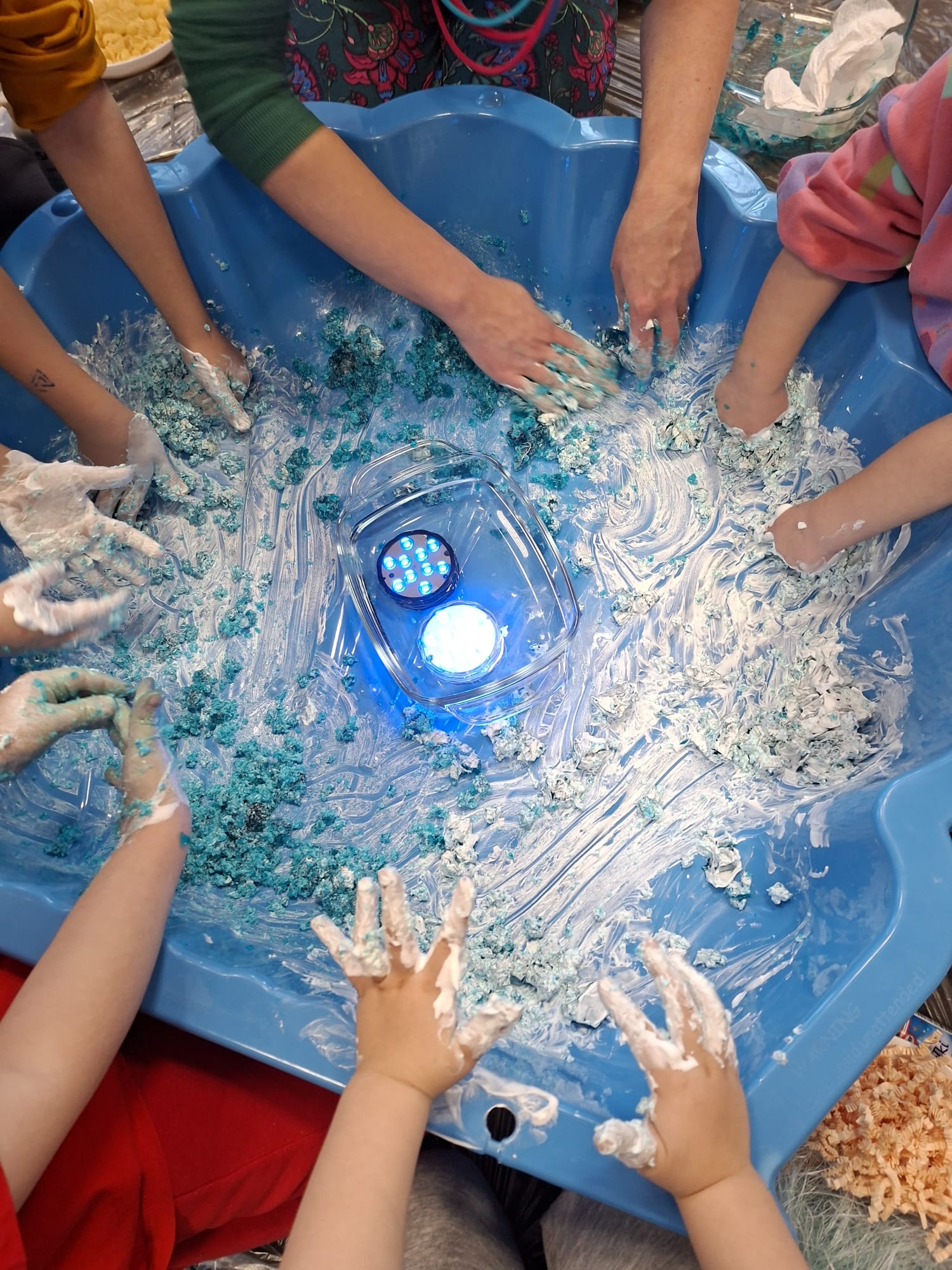 DOTYK SPOKOJU – Sensoplastyka Pierwsze zajęcia już za nami! Spotkanie rozpoczęliśmy w spokojnej, niemal czarodziejskiej atmosferze podczas zabaw przy stoliku. Następnie przenieśliśmy się na dywan, gdzie rączki mogły swobodnie eksplorować i doświadczać bodźców sensorycznych. Wspólnie tworzyliśmy, rozwijając kreatywność i wyobraźnię. Dziękujemy za wspólną sensoplastyczną przygodę przy muzyce
