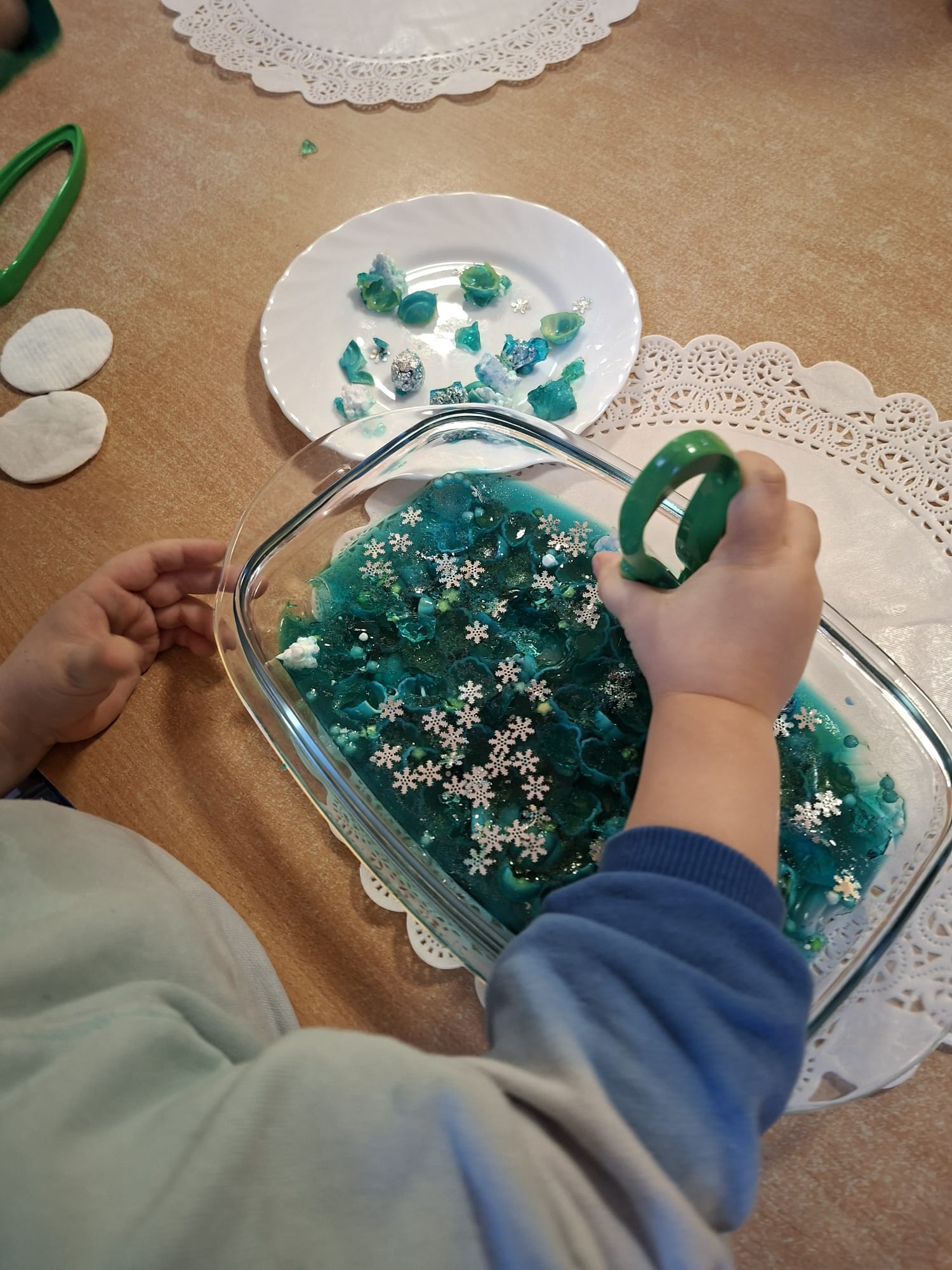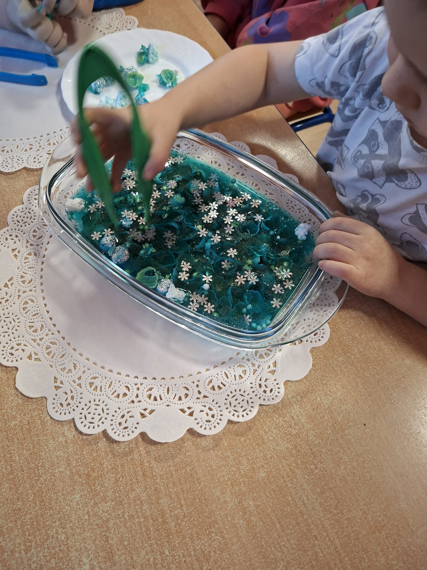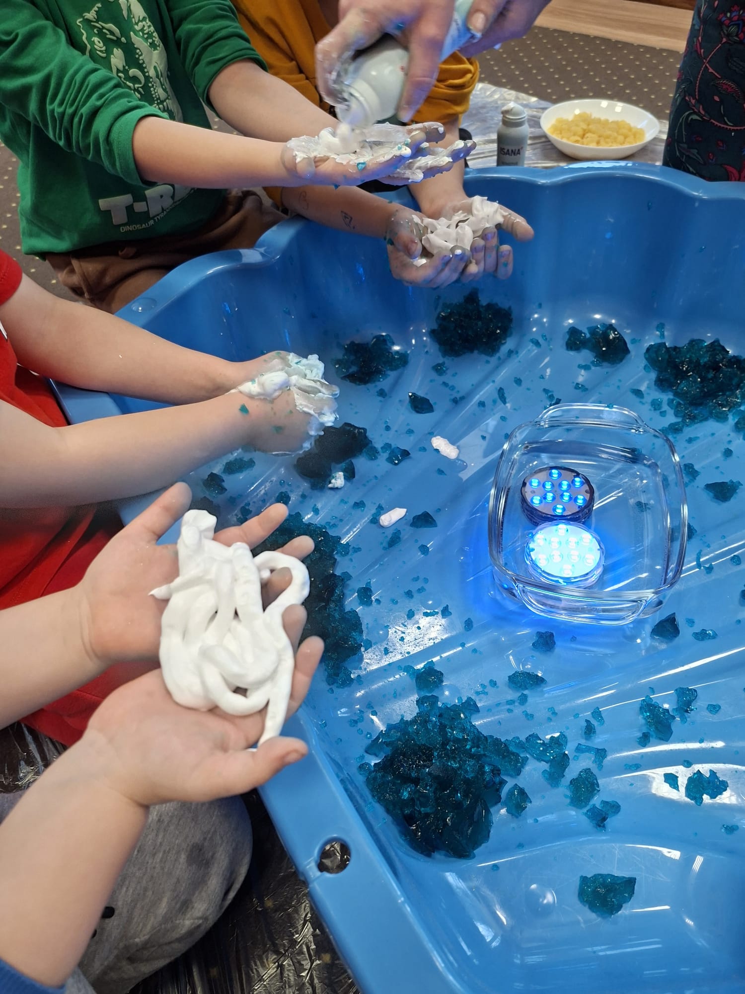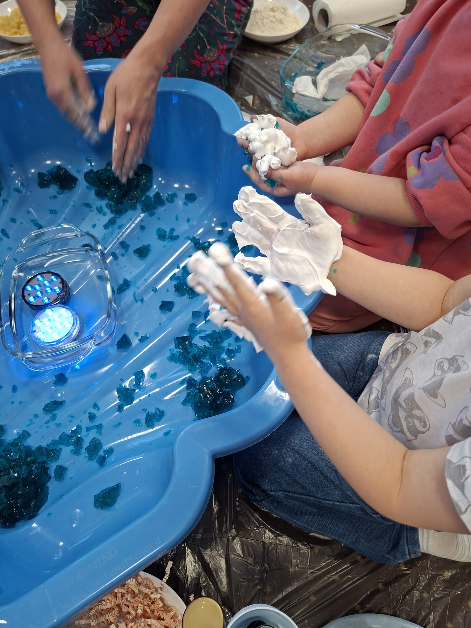 DOTYK SPOKOJU – Sensoplastyka Pierwsze zajęcia już za nami! Spotkanie rozpoczęliśmy w spokojnej, niemal czarodziejskiej atmosferze podczas zabaw przy stoliku. Następnie przenieśliśmy się na dywan, gdzie rączki mogły swobodnie eksplorować i doświadczać bodźców sensorycznych. Wspólnie tworzyliśmy, rozwijając kreatywność i wyobraźnię. Dziękujemy za wspólną sensoplastyczną przygodę przy muzyce