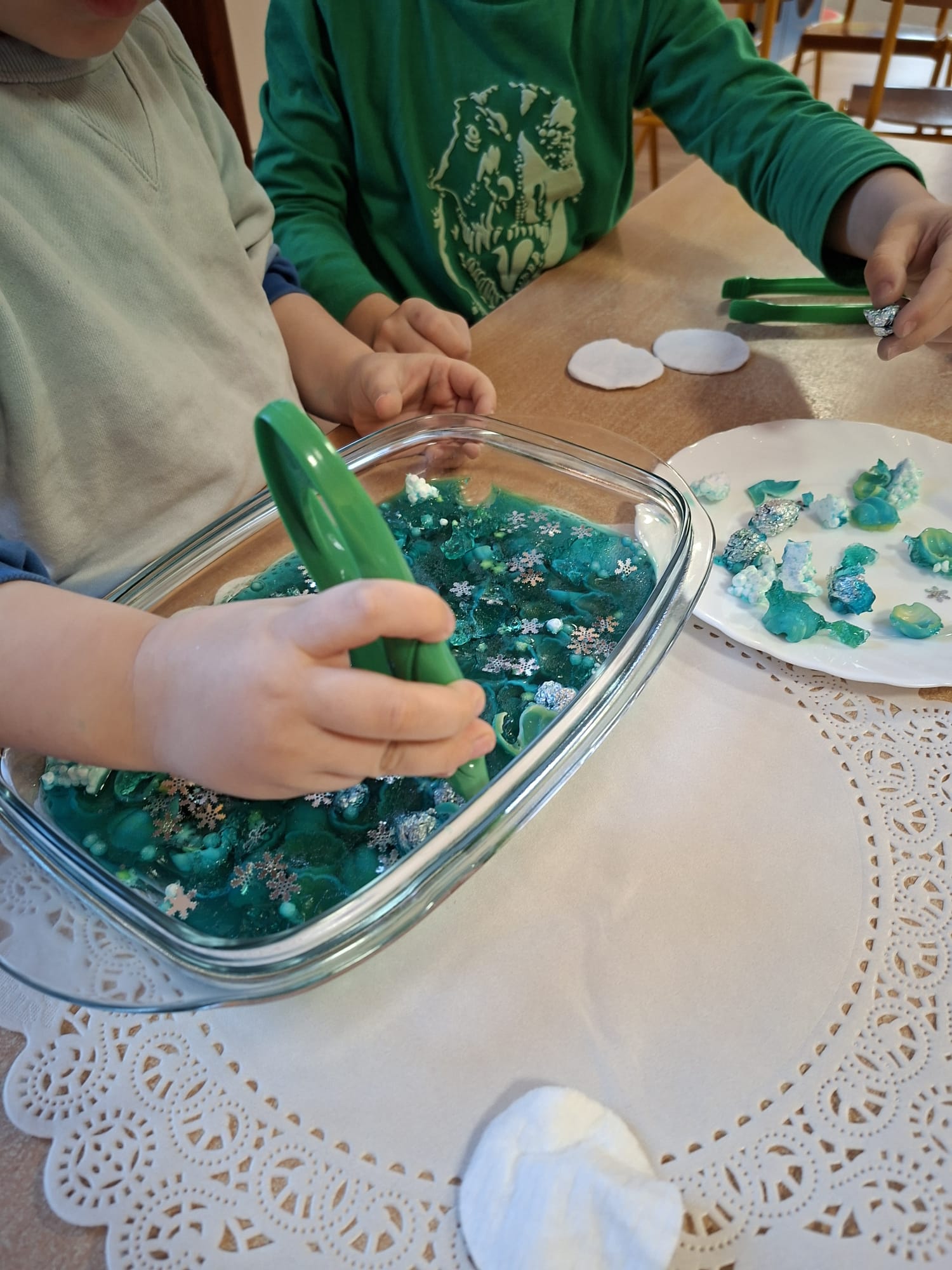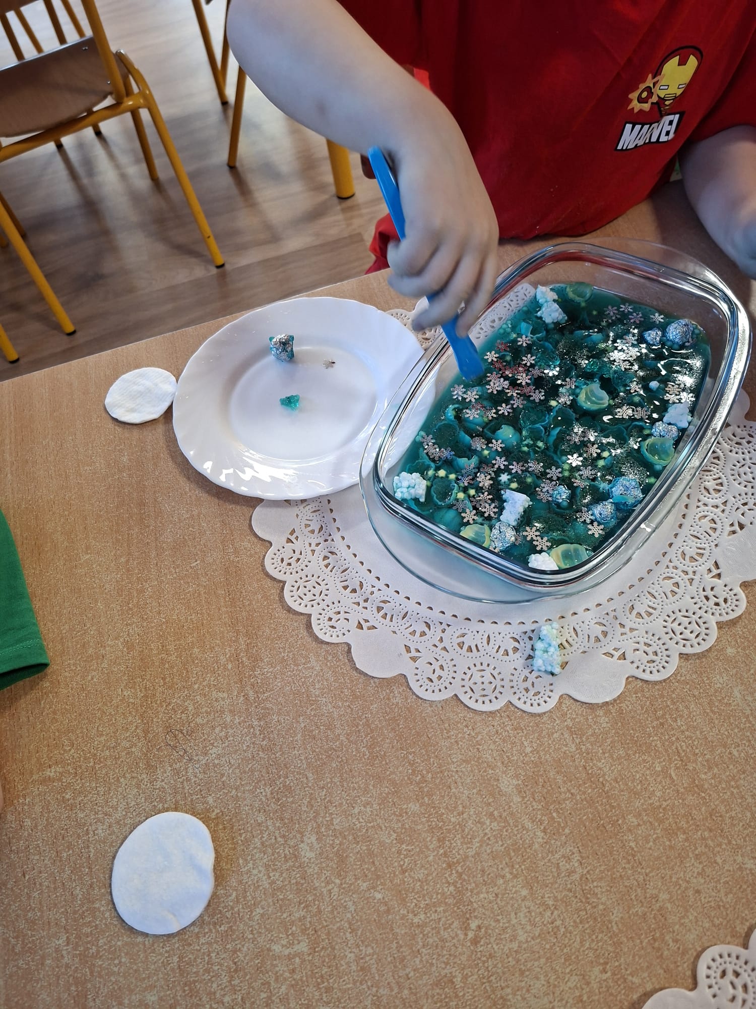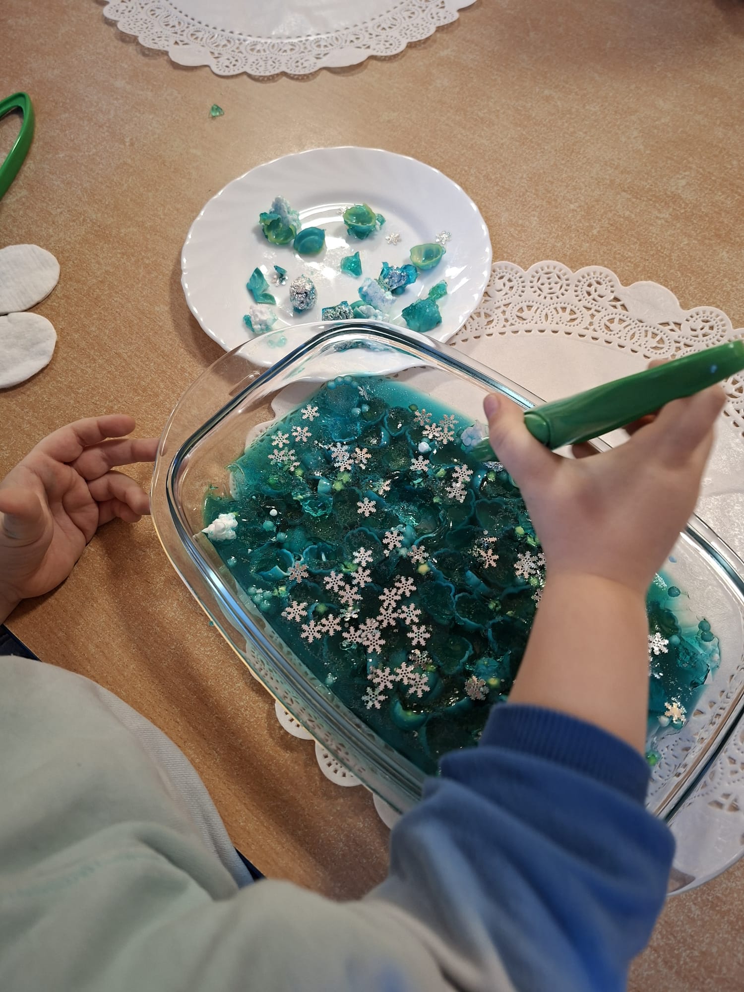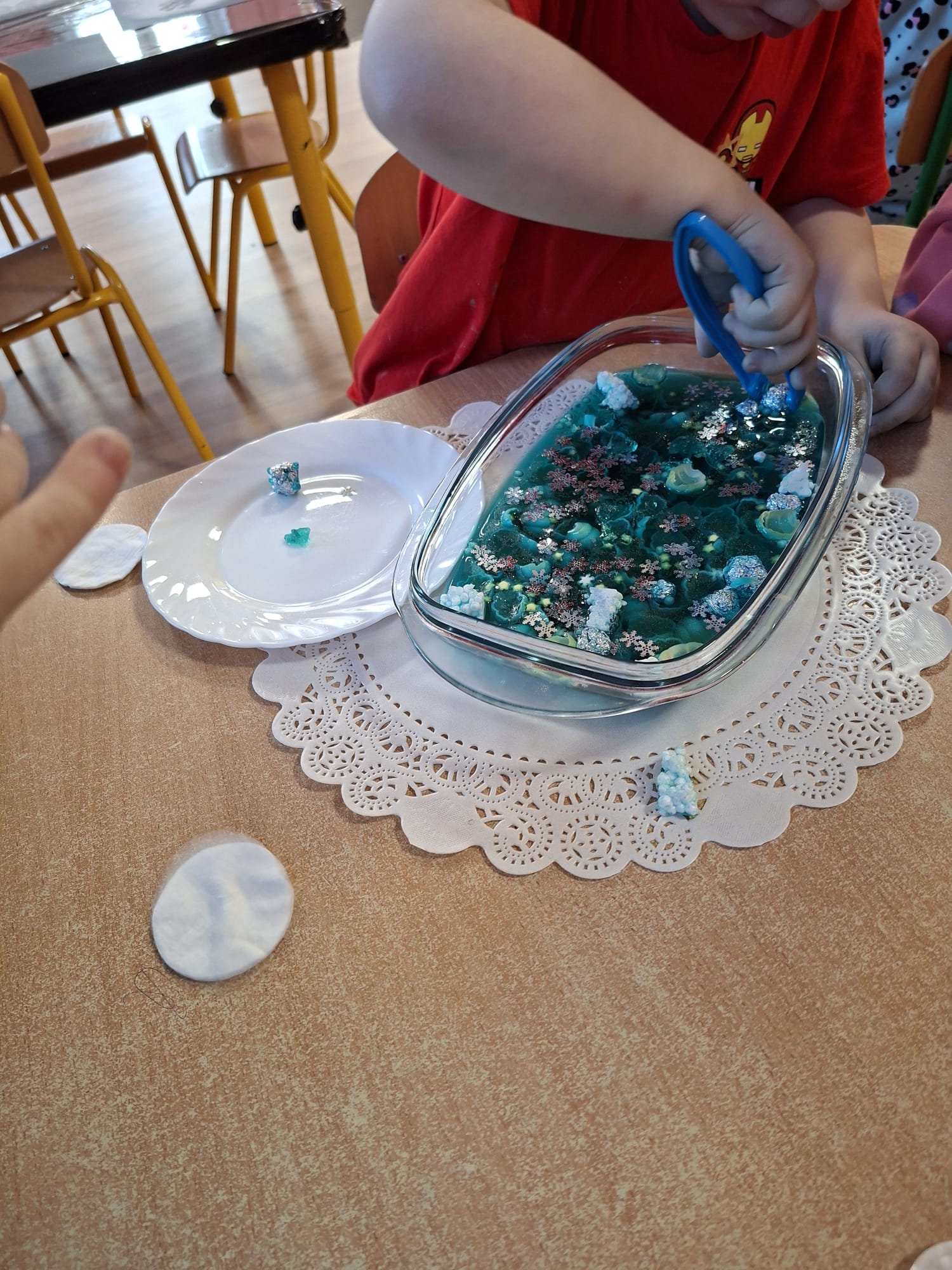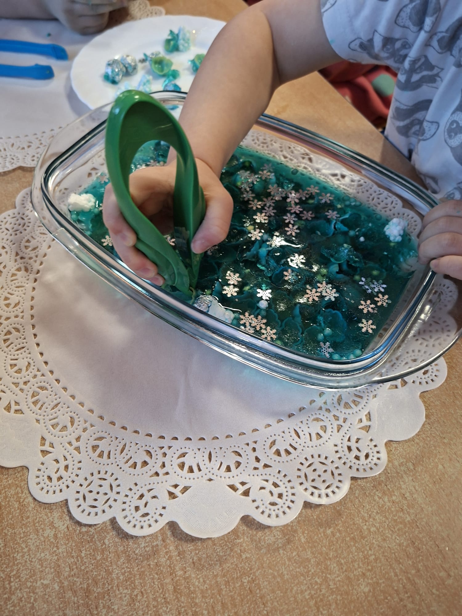 DOTYK SPOKOJU – Sensoplastyka Pierwsze zajęcia już za nami! Spotkanie rozpoczęliśmy w spokojnej, niemal czarodziejskiej atmosferze podczas zabaw przy stoliku. Następnie przenieśliśmy się na dywan, gdzie rączki mogły swobodnie eksplorować i doświadczać bodźców sensorycznych. Wspólnie tworzyliśmy, rozwijając kreatywność i wyobraźnię. Dziękujemy za wspólną sensoplastyczną przygodę przy muzyce